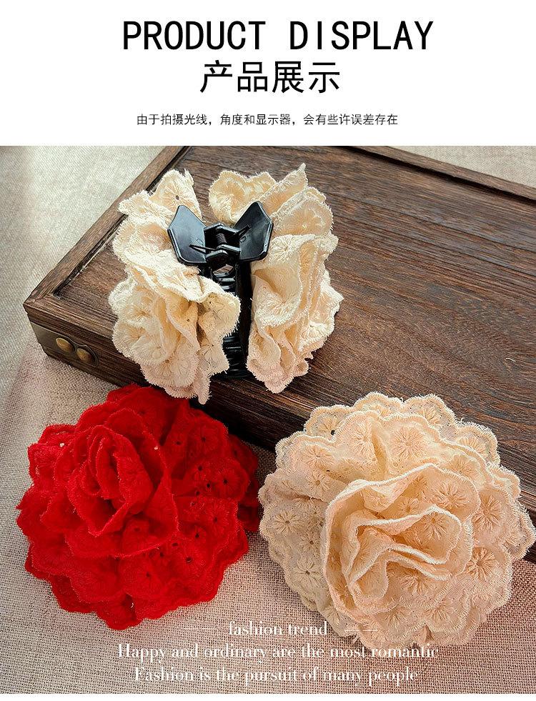 Delicado pasador de malla con flor de verano china para mujer con sensación de alta gama en la parte posterior de la cabeza, super hada rosa flor pinza de tiburón tocado