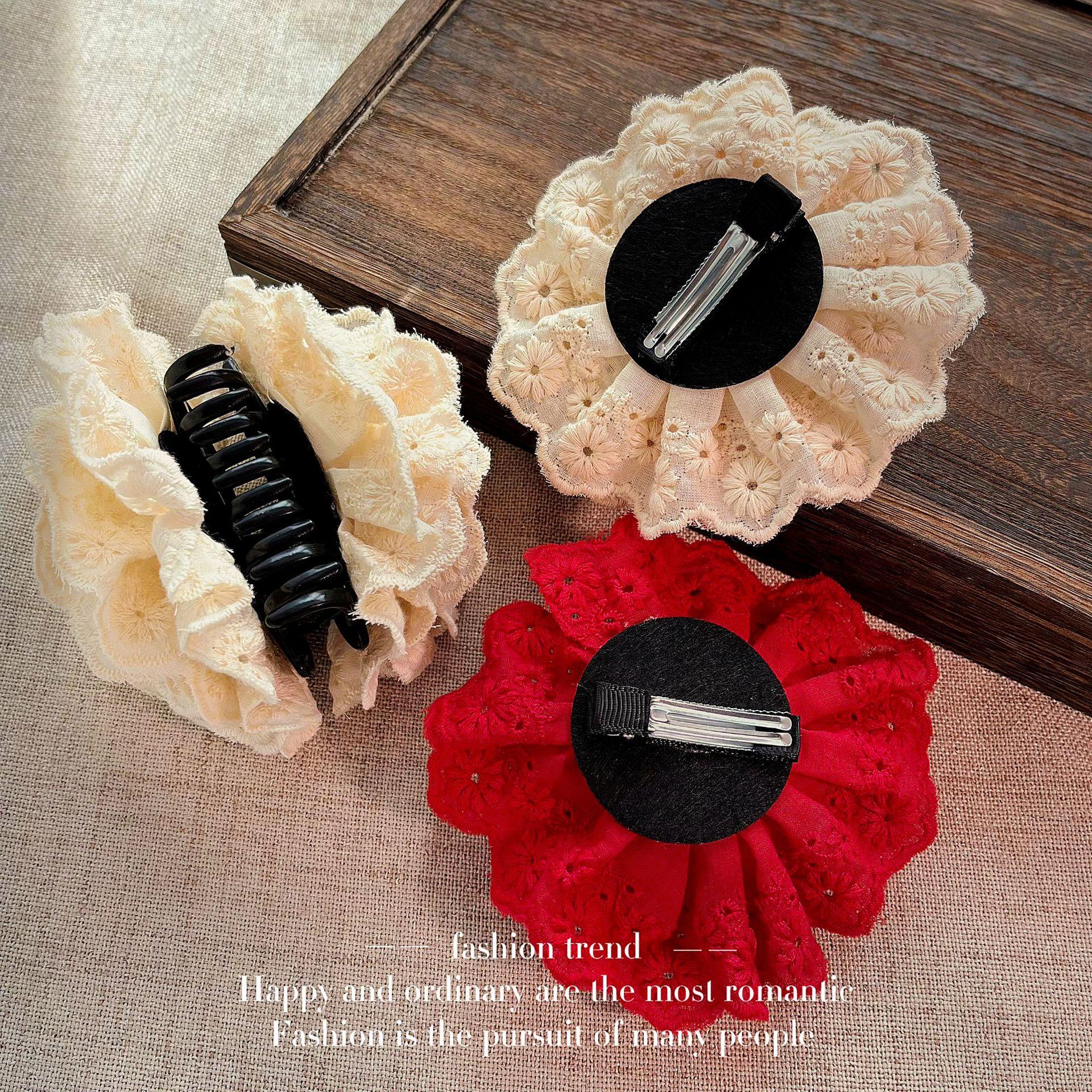 Nuevo horquilla de flor de malla super hada de primavera y verano para mujer, dulce niña, cabello suelto, flequillo, clip de pico de pato versátil, accesorios para el cabello de celebridad de internet