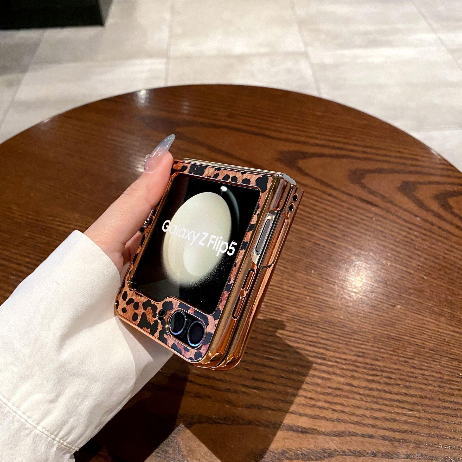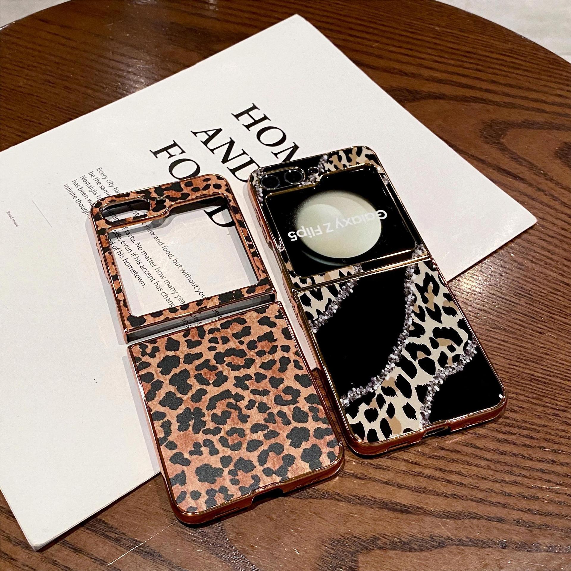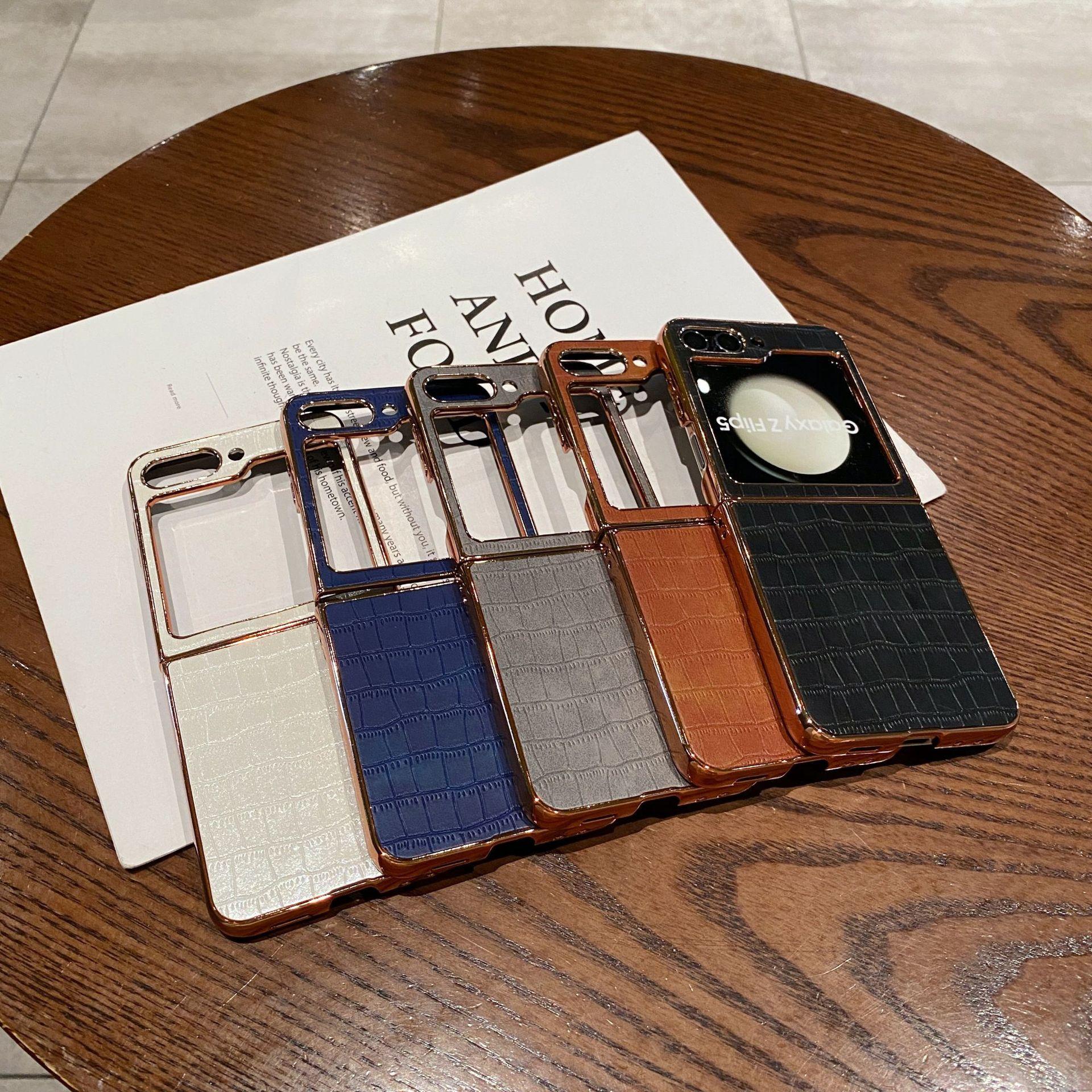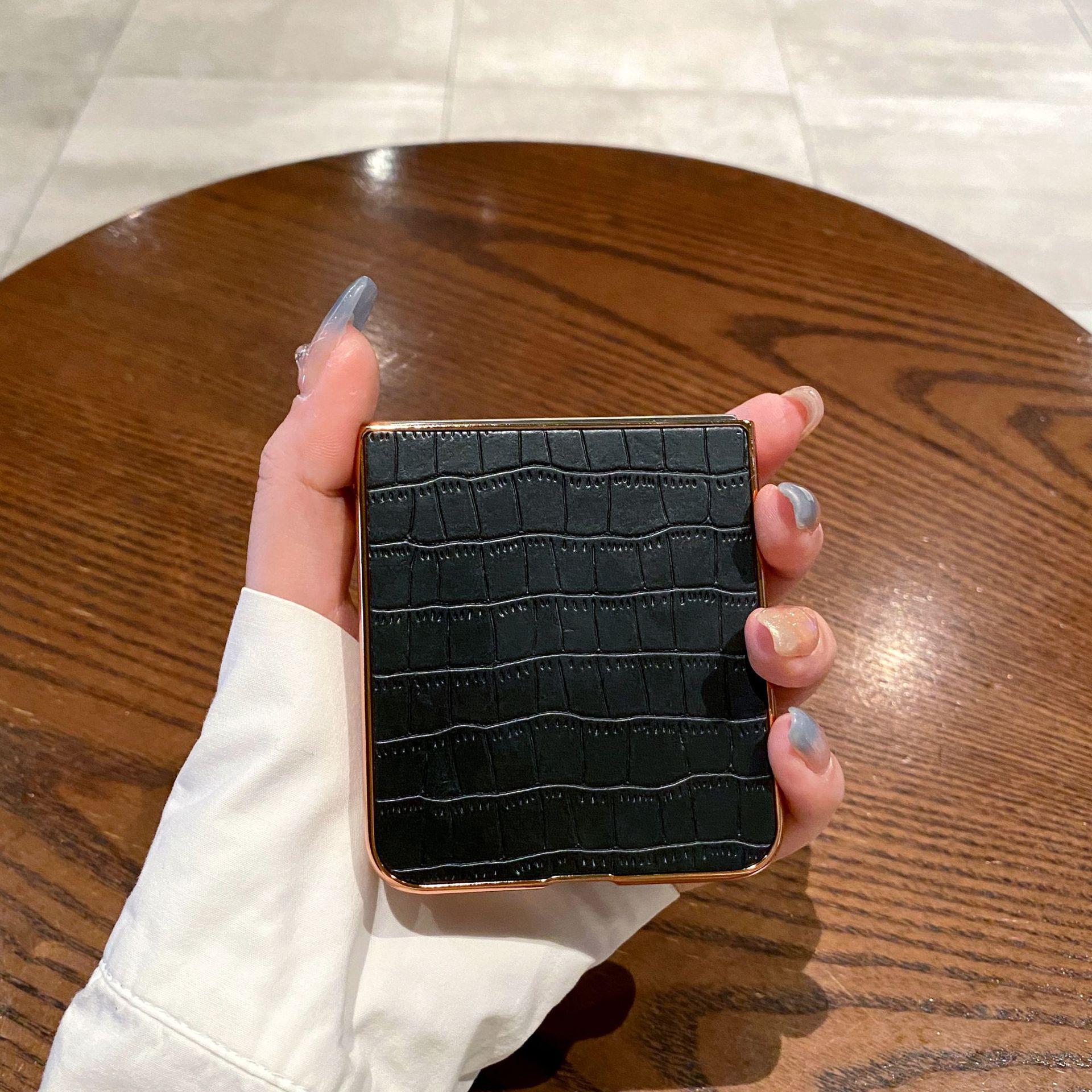 Funda Plegable para Teléfono Samsung Zflip5 Zflip4 Cocodrilo Zflip3 Estampado Leopardo Retro Funda Protectora Todo Incluido
