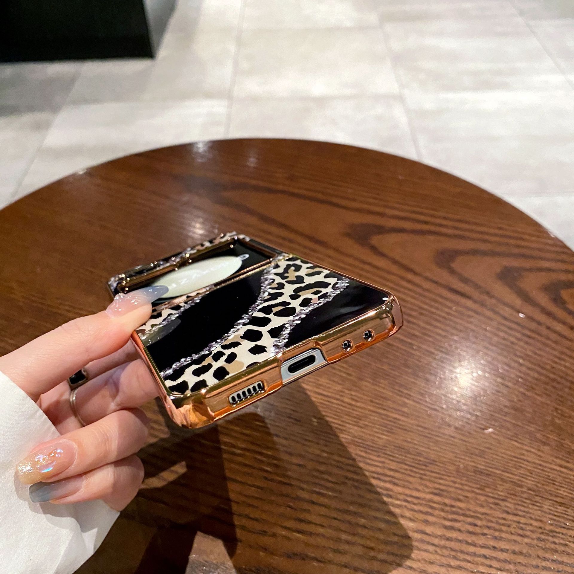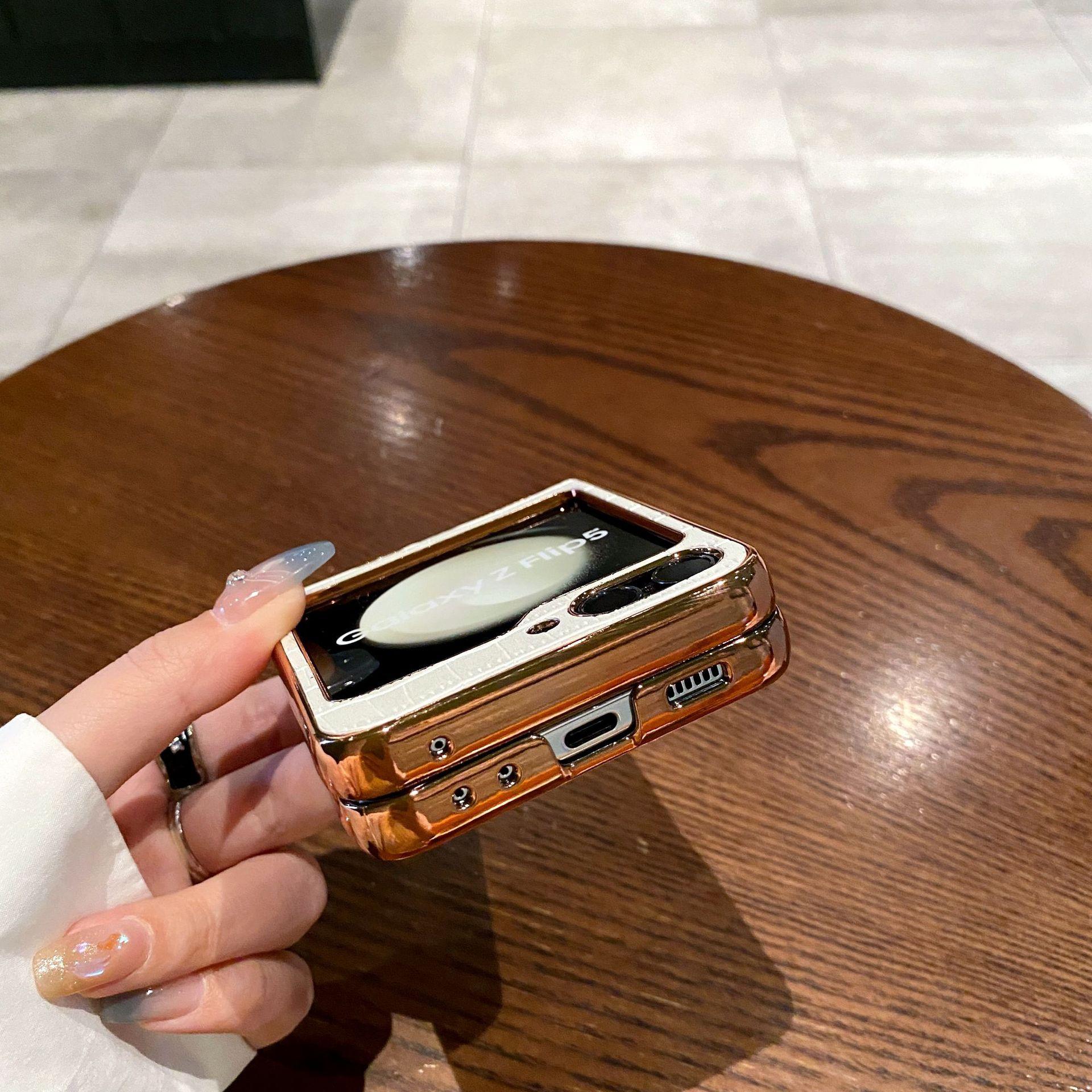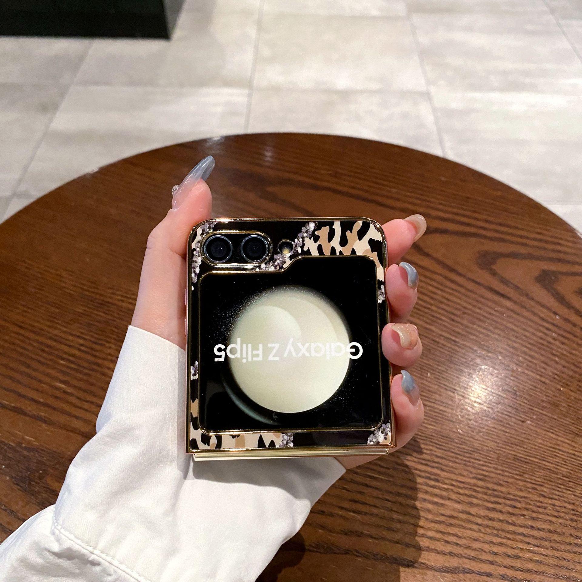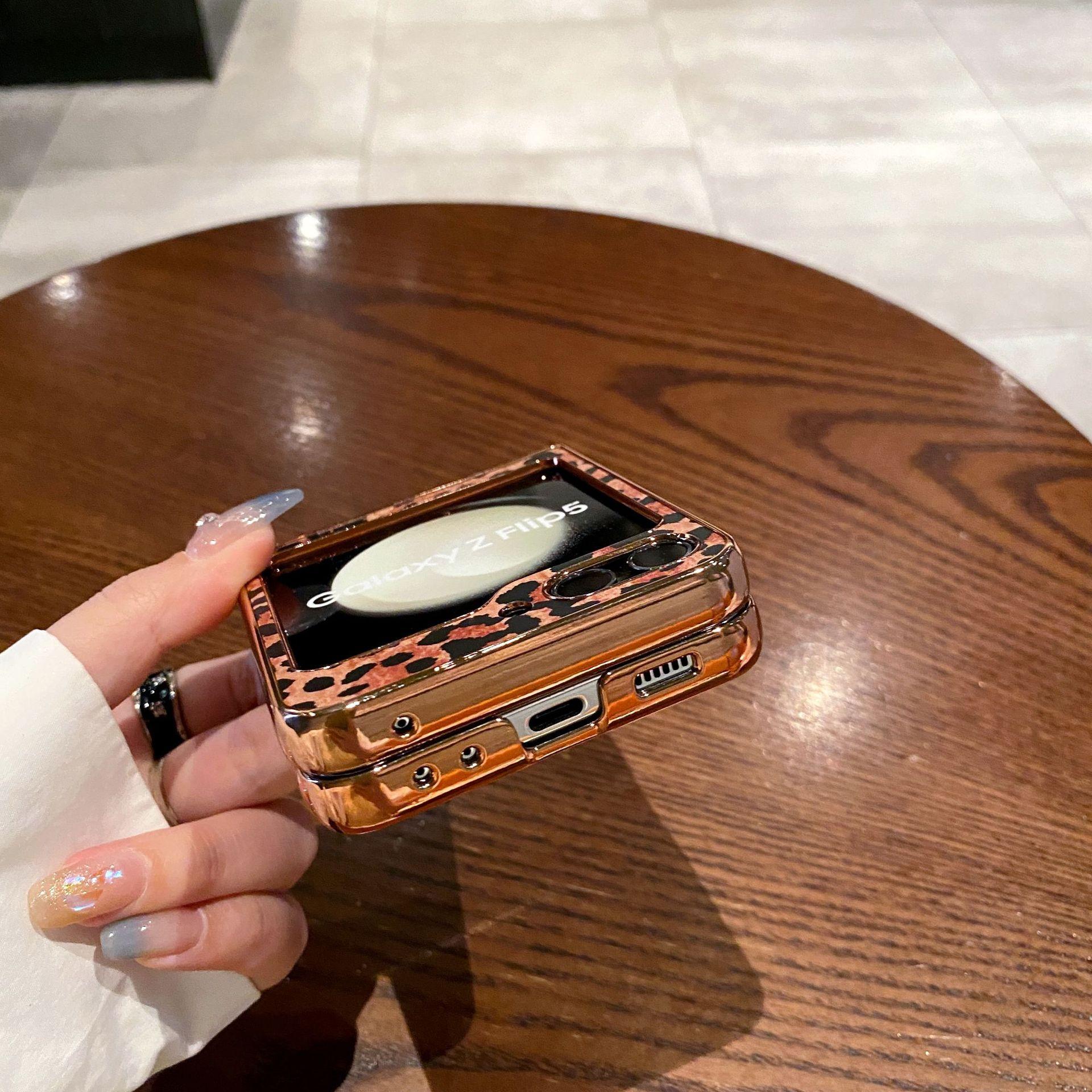 Funda Plegable para Teléfono Samsung Zflip5 Zflip4 Cocodrilo Zflip3 Estampado Leopardo Retro Funda Protectora Todo Incluido