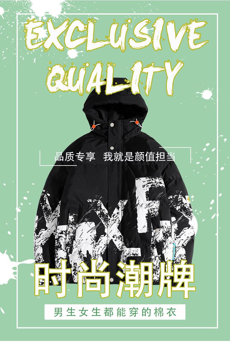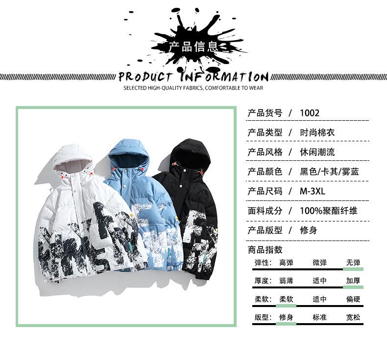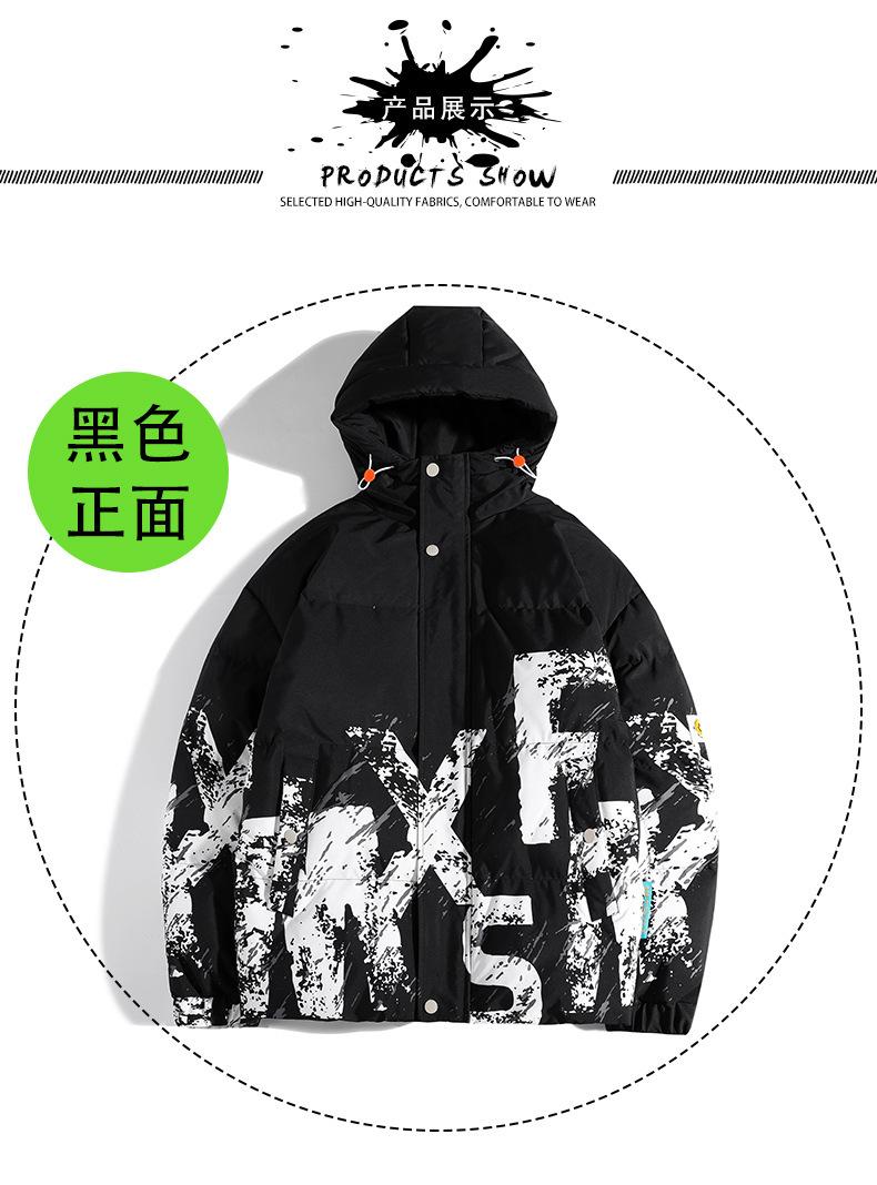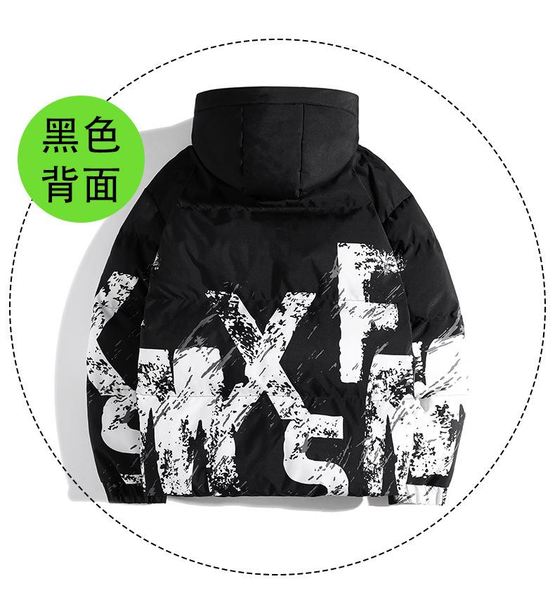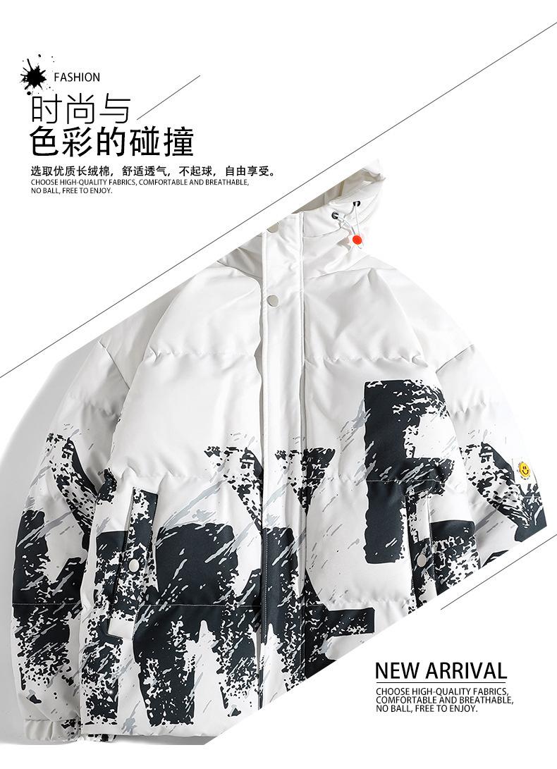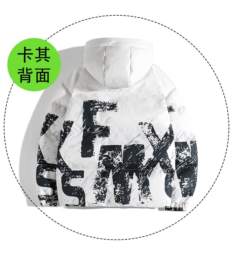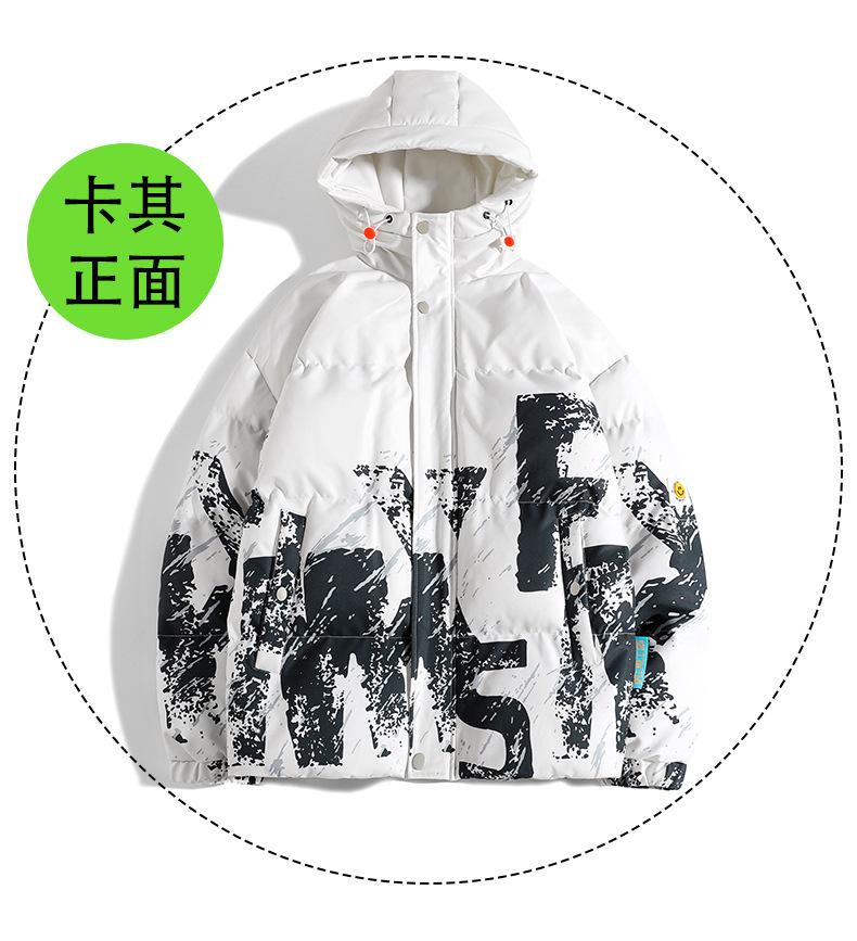 2023 Invierno Nuevo abrigo holgado acolchado de algodón con letras de camuflaje, abrigo acolchado de algodón corto para hombre, grueso con capucha, cálido, abrigo de invierno