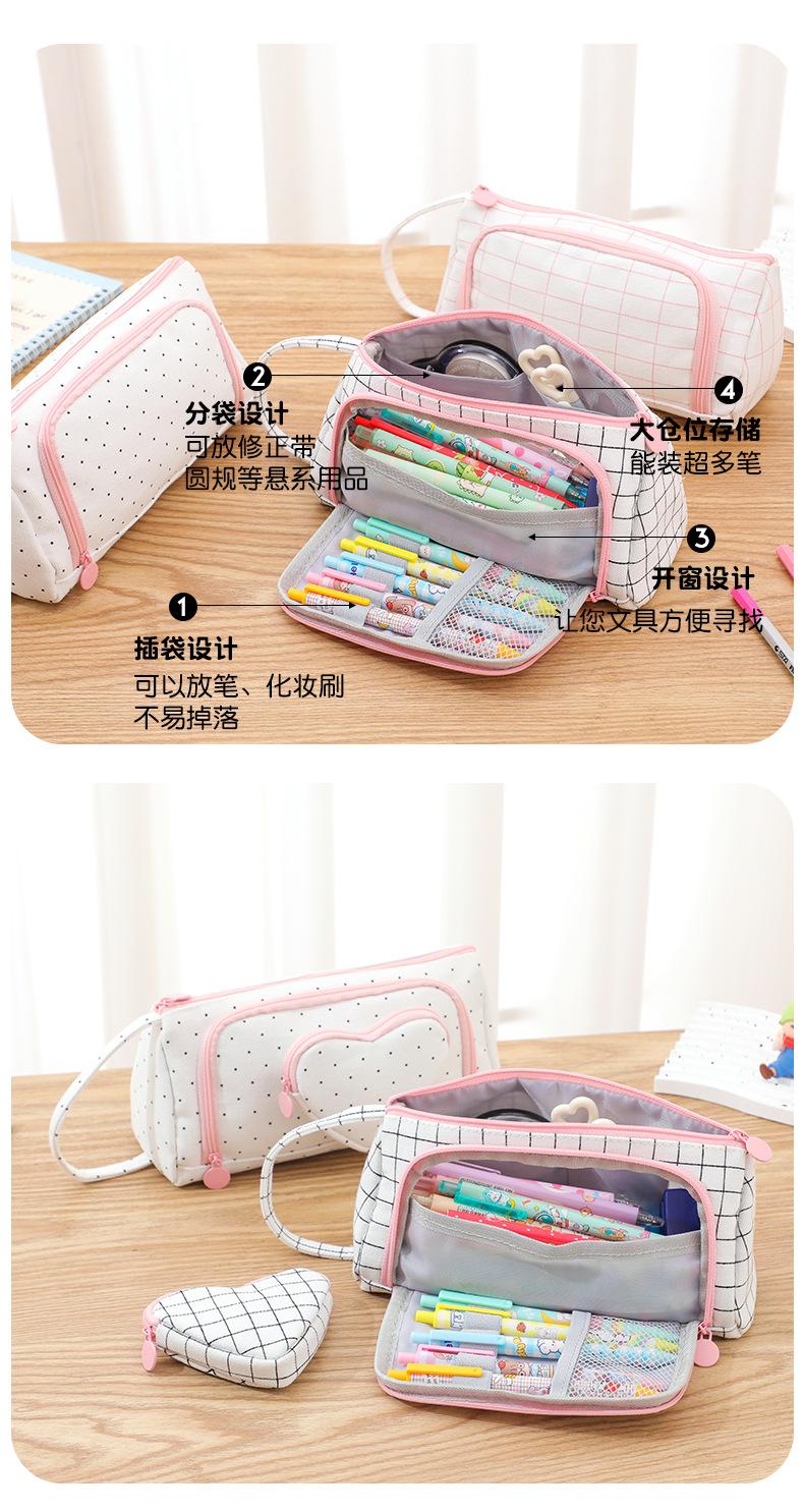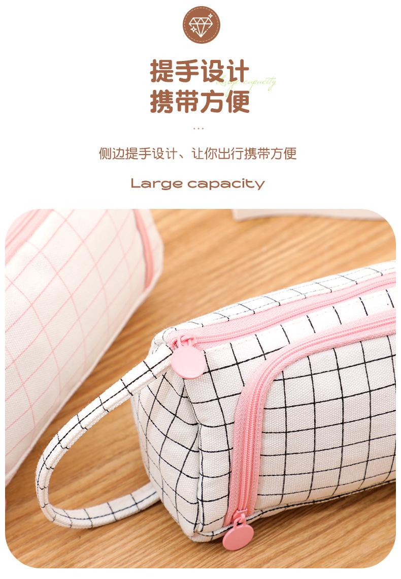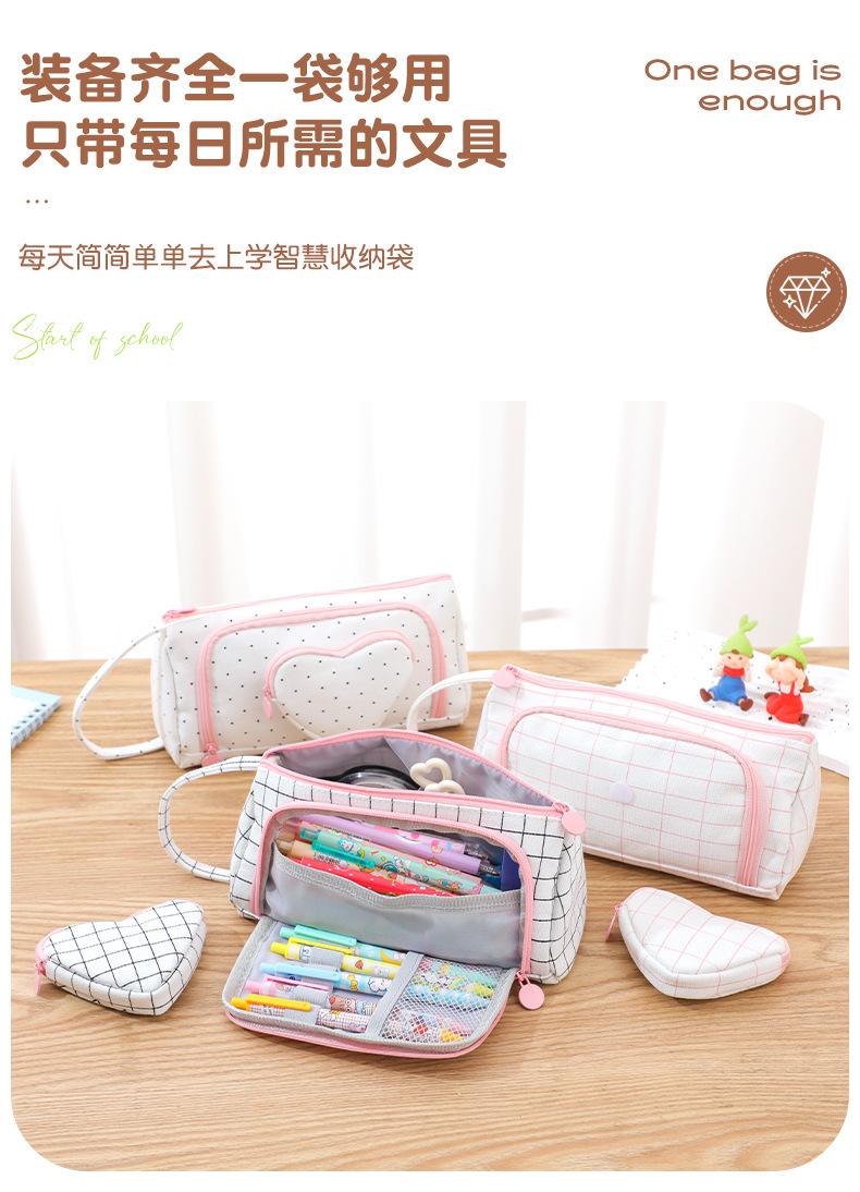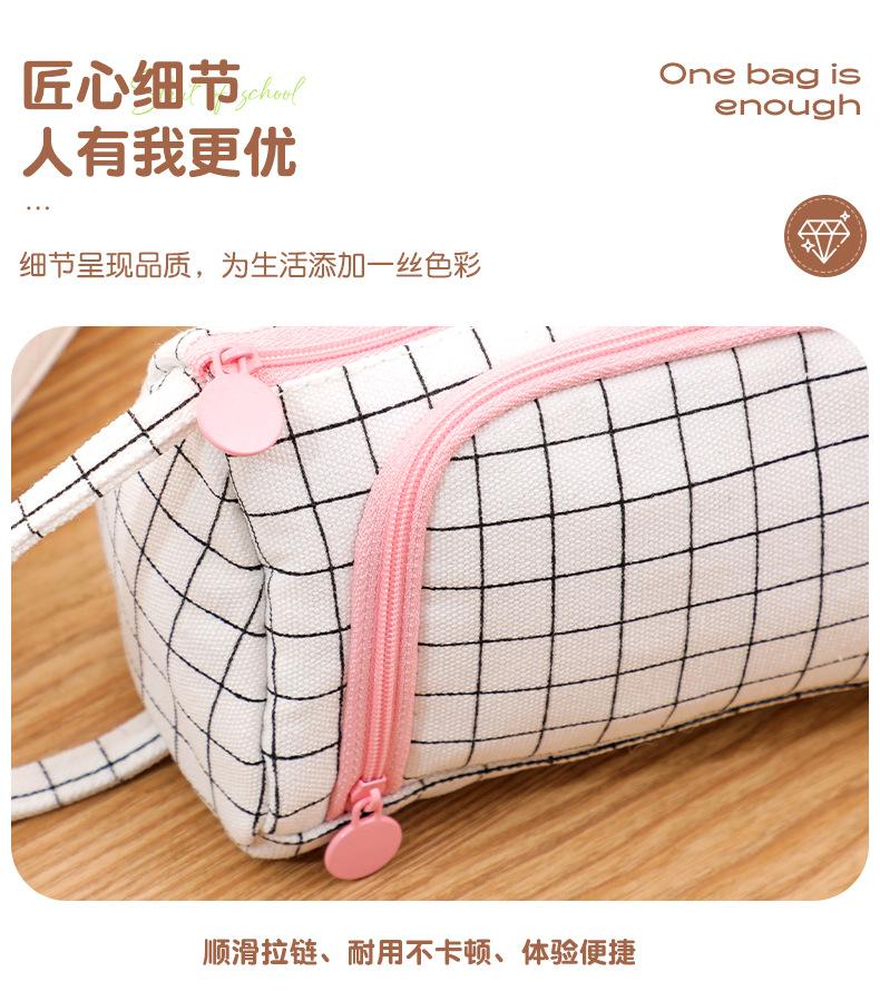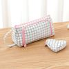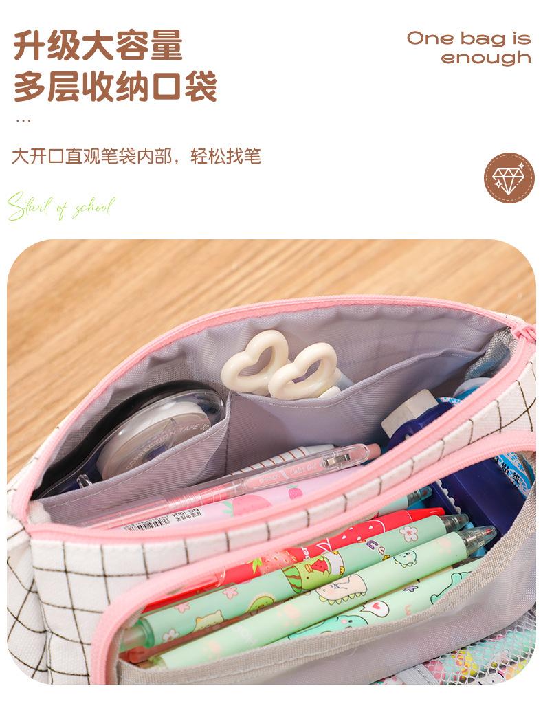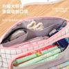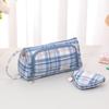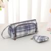 Estuche Portátil con Ventana de Gran Capacidad para Lápices para Mujer a Cuadros Estilo Coreano Simple Estuche de Lona Multifuncional para Papelería de Estudiante