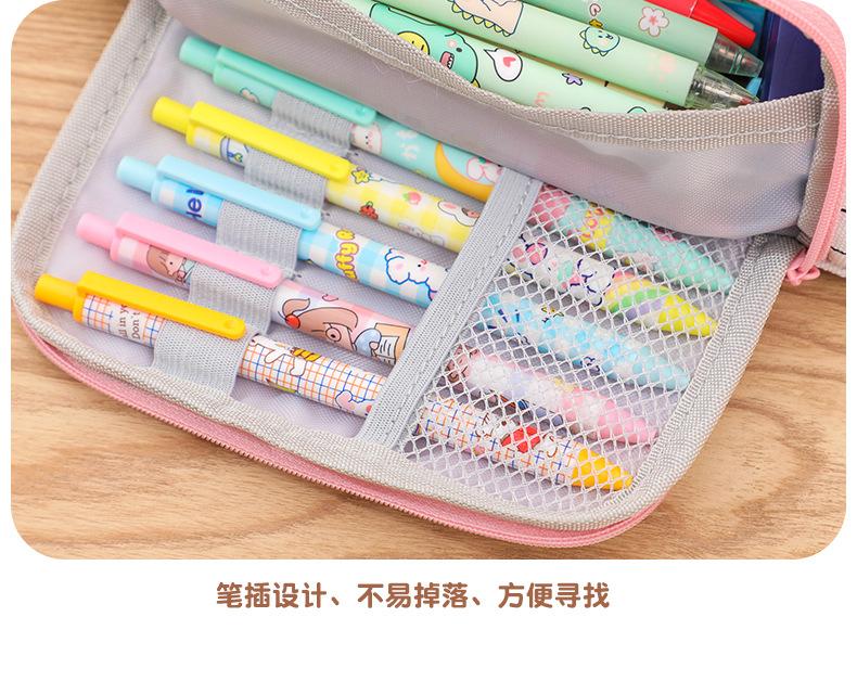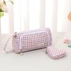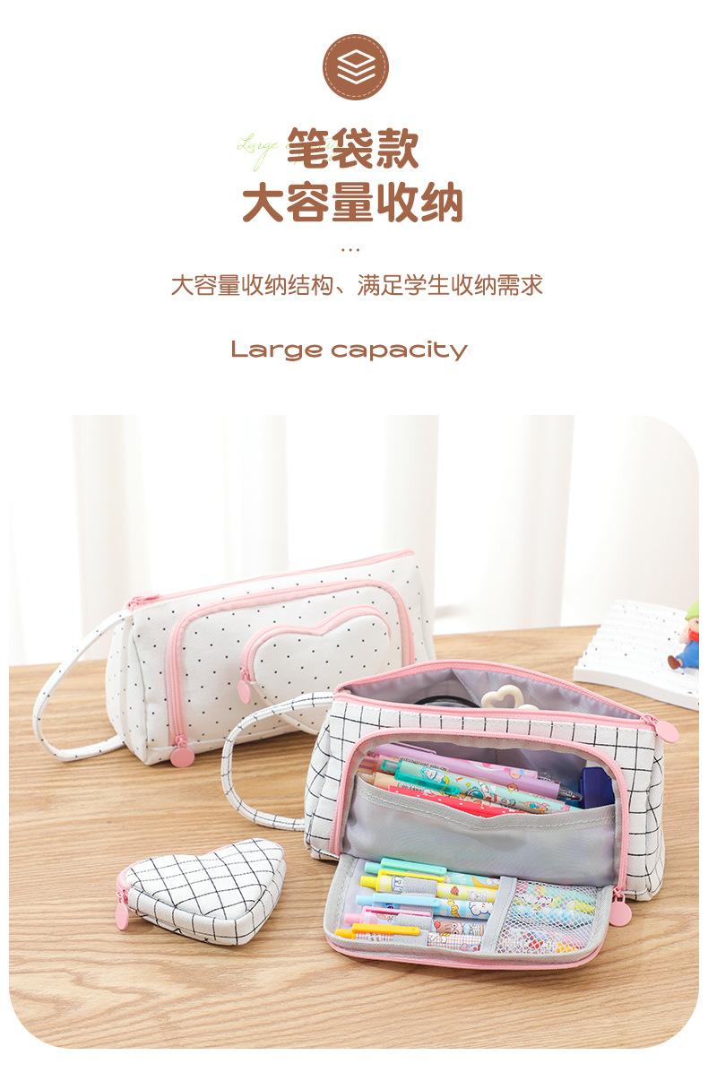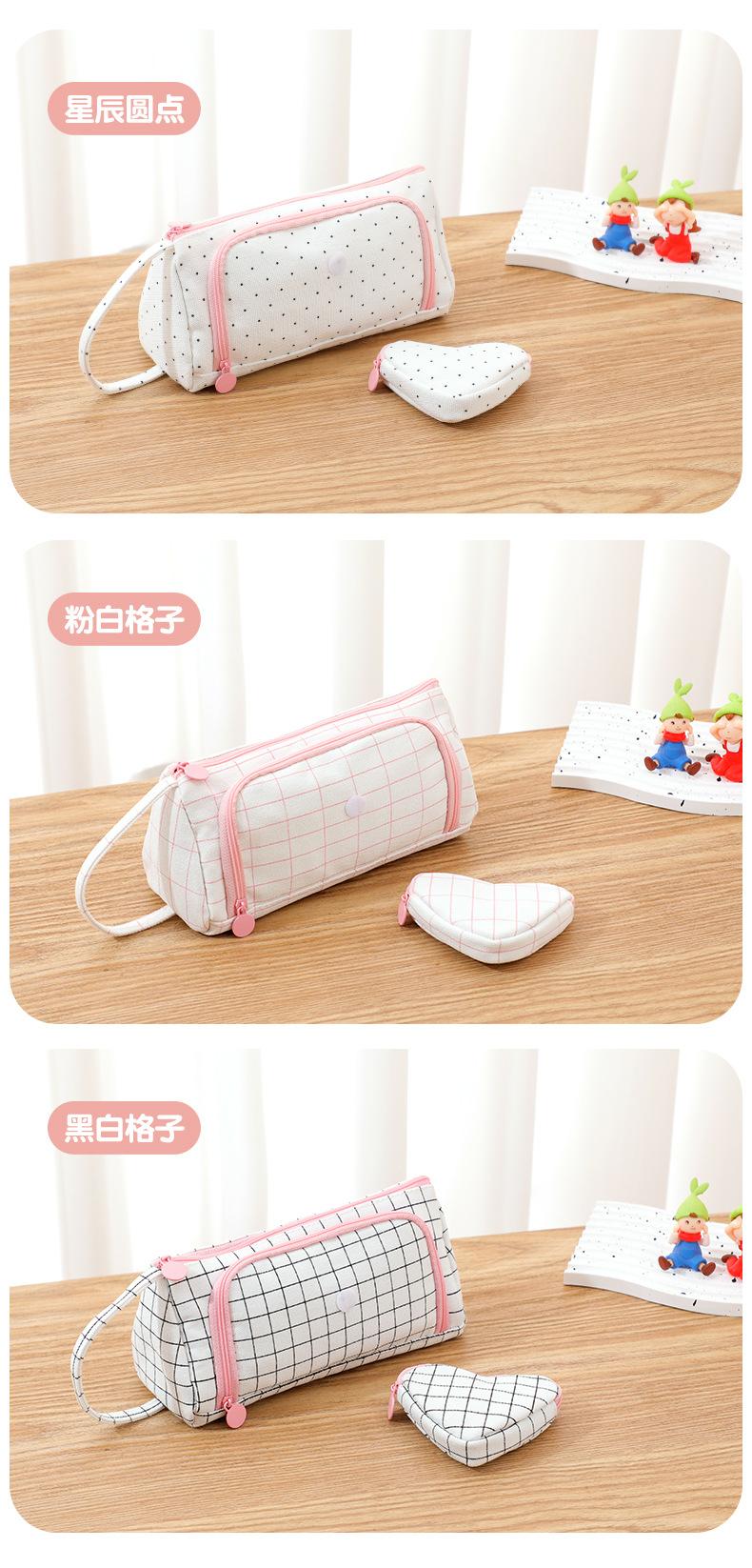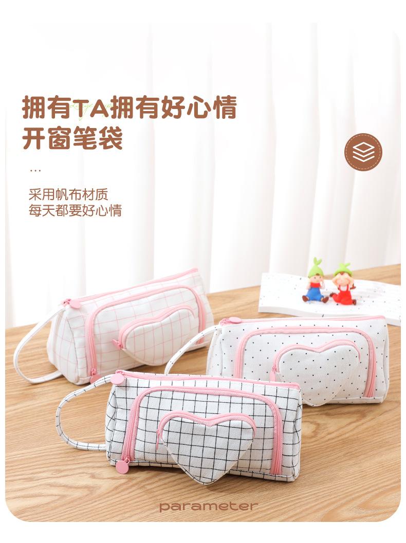 Estuche Portátil con Ventana de Gran Capacidad para Lápices para Mujer a Cuadros Estilo Coreano Simple Estuche de Lona Multifuncional para Papelería de Estudiante