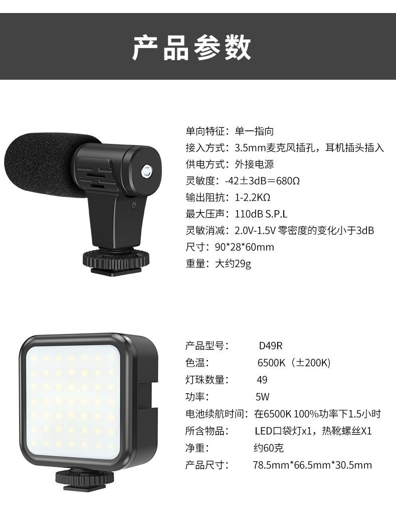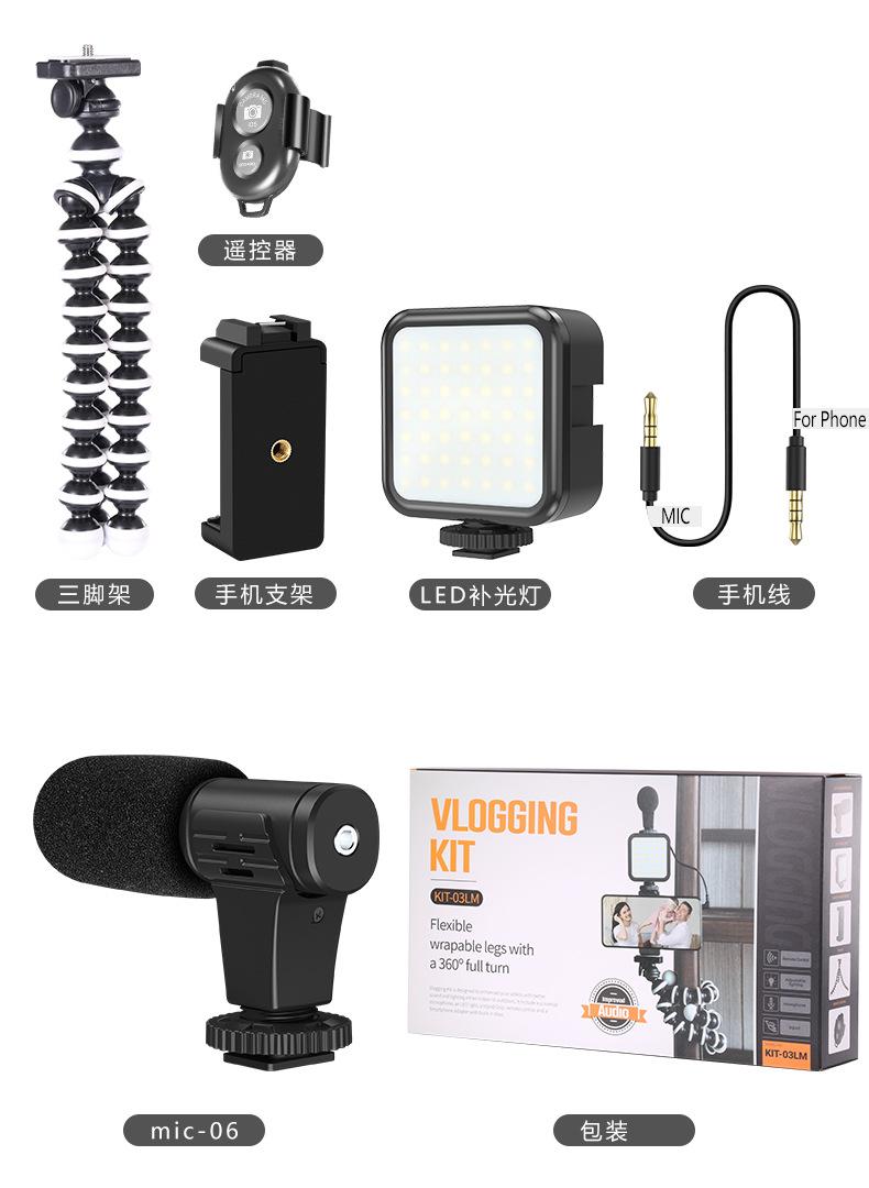 Suministro directo transfronterizo de teléfono móvil 03LM, set de grabación de Vlog en vivo, luz de relleno, trípode, accesorios para equipo fotográfico