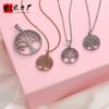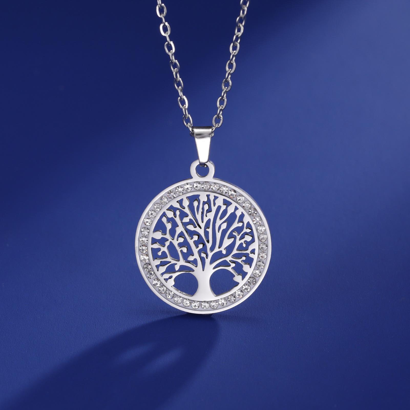 Collar de acero inoxidable con colgante de árbol de la vida hueco con corte de diamante y anillo exterior de lujo ligero popular europeo y americano