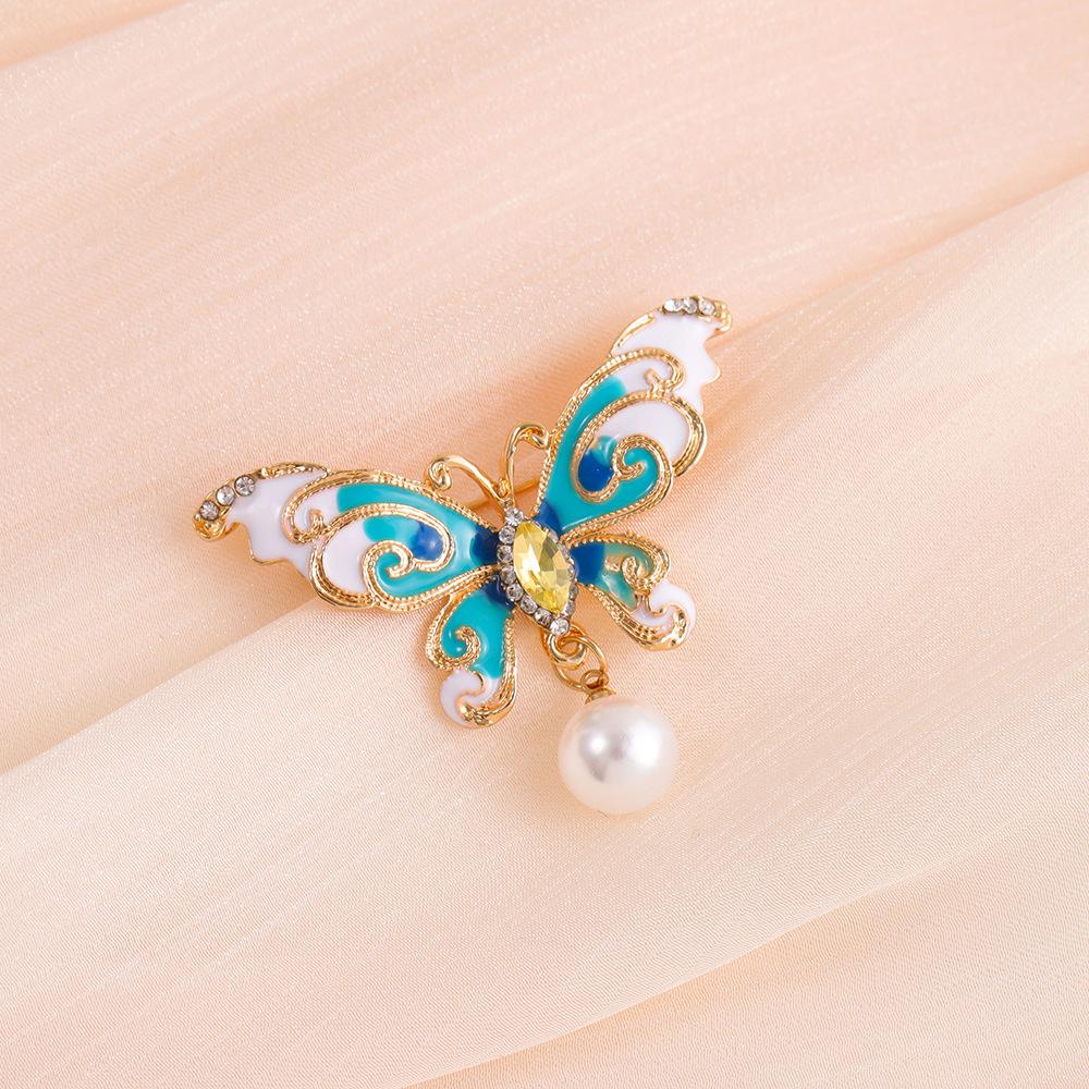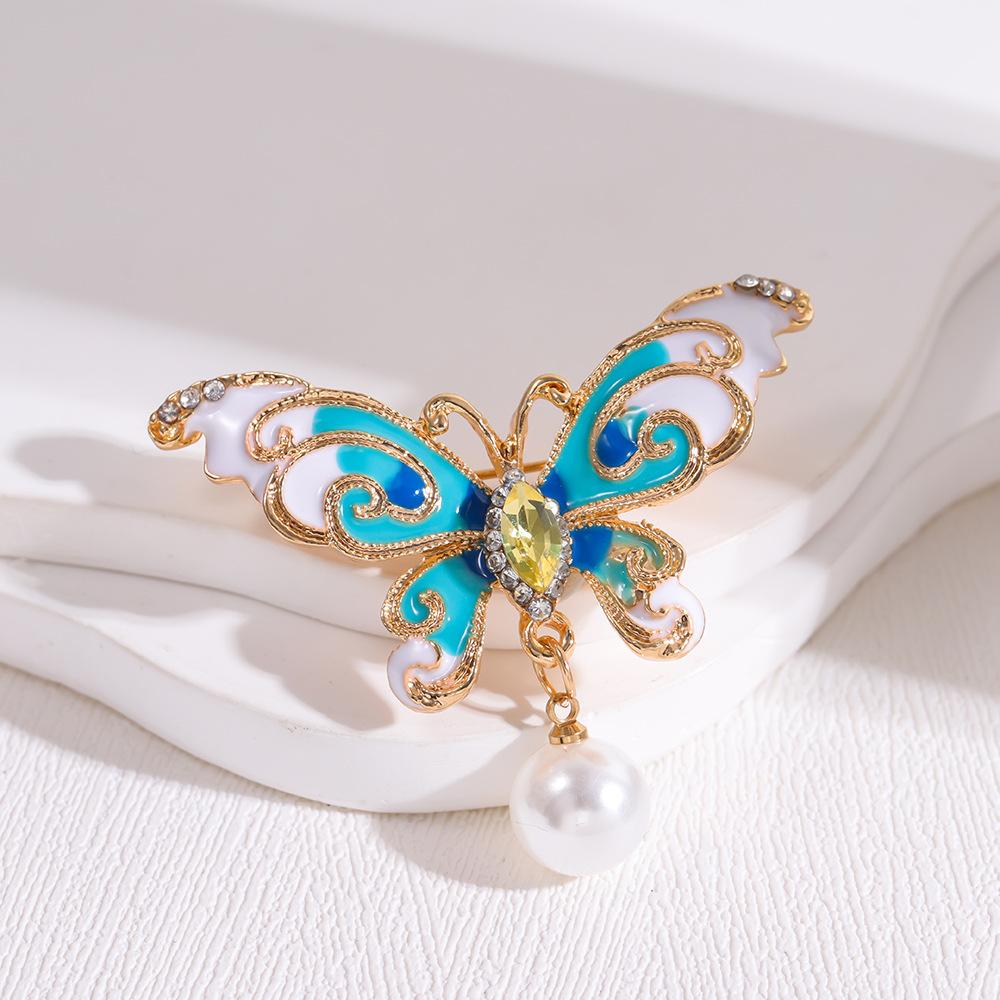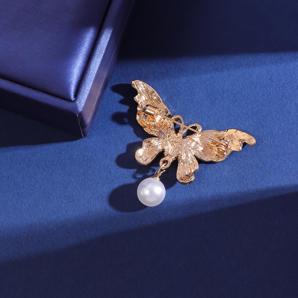 Broche de mariposa y perla de estilo coreano para mujer, elegante traje con hebilla antiexposición, broche que combina con todo, disponible en fábrica, broche al por mayor