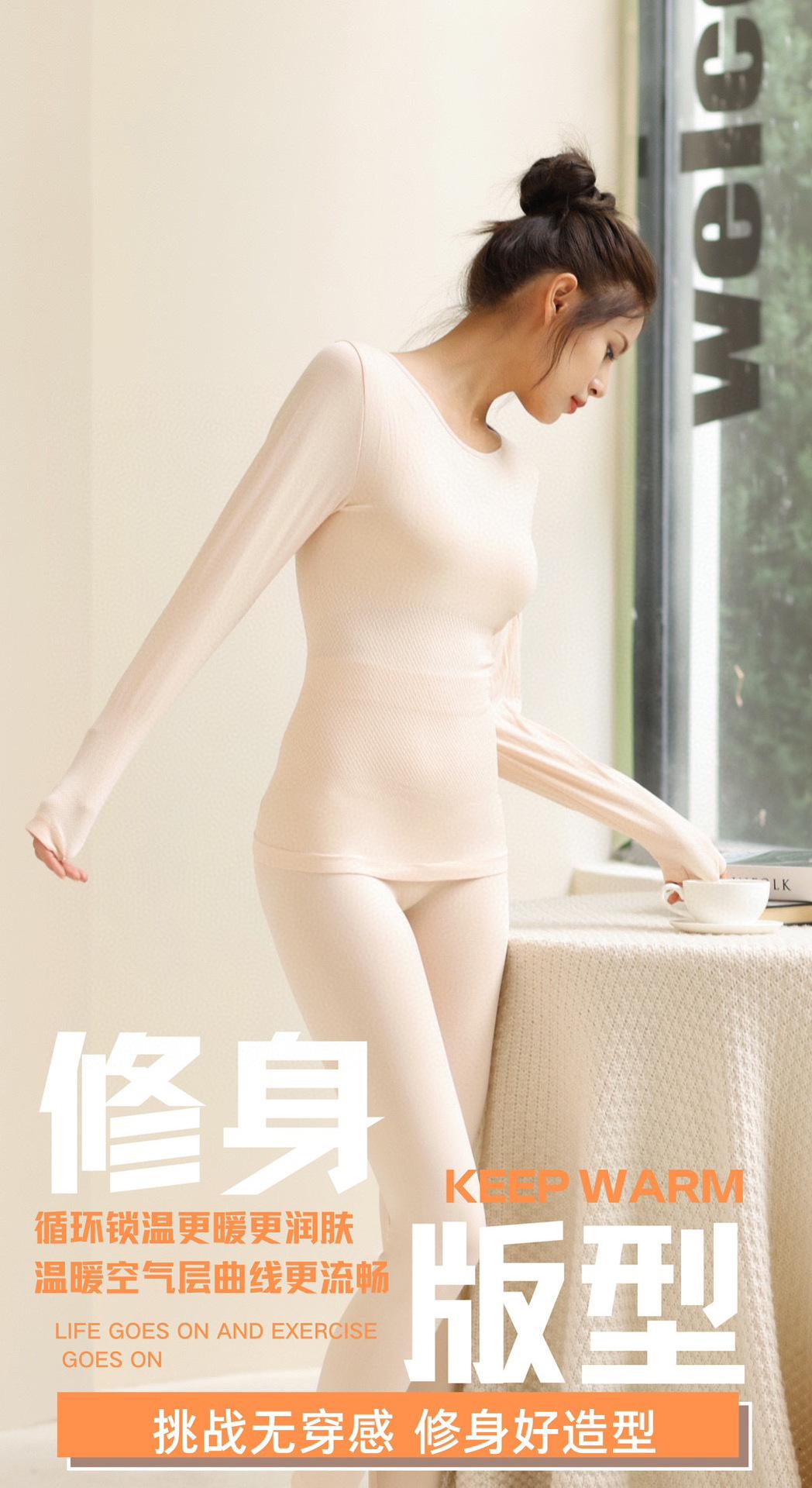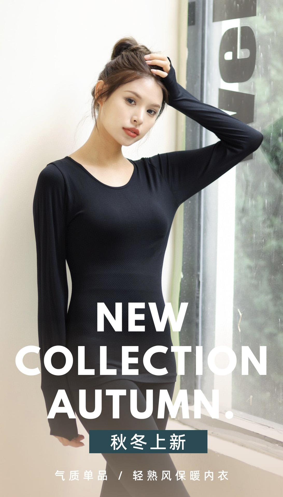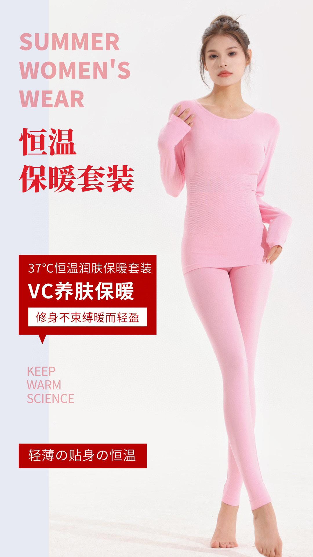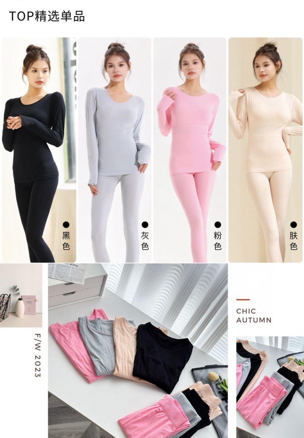 Nuevo Traje Cálido Ropa de Otoño para Mujer y Traje de Pantalón Largo Top Base Ropa de Otoño Delgado Otoño e Invierno Autocalentable Ajustado