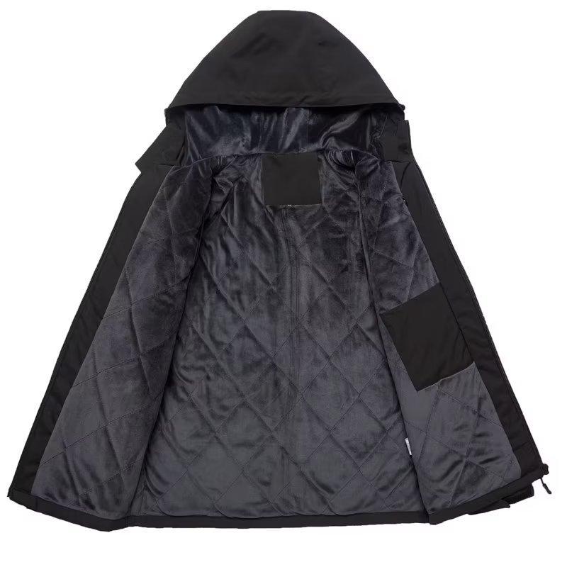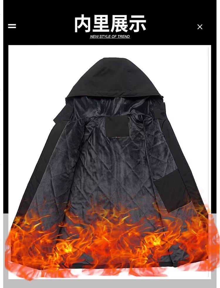 Chaqueta de invierno mecánica elástica integrada con forro polar grueso para exteriores con logotipo imprimible, cálida, impermeable, a prueba de viento, transpirable y para trabajo.
