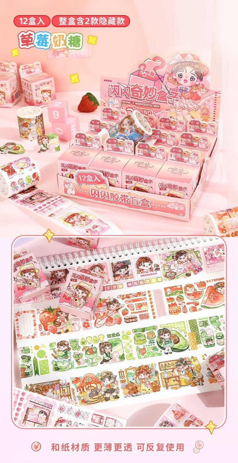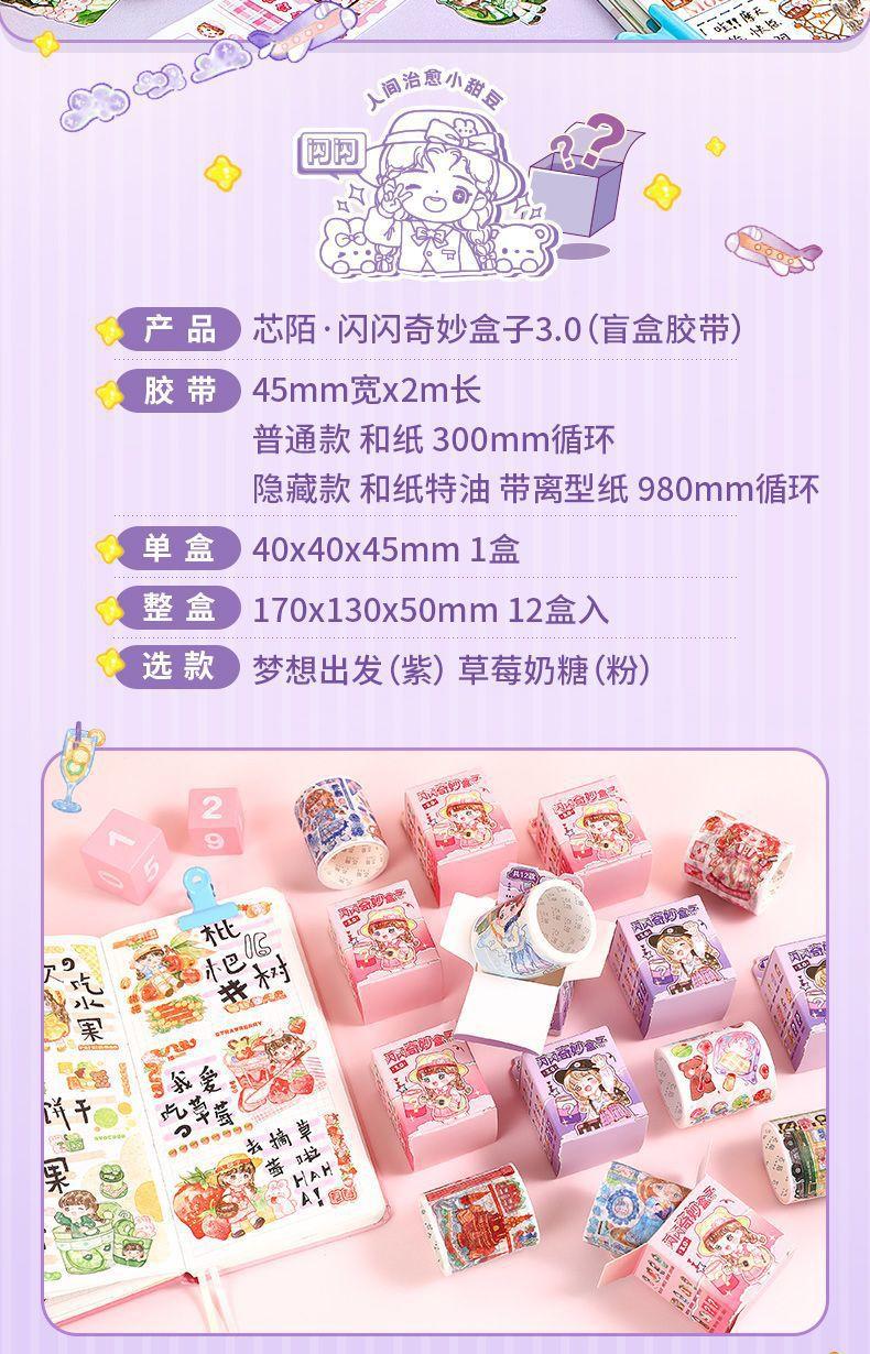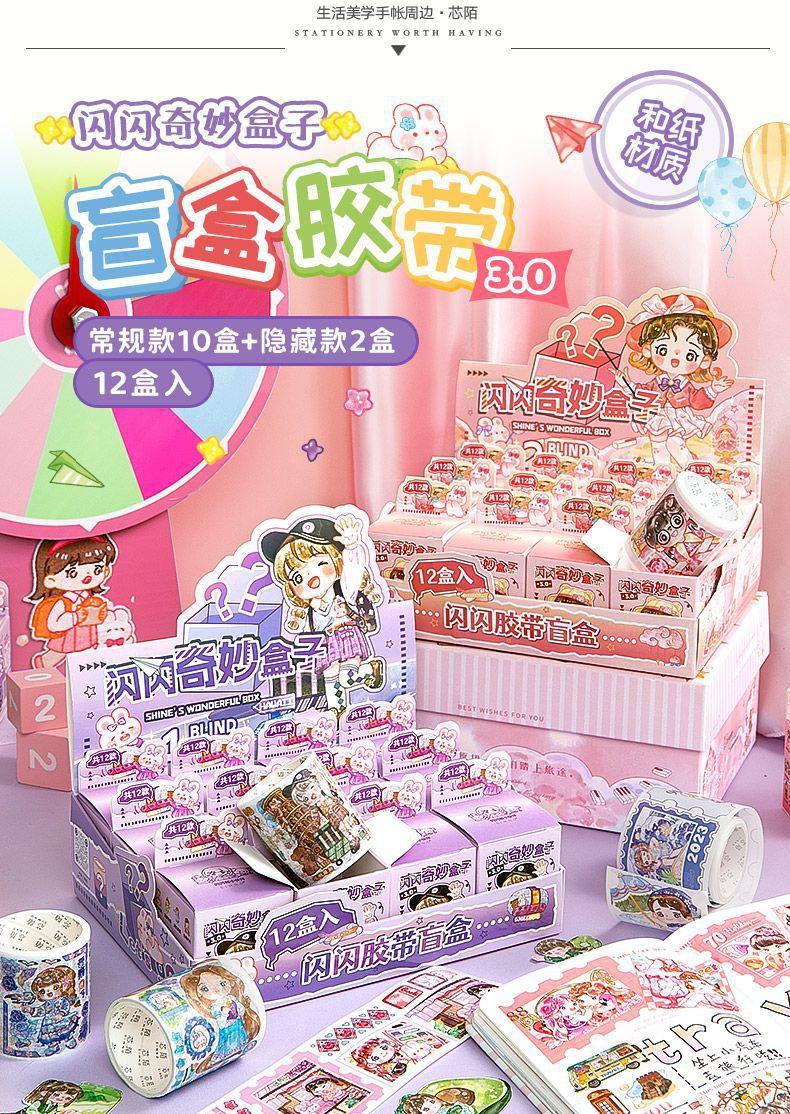 Cinta brillante Xinmo, maravillosa caja nueva, caja ciega, material de cinta de diario, pegatinas decorativas, lindas y cinta de papel