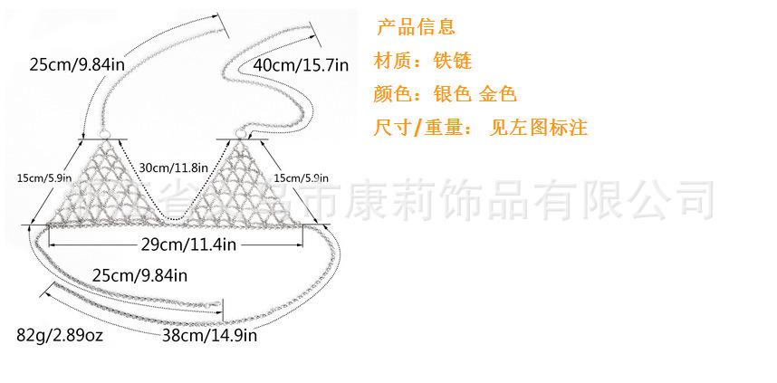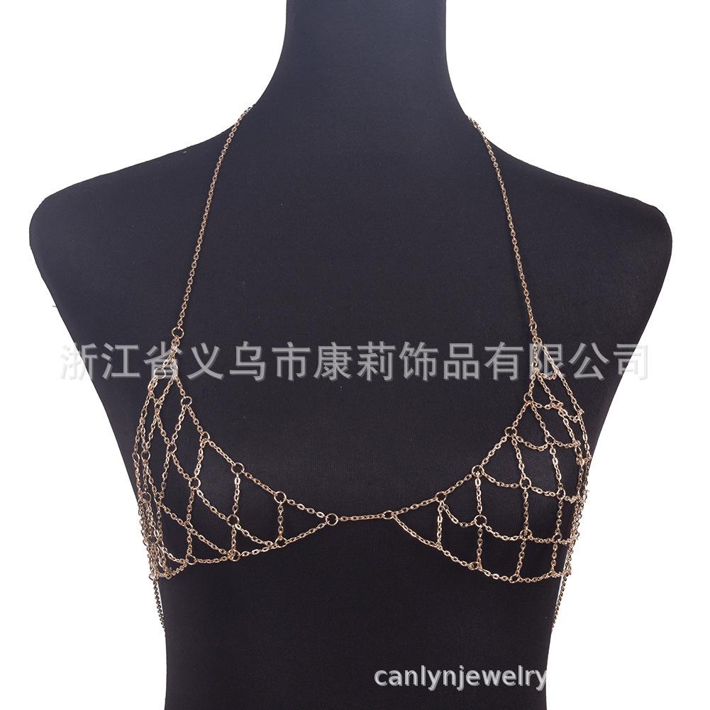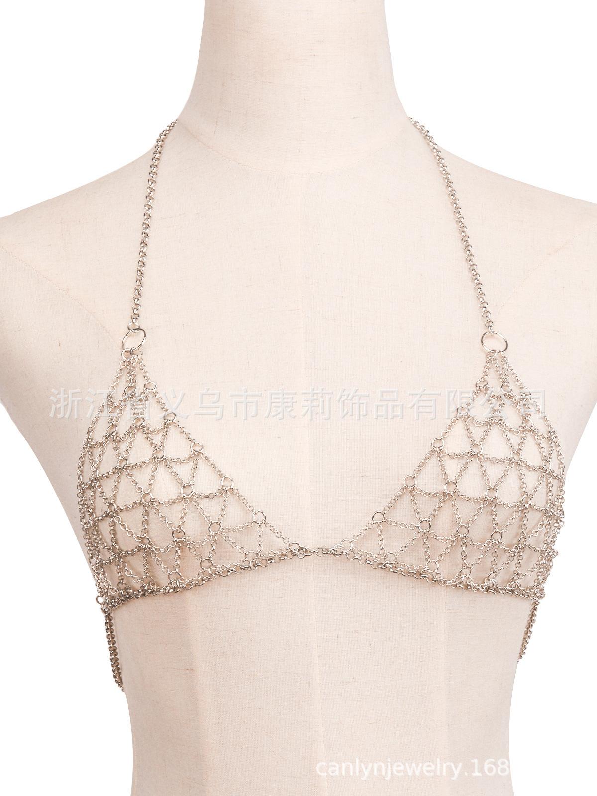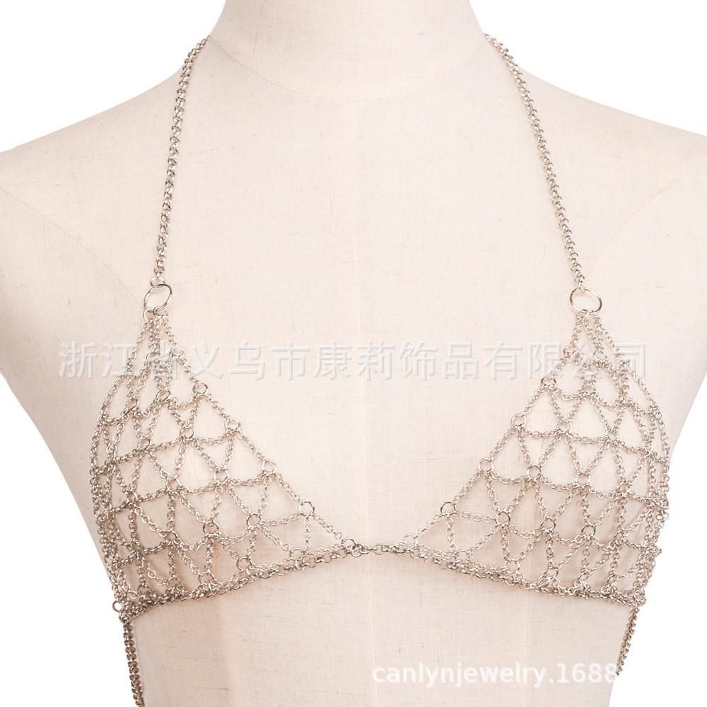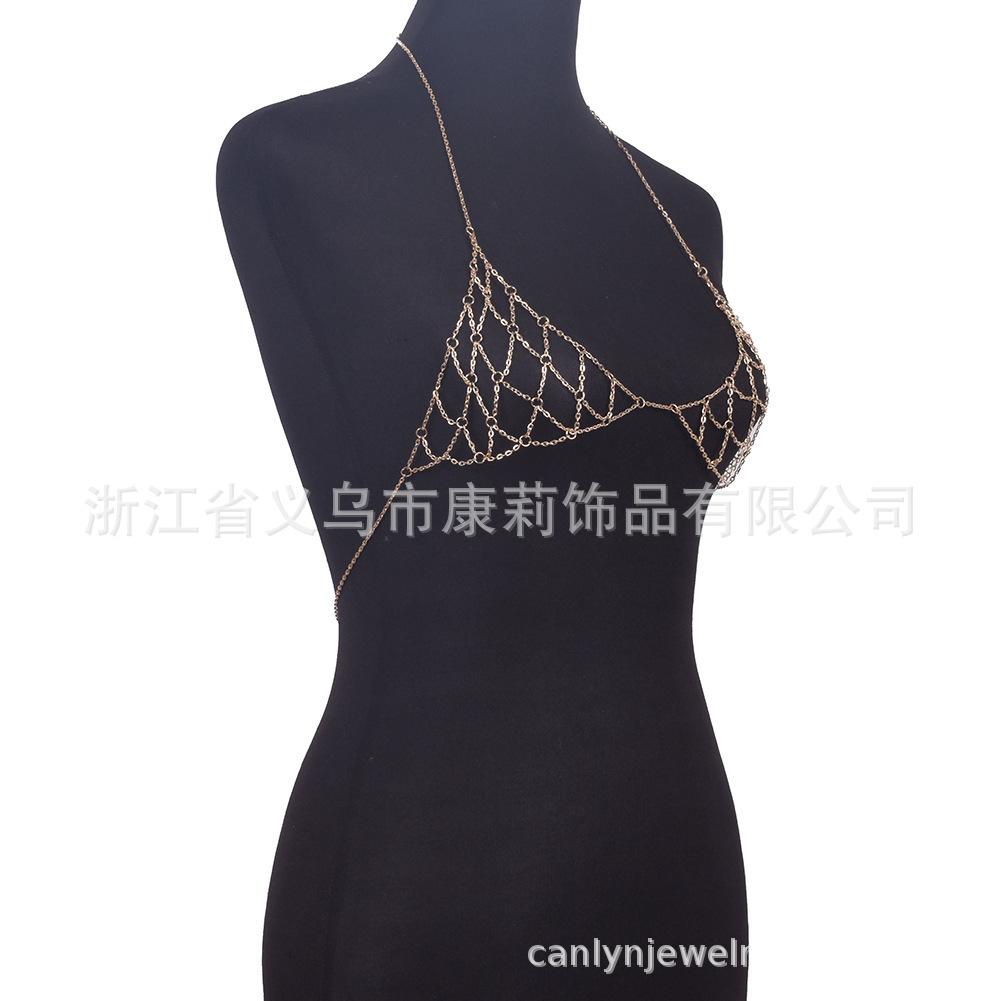 Cadena de sujetador de malla dorada y plateada de verano sexy de joyería europea y americana para mujer BC122