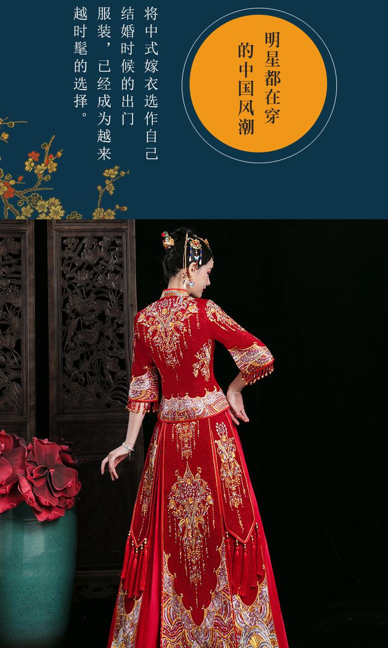 Xiuhe Clothing 2020 Nueva ropa de mujer Vestido de novia fino de estilo chino para boda de verano Vestido de novia Kimono para mujer