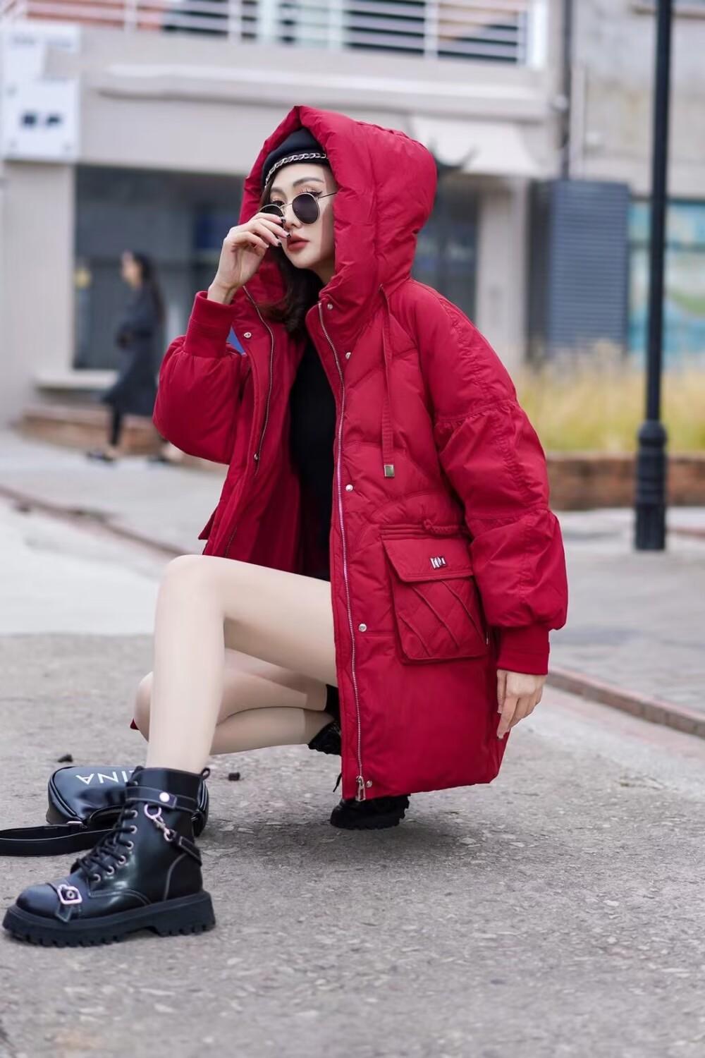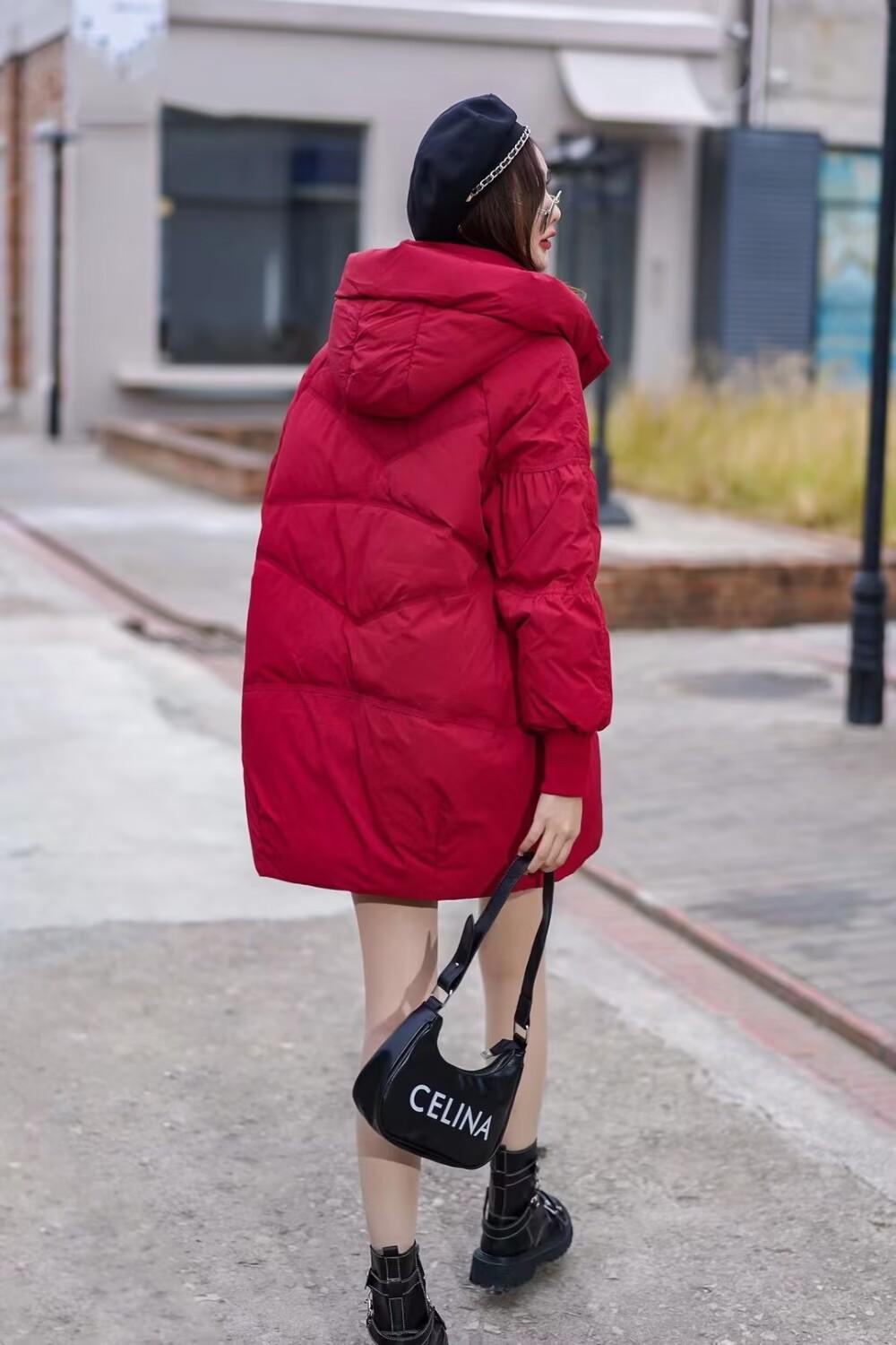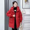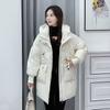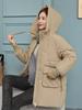 Chaqueta de invierno con capucha de algodón de longitud media para mujer, abrigo holgado con bolsillo de piña, talla grande, grueso y acolchado de algodón, resistente al frío.