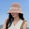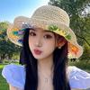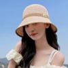 Sombrero de Pescador de Cabeza Grande para Mujer 2025 Nuevo Sombrero de Paja Tejido con Letras de Moda Verano Portátil Playa Transpirable Sombrero para el Sol