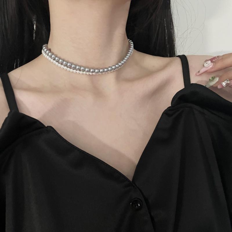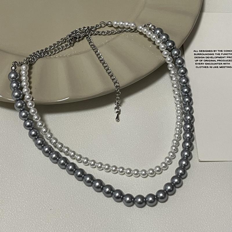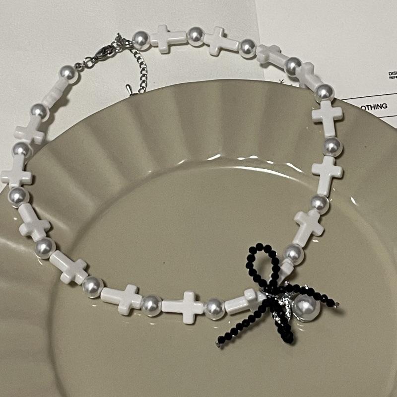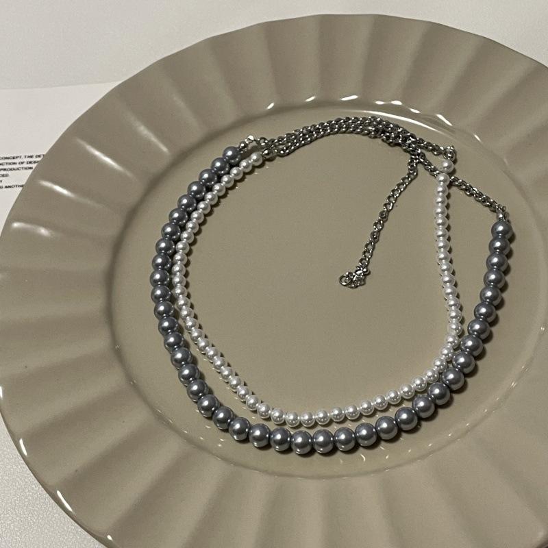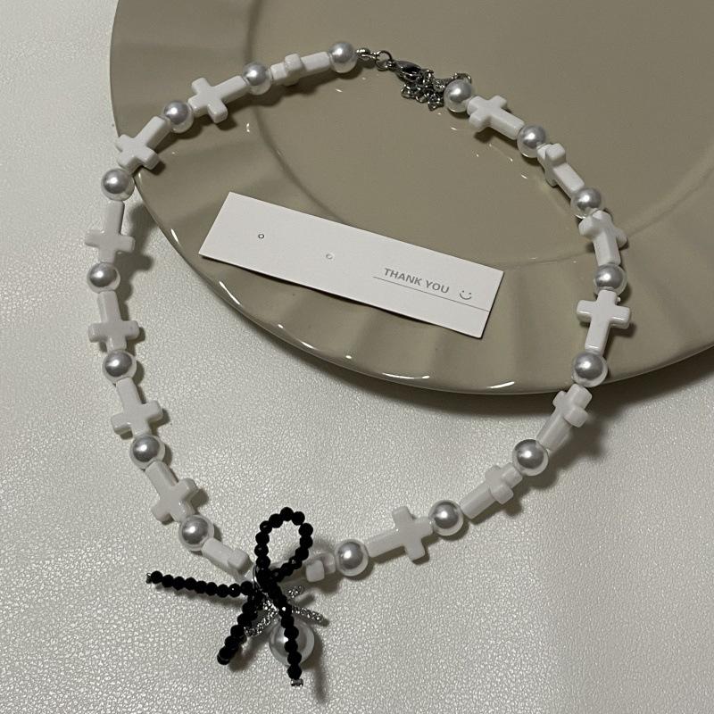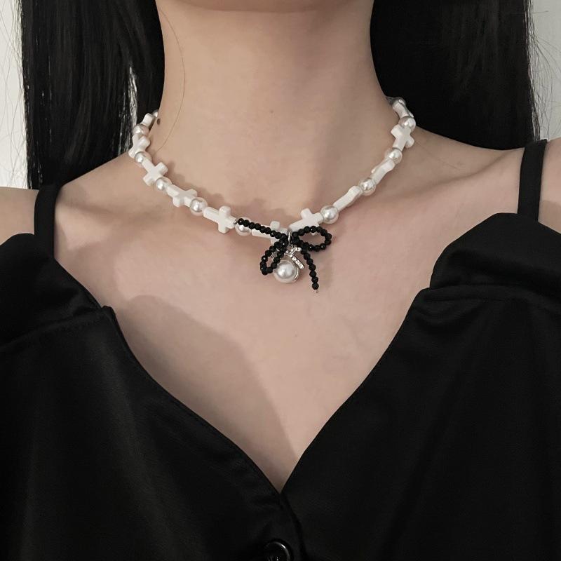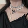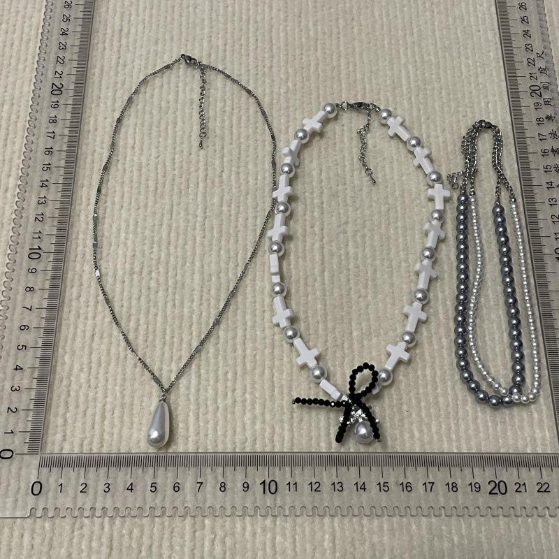 Double layer pearl necklace, Water Drop Pearl Necklace, Bow Necklace