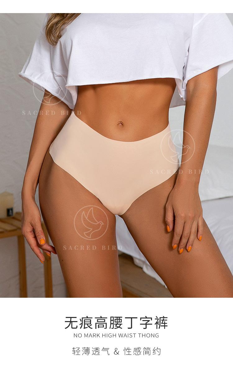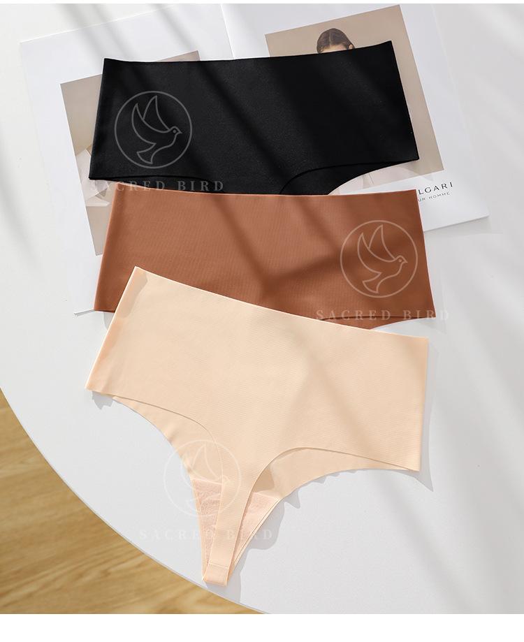 Tanga de una pieza de talla grande sin costuras, transfronterizo europeo y americano, ropa interior de seda helada de cintura alta, de secado rápido, tentación sexy para mujer.