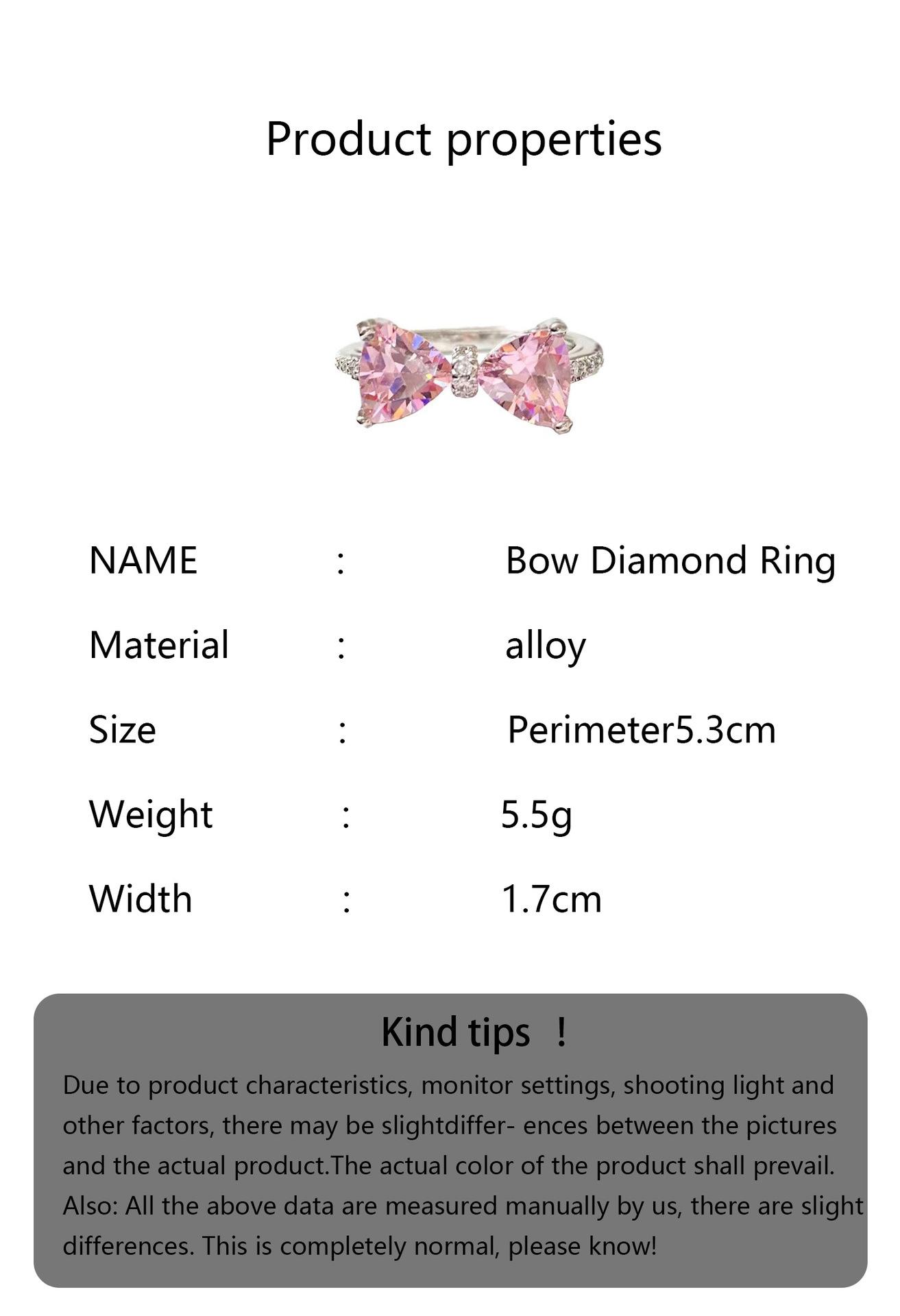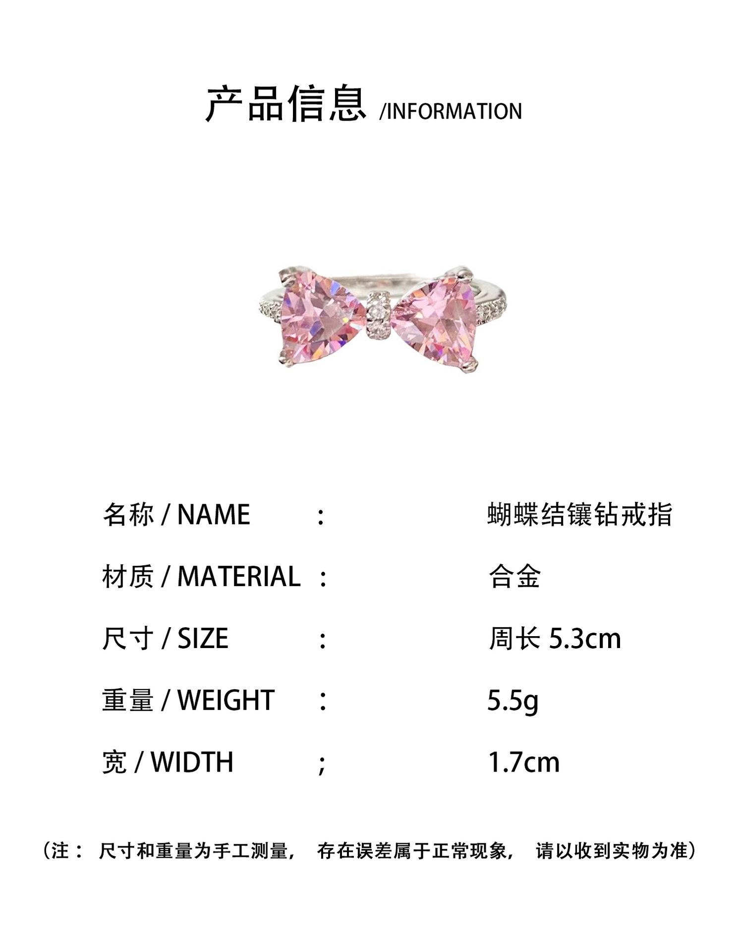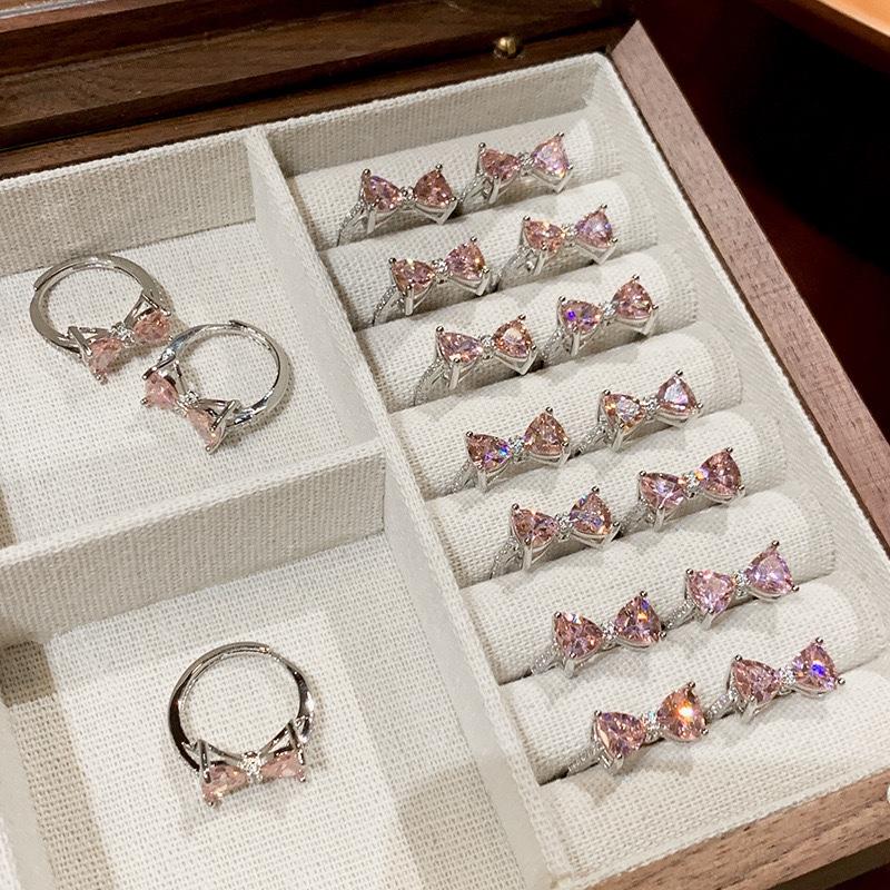 Anillo de Lazo de Zircón Rosa Anillo de Personalidad de Moda Trendy Nicho de Temperamento de Alto Nivel Estilo Frío para Mujer Trendy
