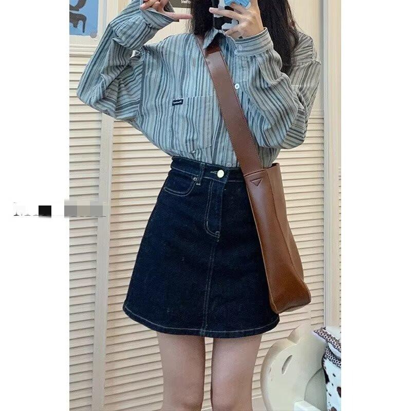 Falda vaquera de talla grande para mujer, verano 2024, nueva falda acampanada versátil de cintura alta para chica gordita, a la moda