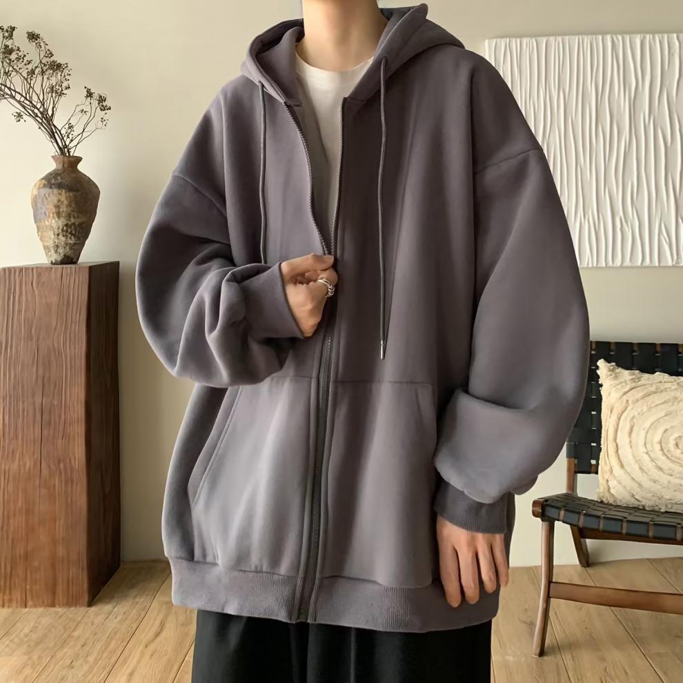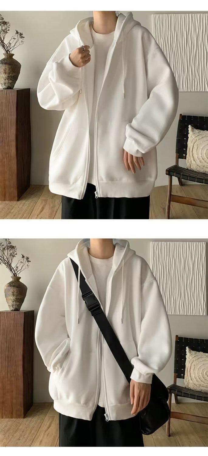 Primavera y Otoño 2024 Nueva Moda Marca Moda Casual Suéter Cárdigan para Hombre Suéter con Capucha de Color Sólido Chaqueta para Pareja