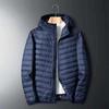 Chaqueta ligera de terciopelo y algodón acolchado para hombre, con cuello alto corto y capucha, informal, de algodón acolchado ligero, talla grande, para hombre