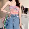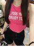 Camisola con letras rojas estilo Pure Desire para mujer, prenda exterior de verano, corte entallado, estilo americano, dulce y sexy, corta, sin mangas, top pequeño