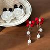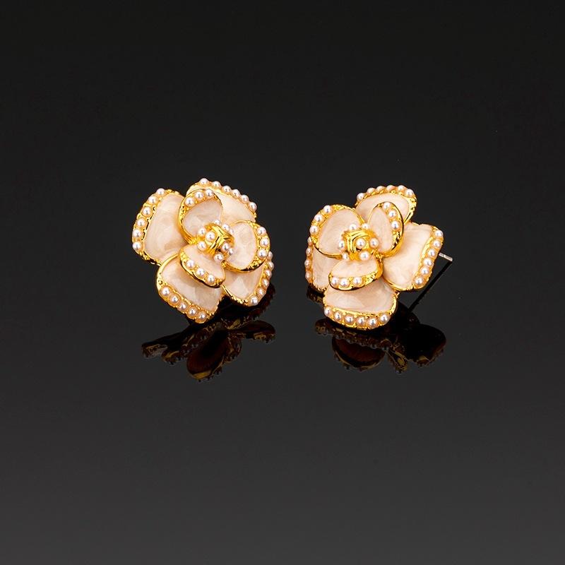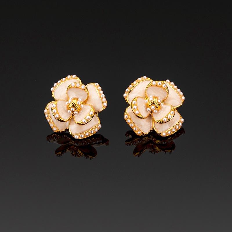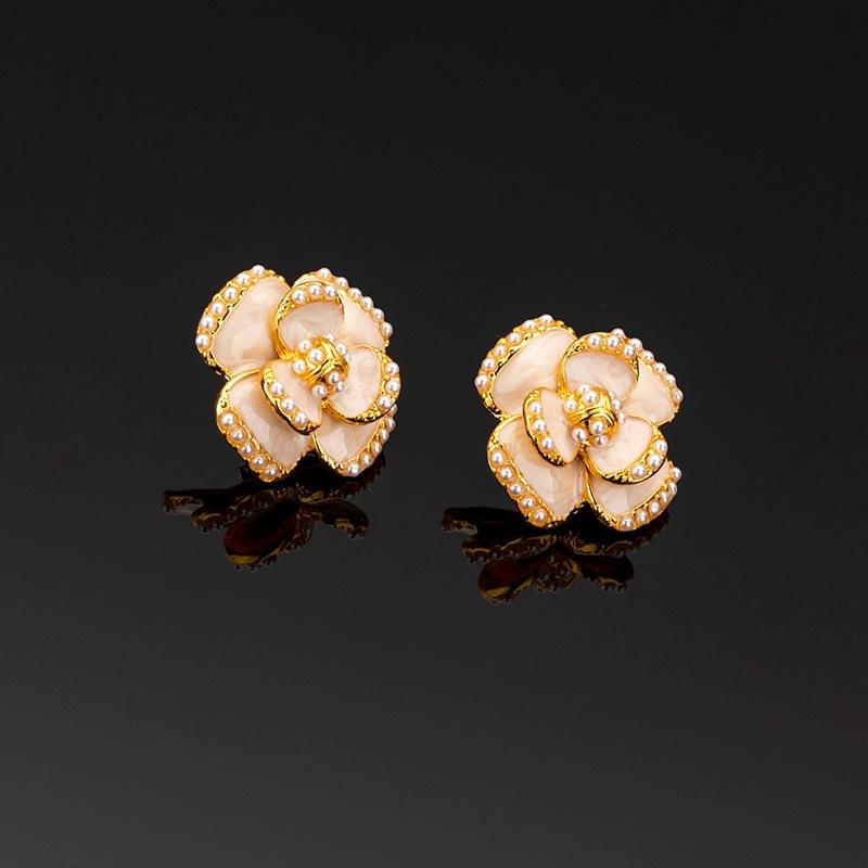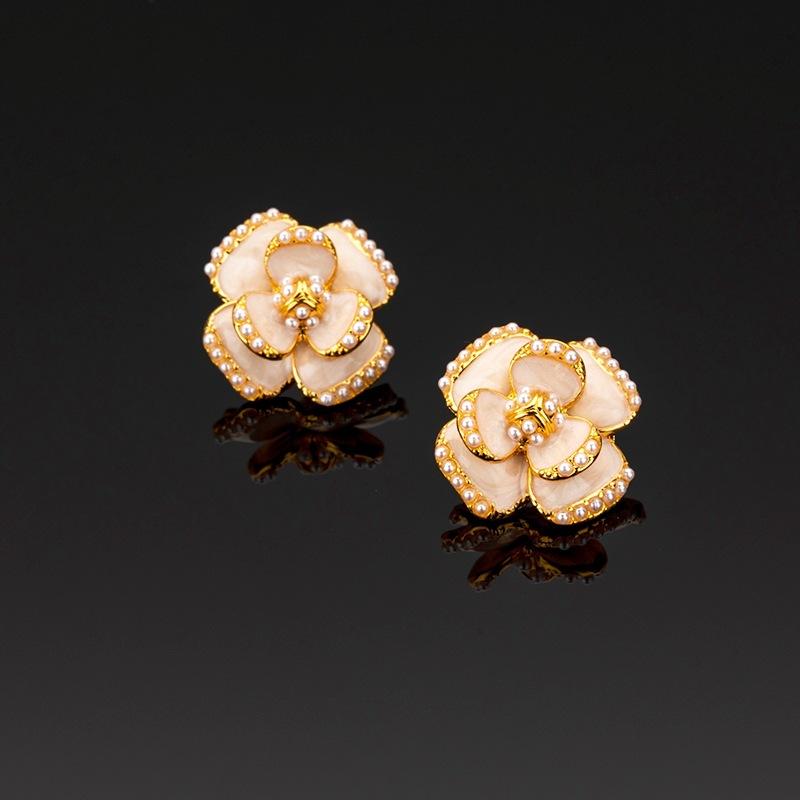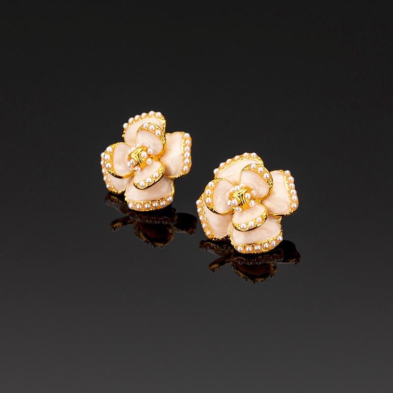 Nuevos pendientes de camelia con esmalte tridimensional pintado a mano, estilo Chanel, con incrustaciones de perlas S925, pendientes para mujer