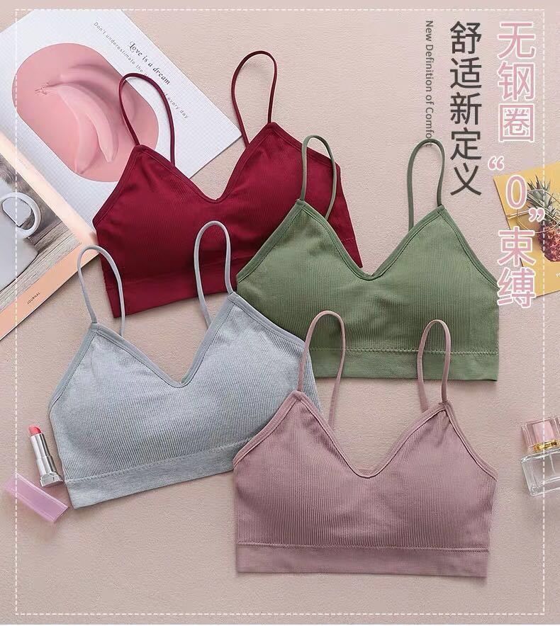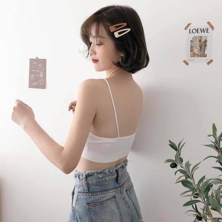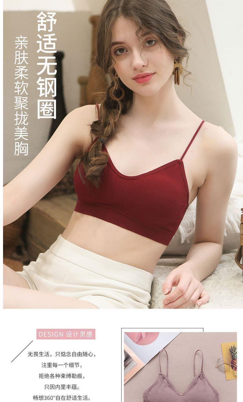Venta al por mayor transfronteriza de ropa interior para niñas con espalda hermosa, escote en V sin aro de acero, camisola pequeña para estudiantes, top de tubo fruncido en el pecho
