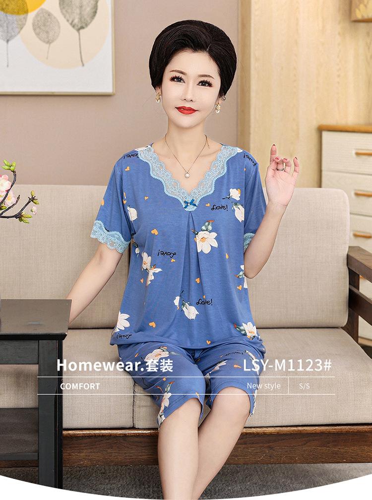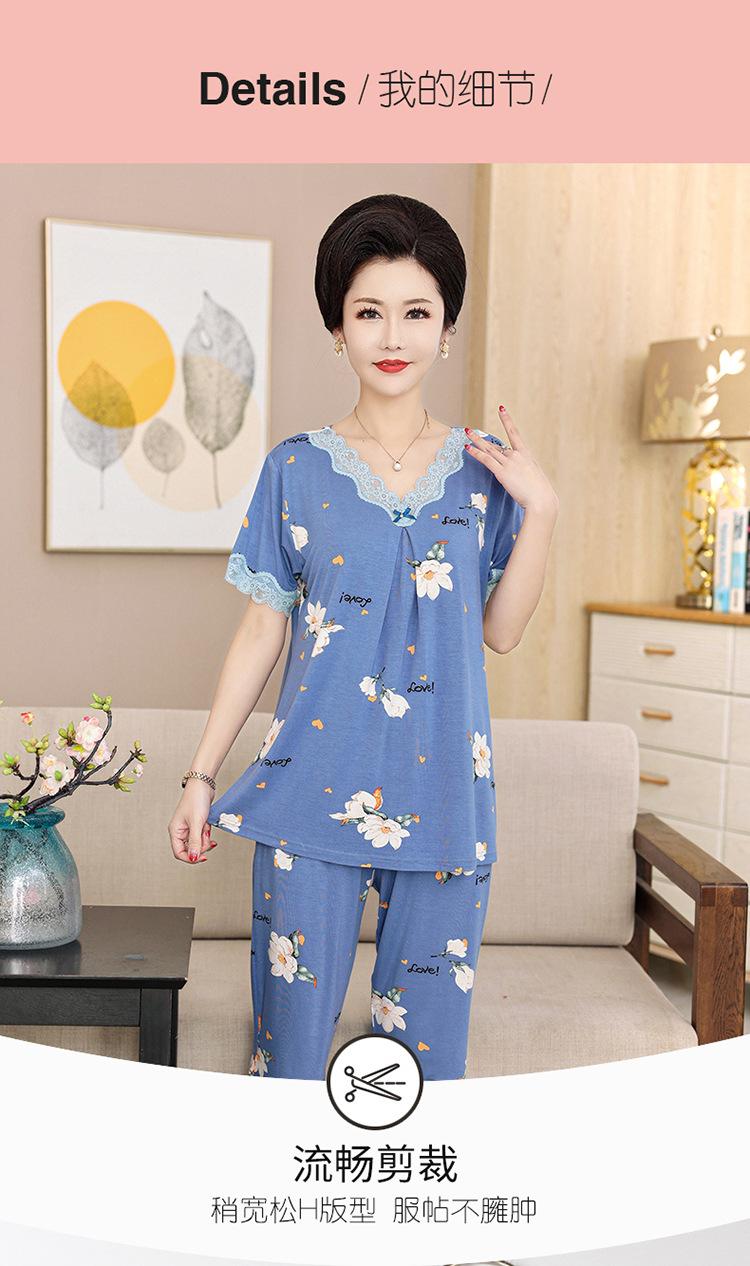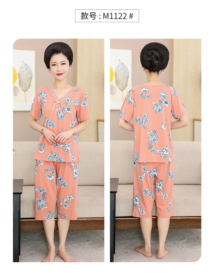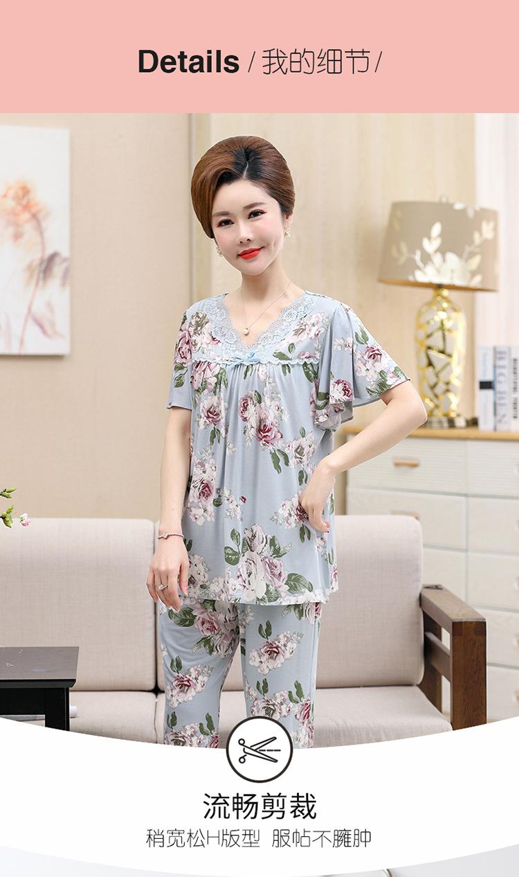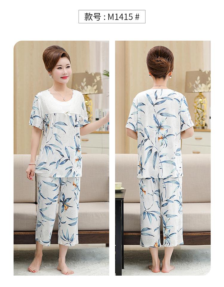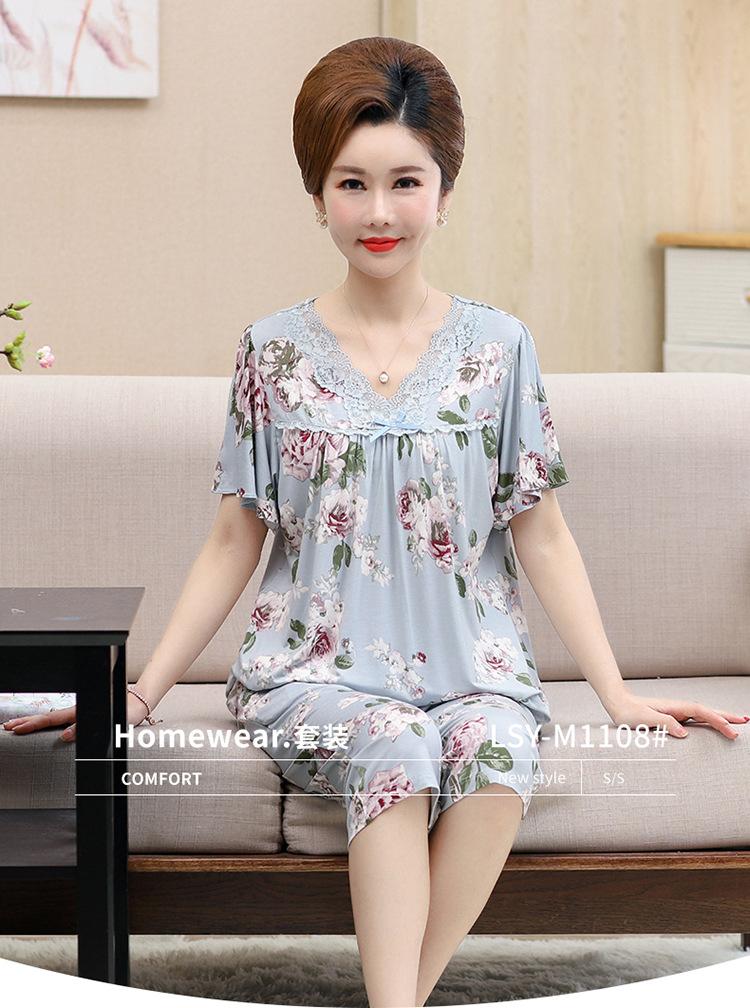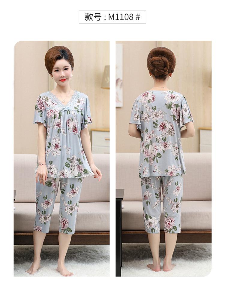 Pijama de verano para mujer para exteriores modal delgado para mamá de mediana edad manga corta pantalones capri verano talla grande ropa para el hogar