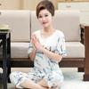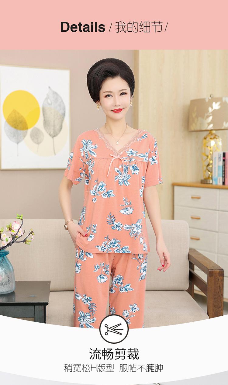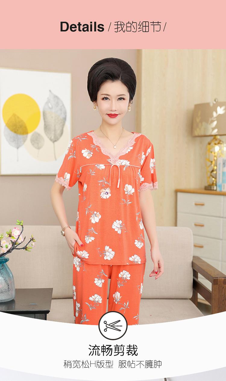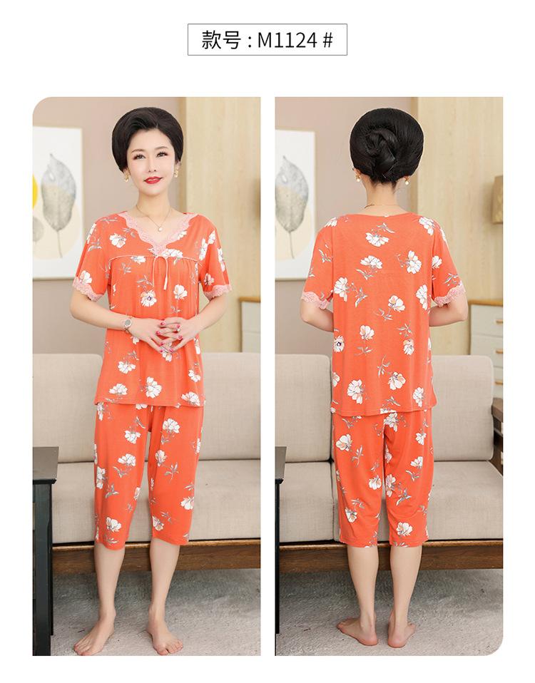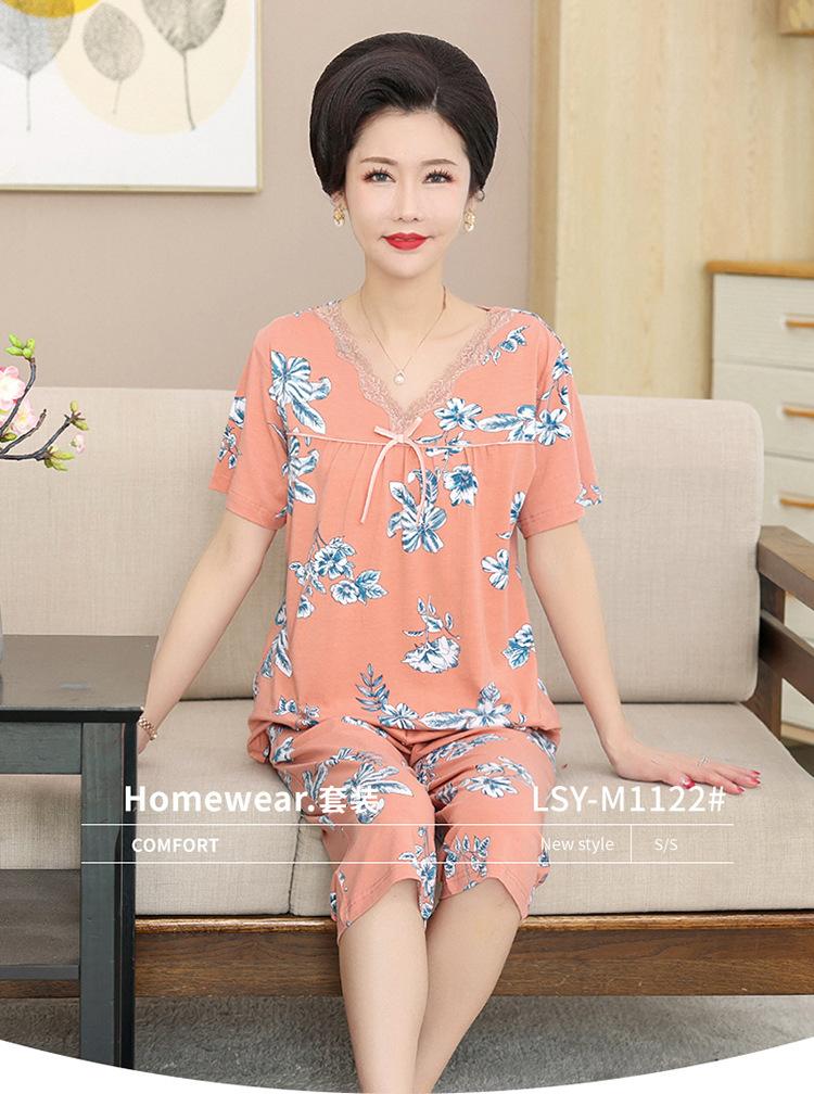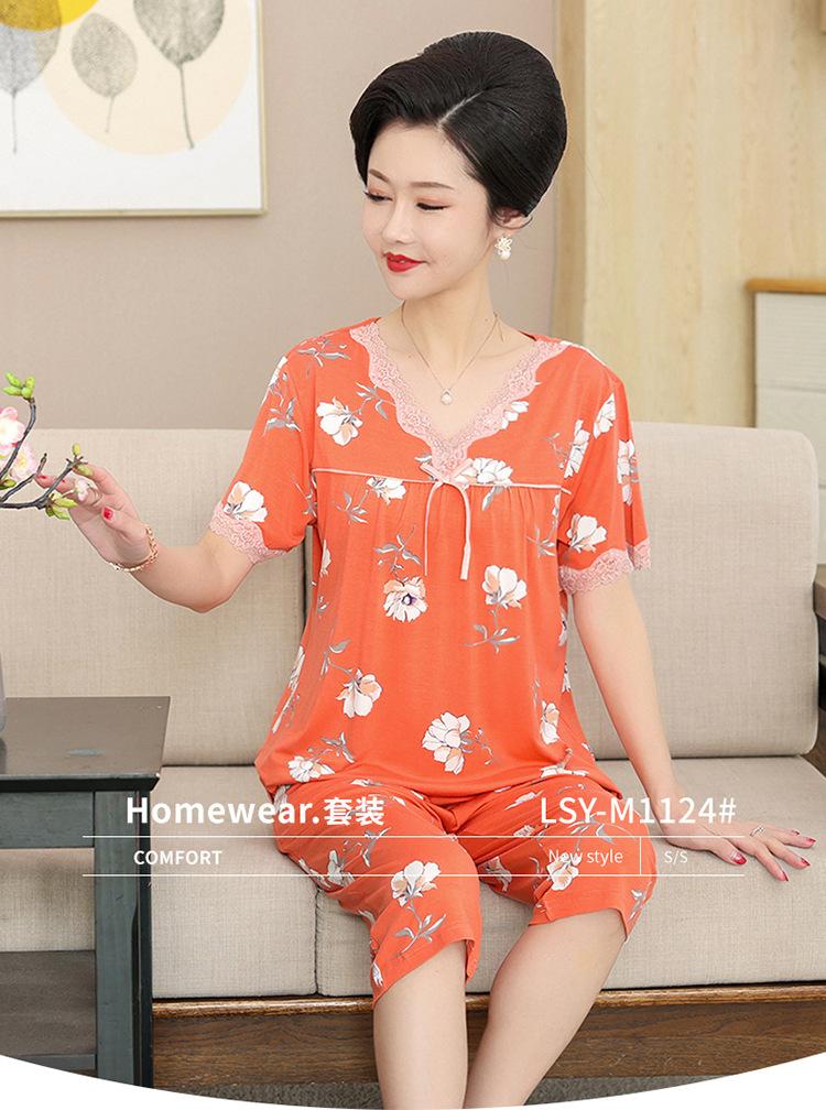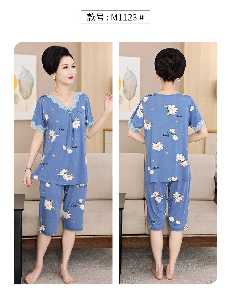 Pijama de verano para mujer para exteriores modal delgado para mamá de mediana edad manga corta pantalones capri verano talla grande ropa para el hogar