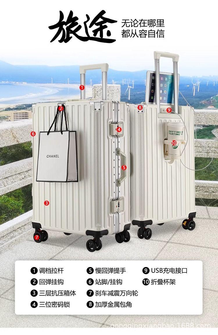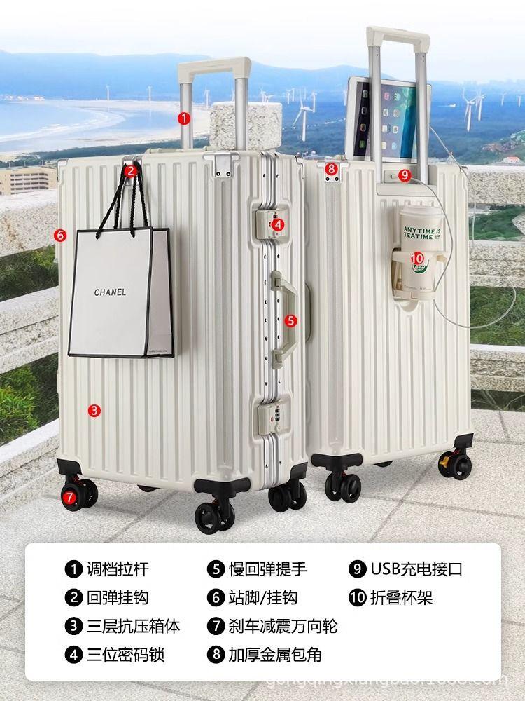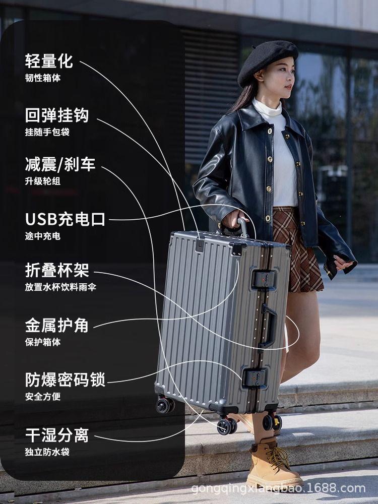 Equipaje multifuncional nueva maleta con ruedas Maleta para hombre maleta para mujer con contraseña Estuche para estudiante USB portavasos estuche con contraseña engrosado
