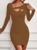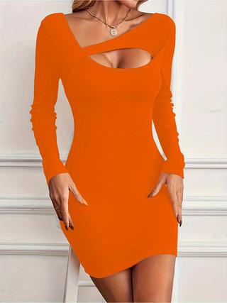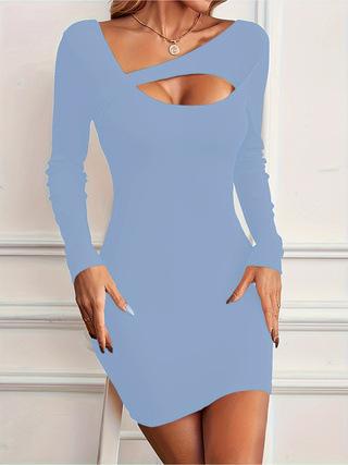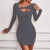 Amazon Europeo y Americano Transfronterizo Estilo Primavera, Verano y Otoño Sexy Hueco Cuello Asimétrico Falda de Cadera Vestido
