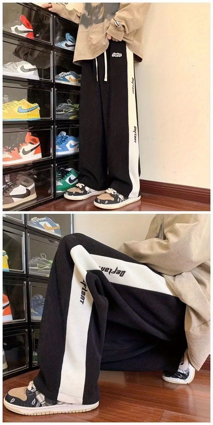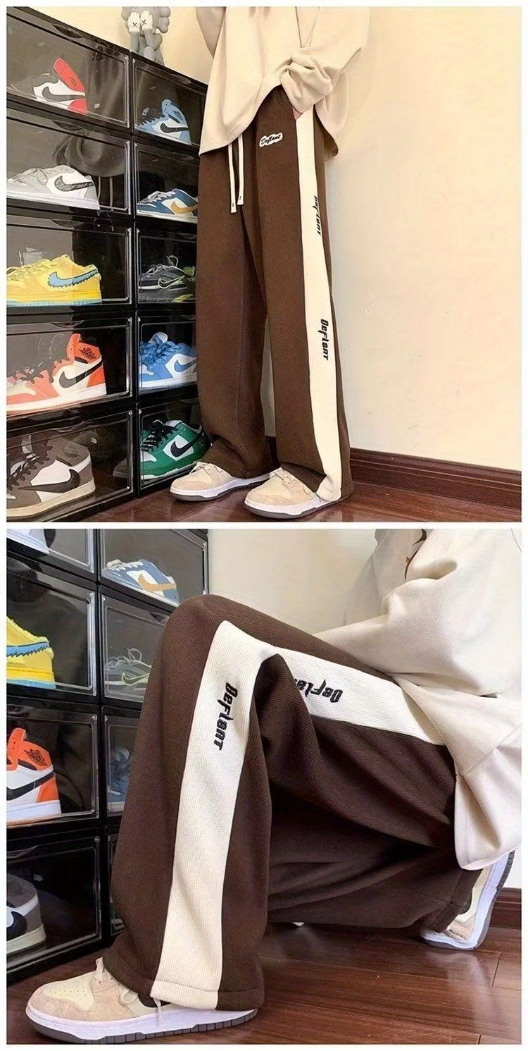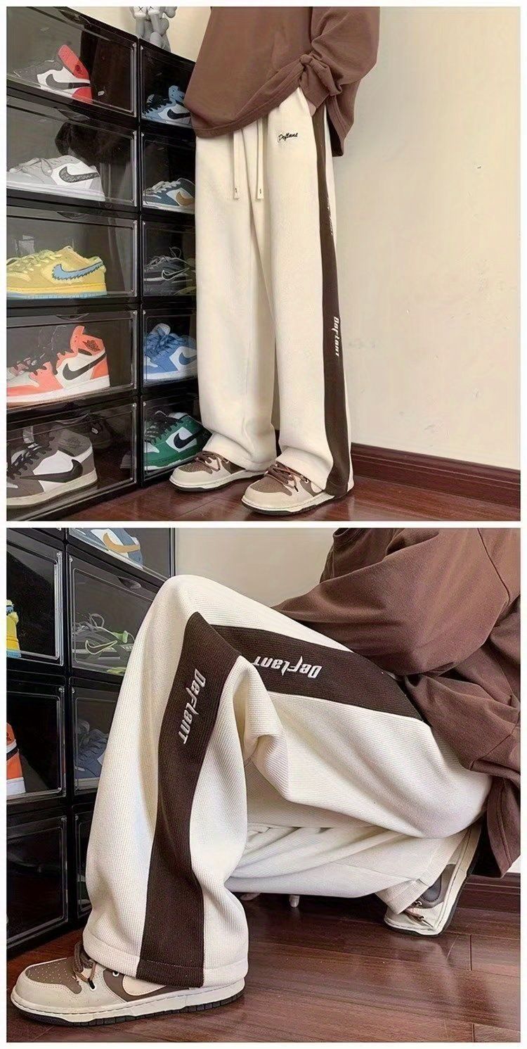 Pantalones Casuales Primavera y Verano Marca de Moda Americana High Street Pantalones Casuales Holgados Pantalones Rectos Pantalones Deportivos Pantalones de Estudiante Retro