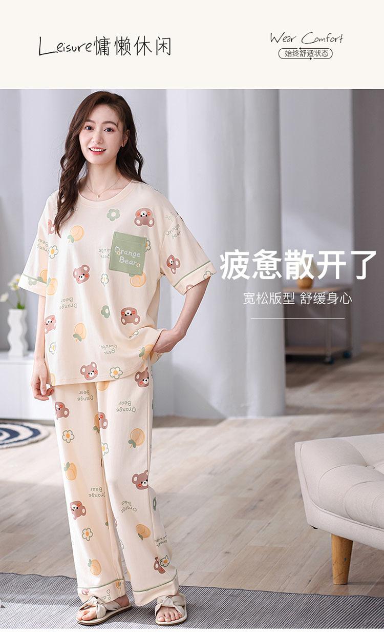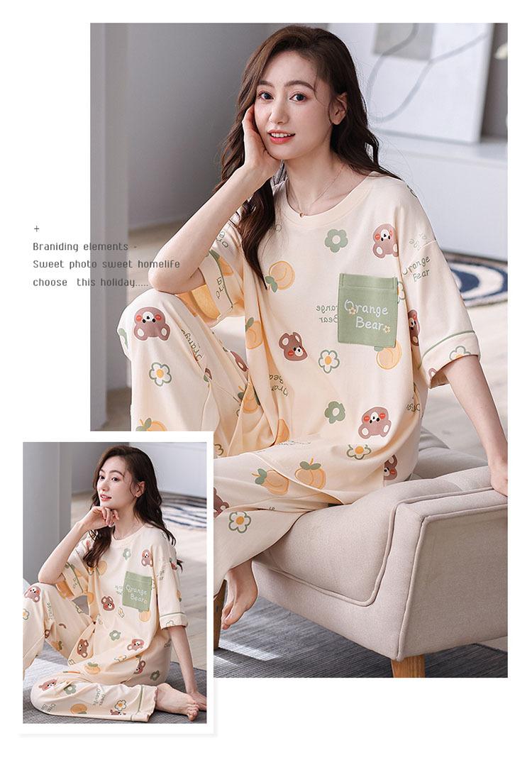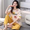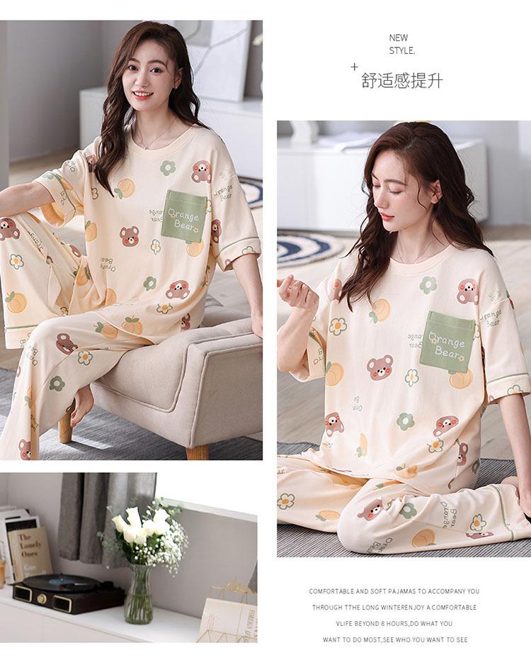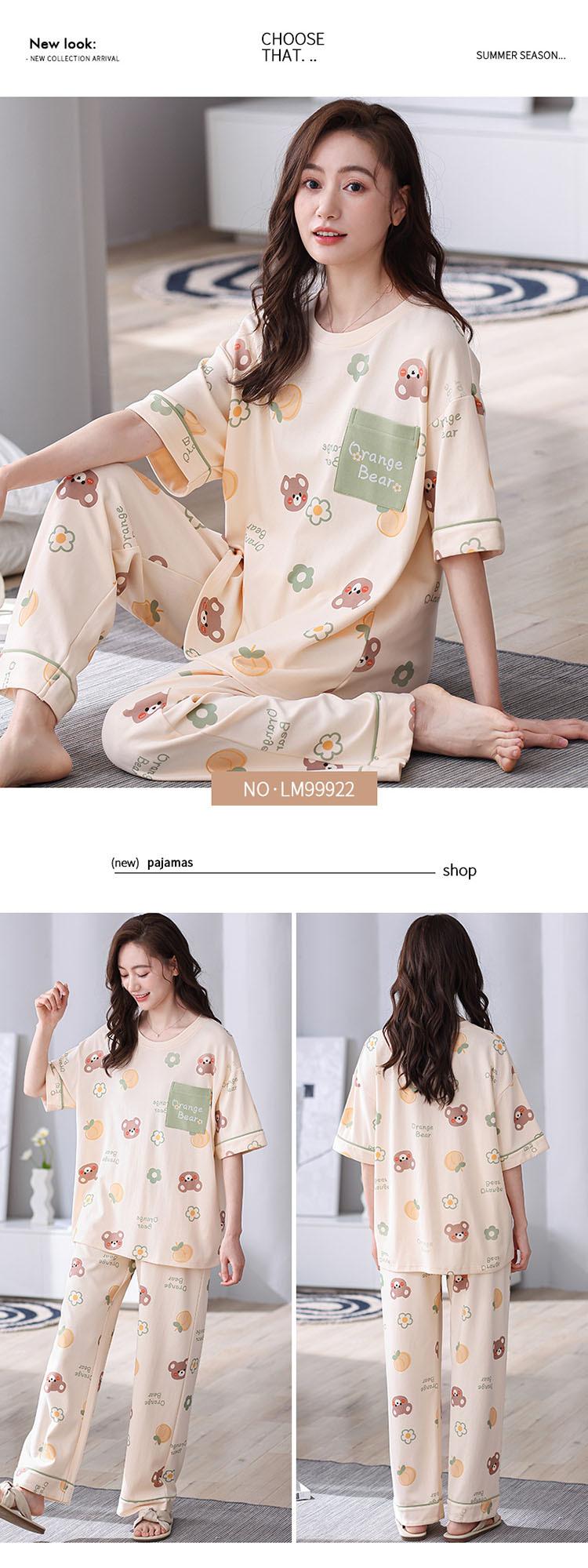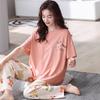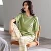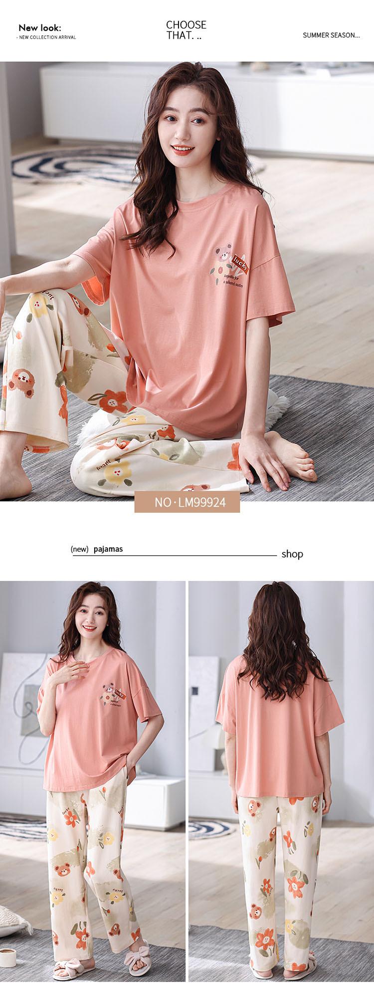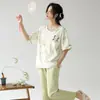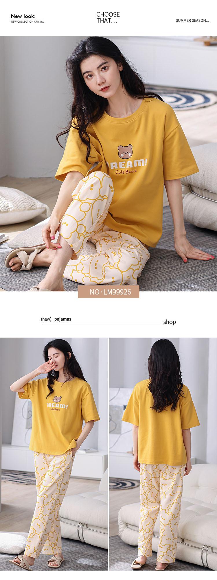 Pijama de algodón con dibujos animados para mujer, pantalones de manga corta, ropa informal holgada y fina para el hogar, conjunto de dos piezas de verano