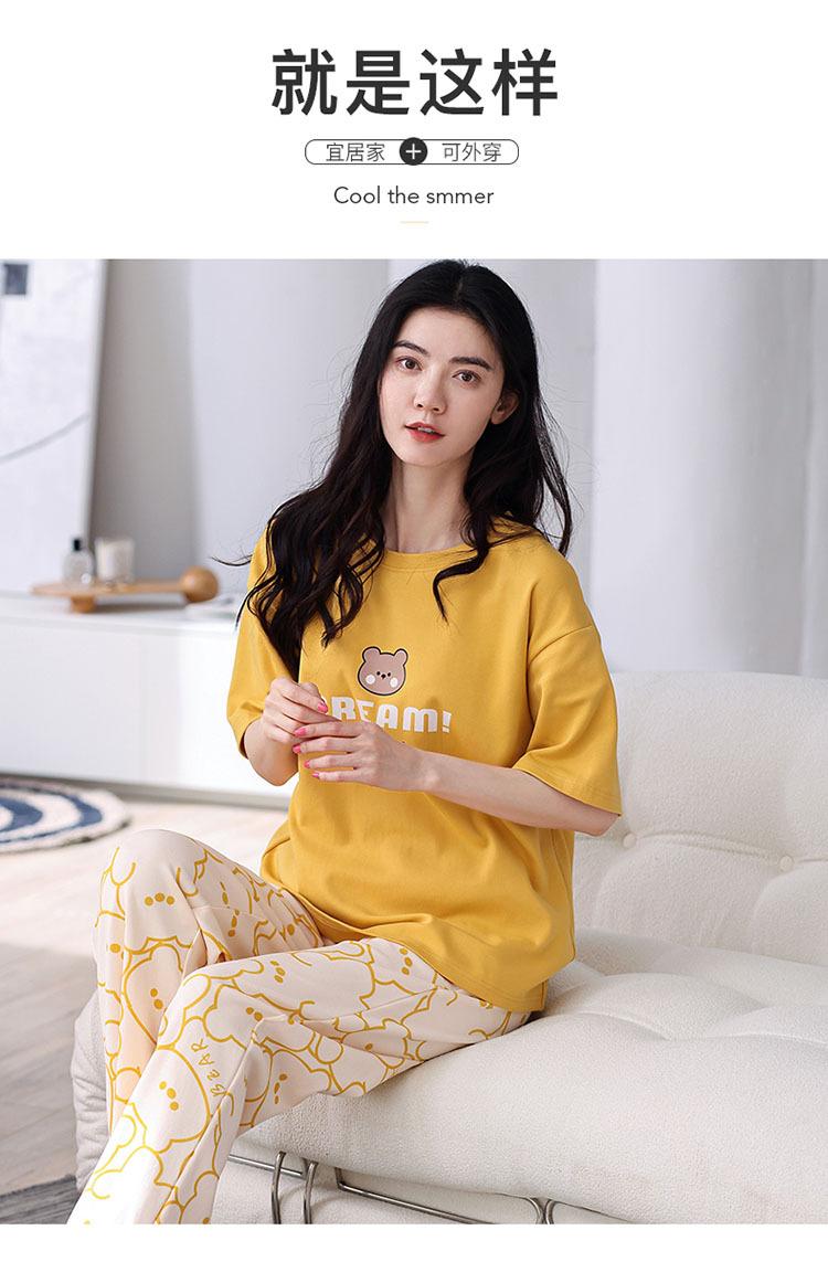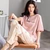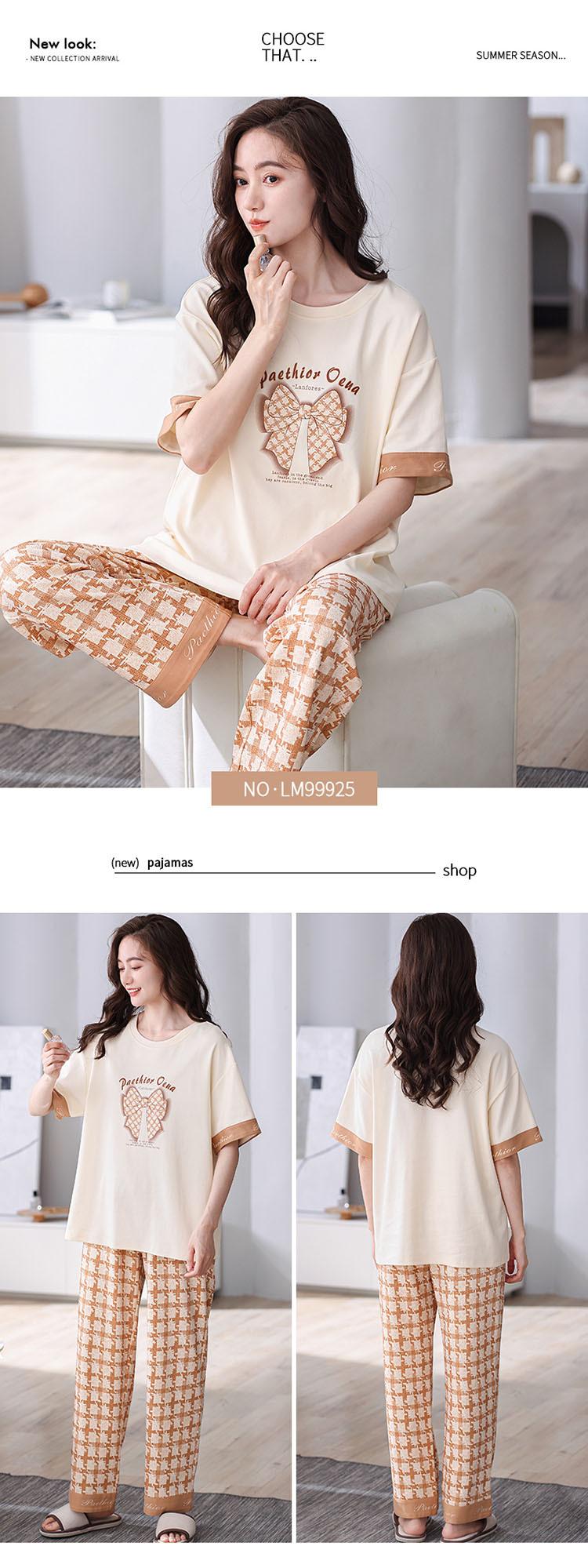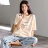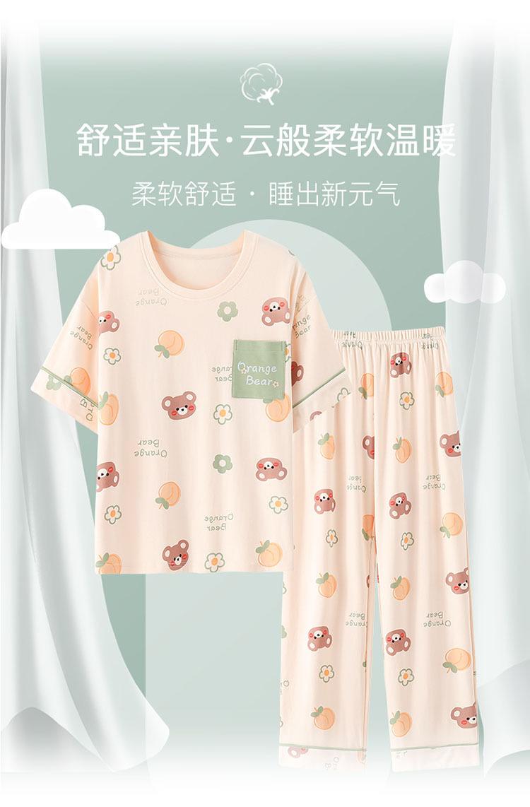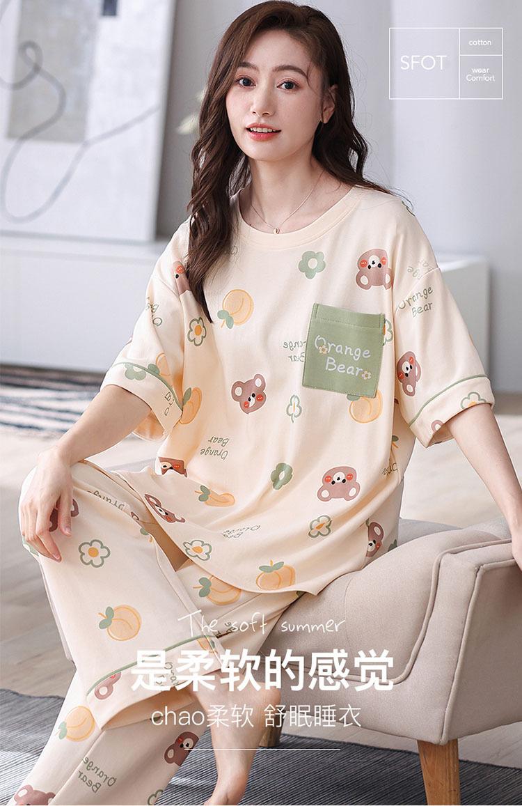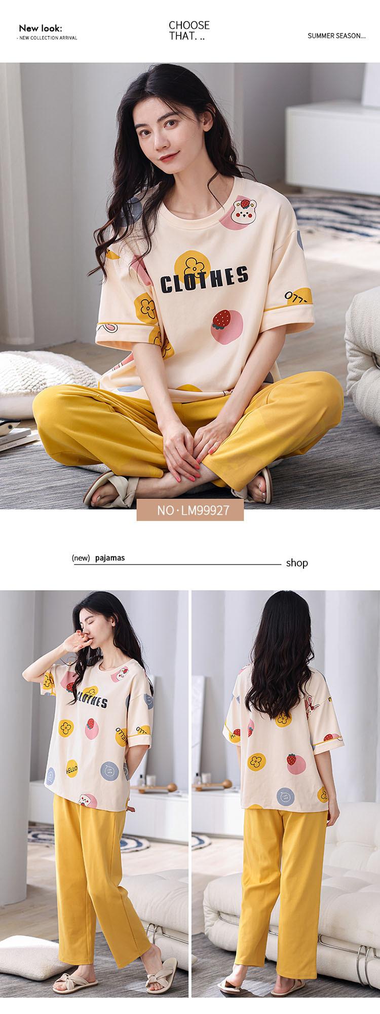 Pijama de algodón con dibujos animados para mujer, pantalones de manga corta, ropa informal holgada y fina para el hogar, conjunto de dos piezas de verano