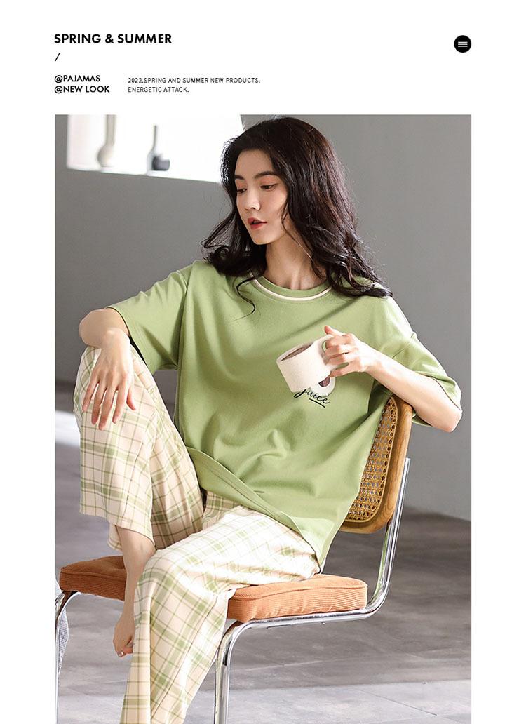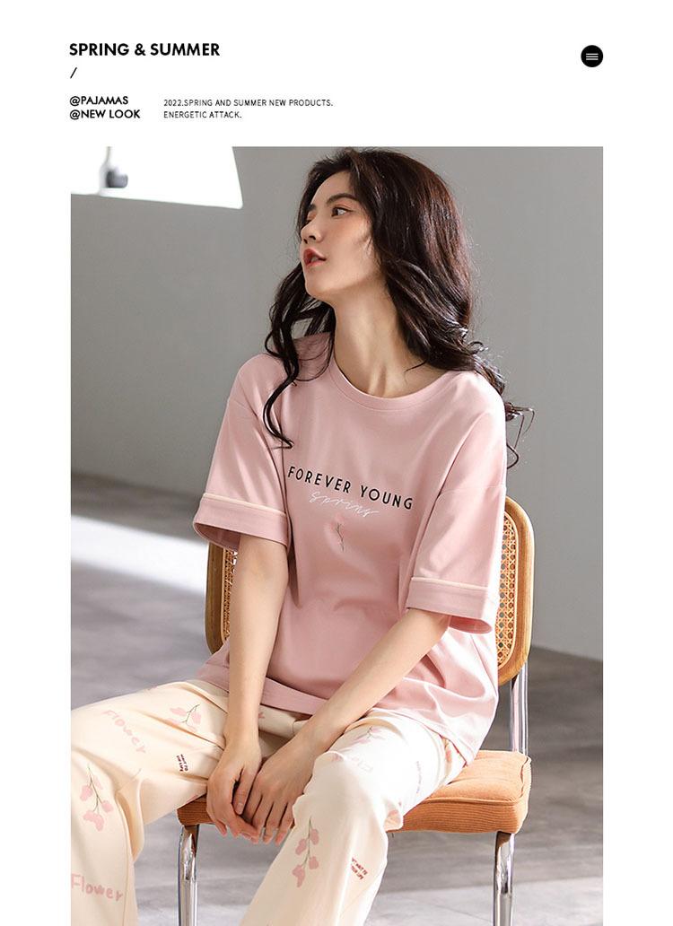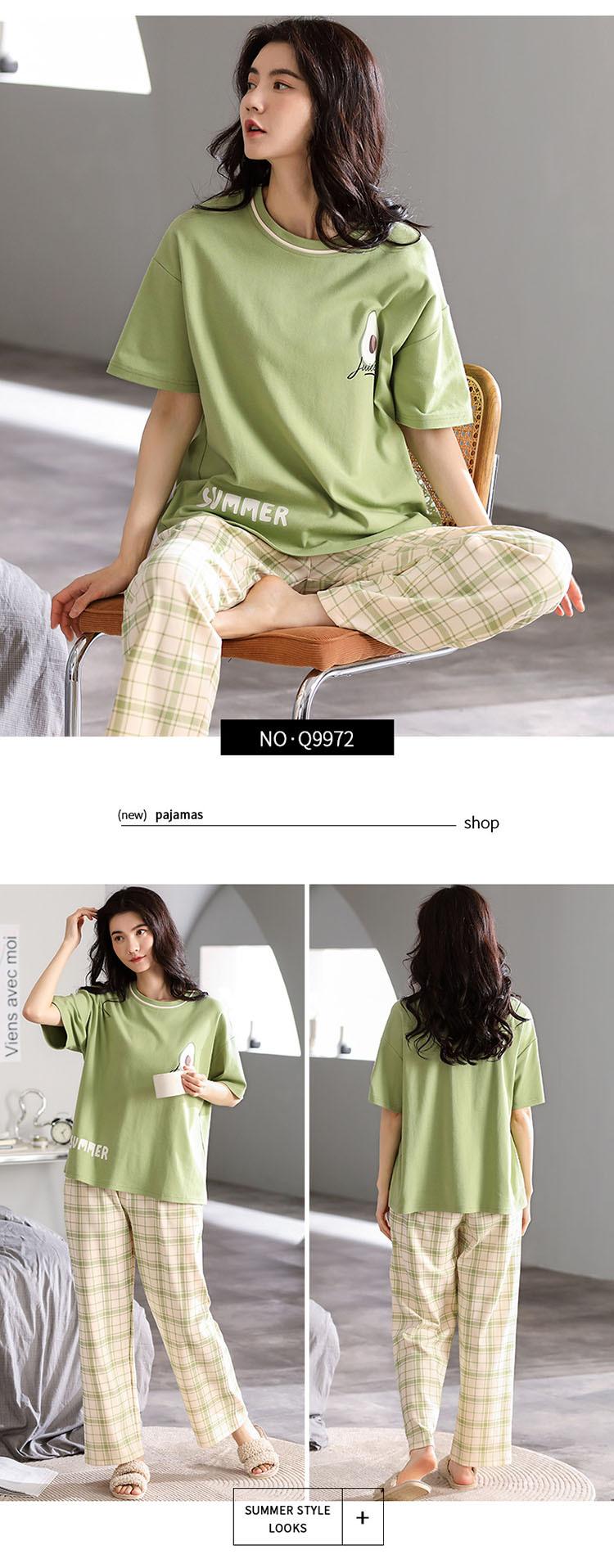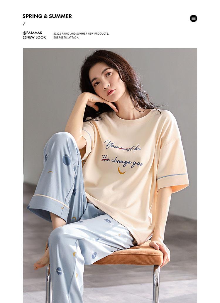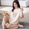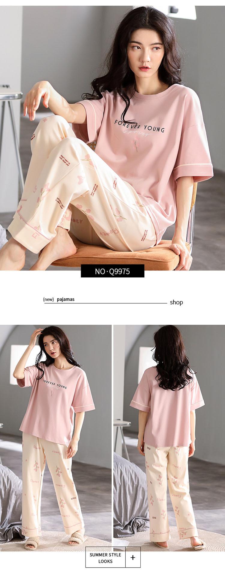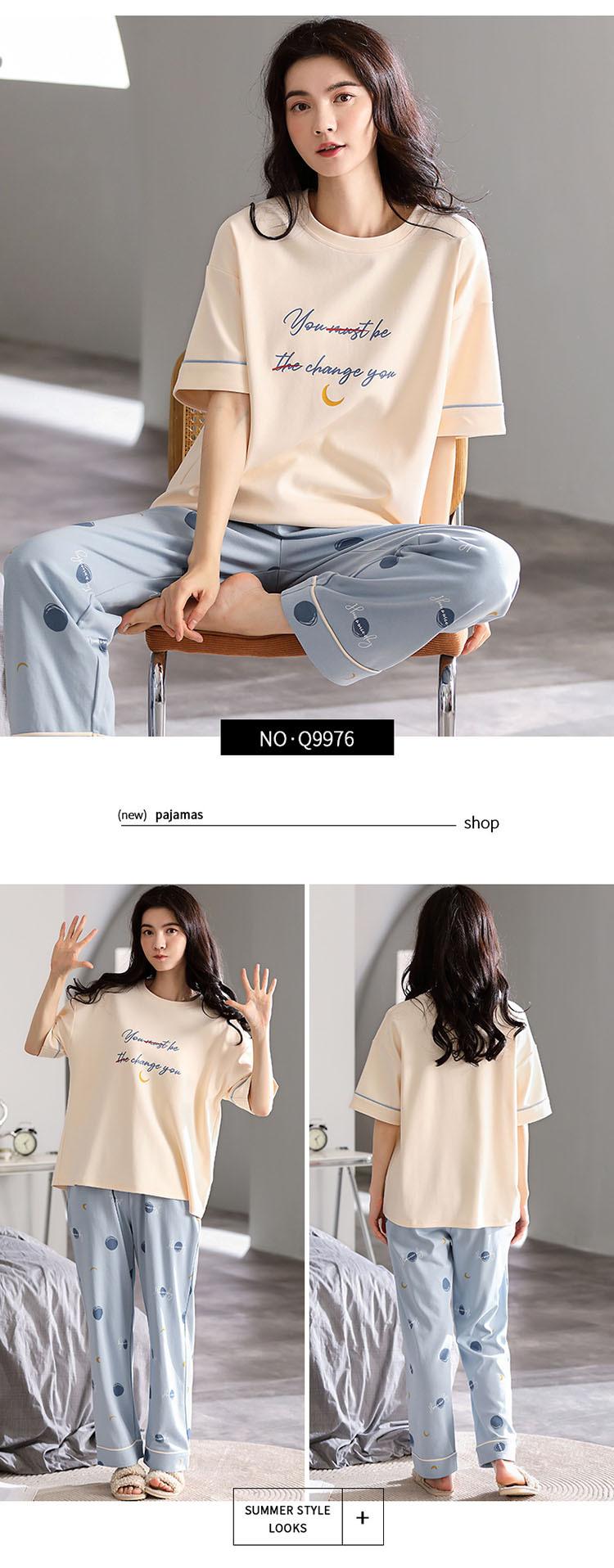 Pijama de algodón con dibujos animados para mujer, pantalones de manga corta, ropa informal holgada y fina para el hogar, conjunto de dos piezas de verano
