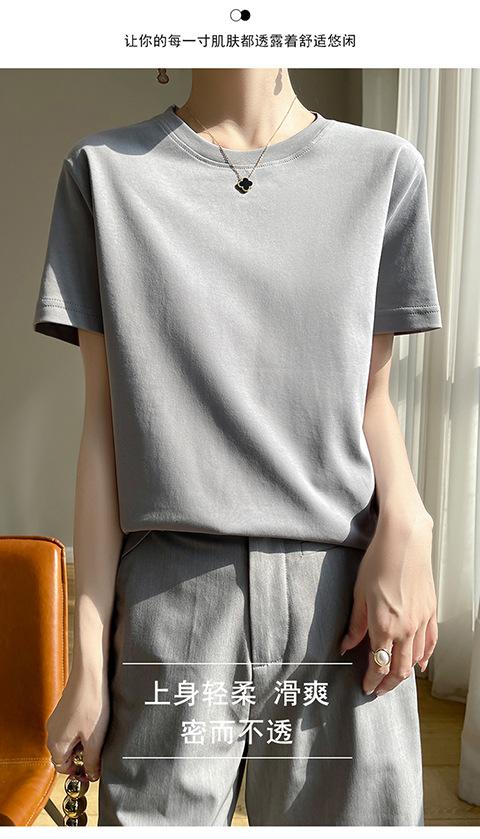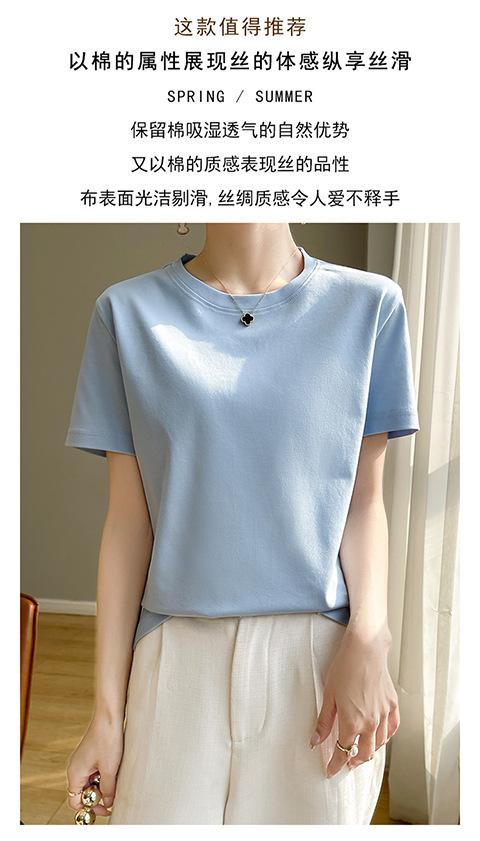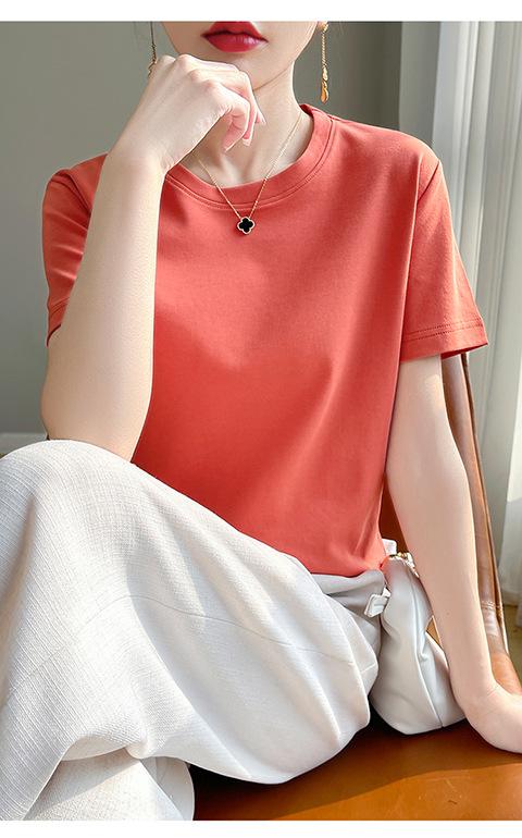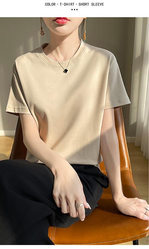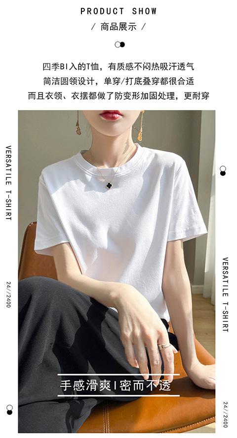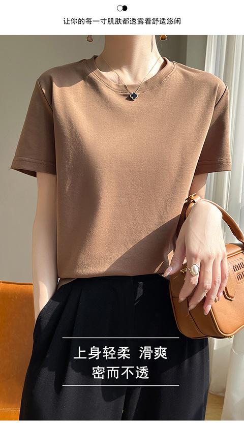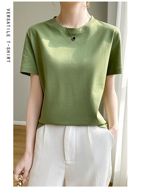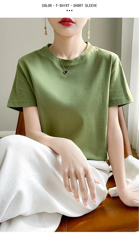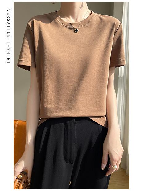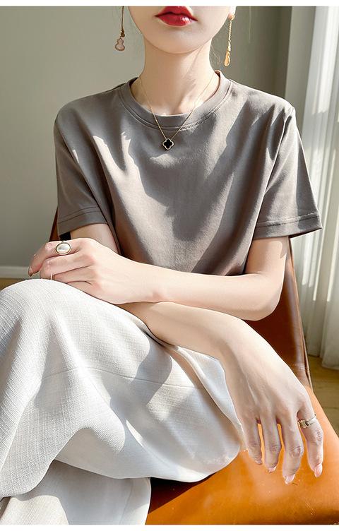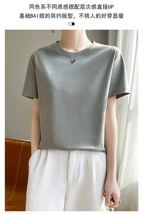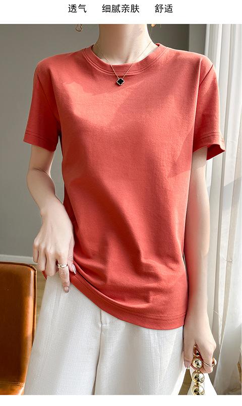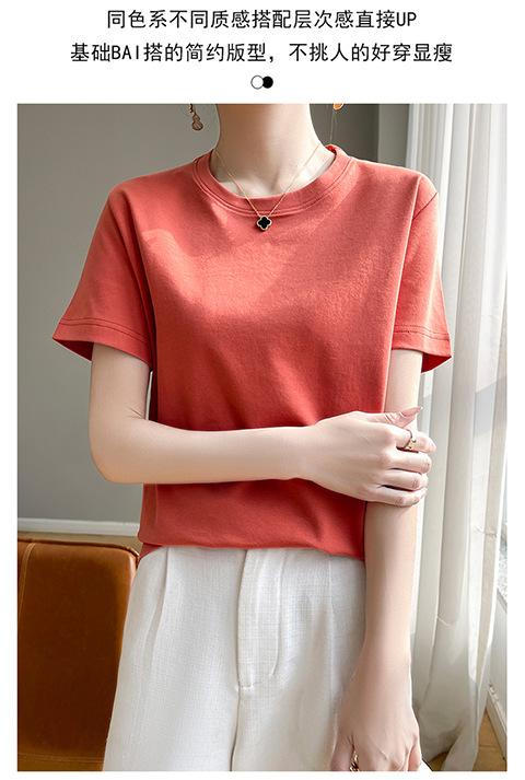 Camiseta de manga corta de algodón mercerizado para mujer, novedad de verano 2024, cuello redondo, camisa básica, suelta, ajustada, para uso exterior, top de media manga.