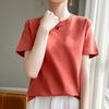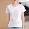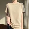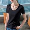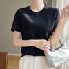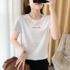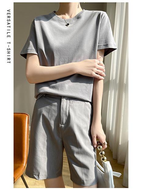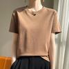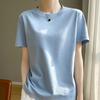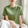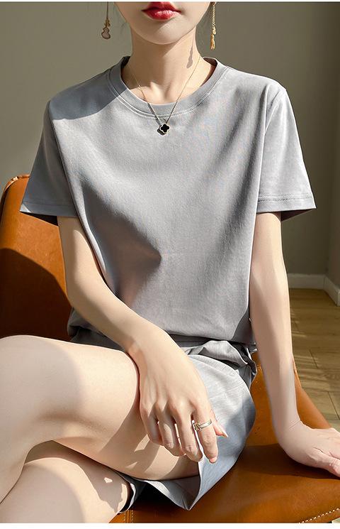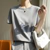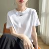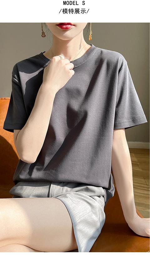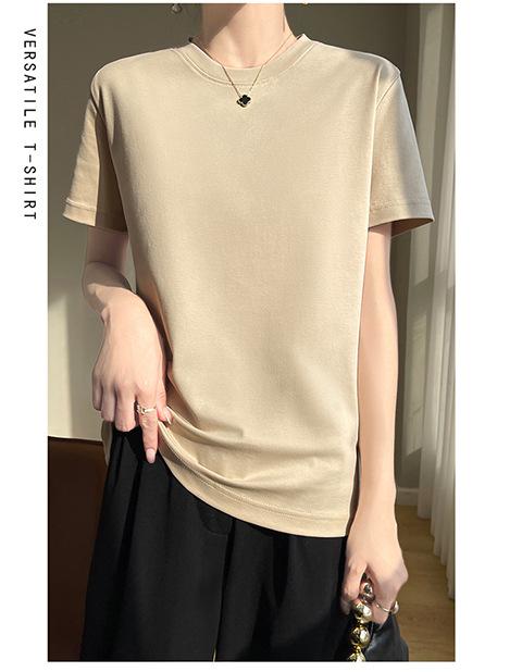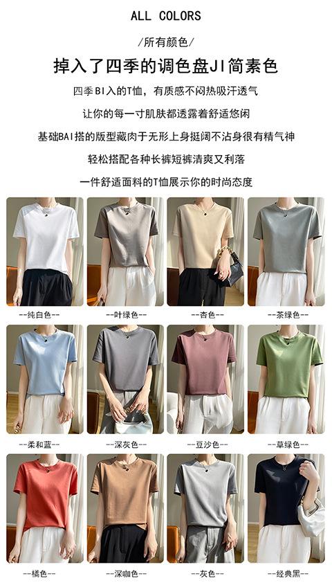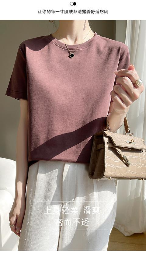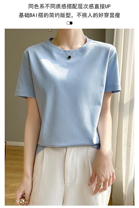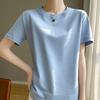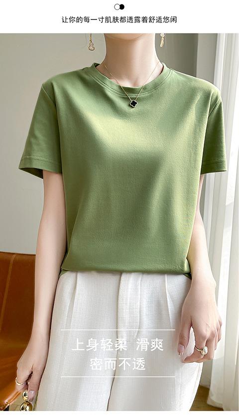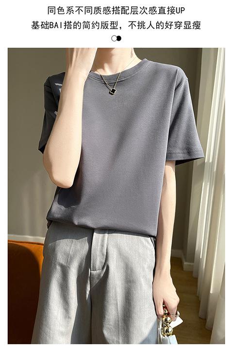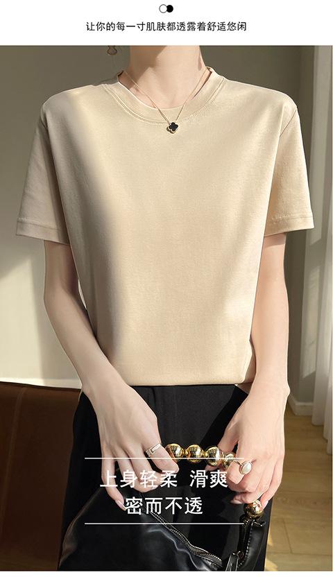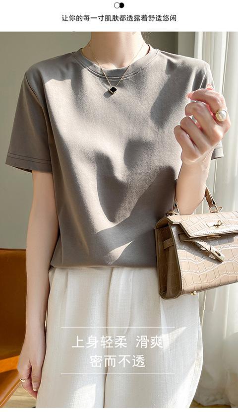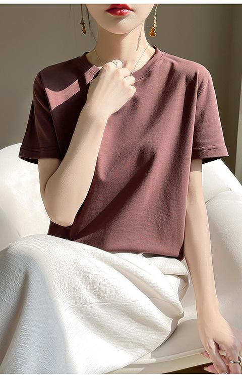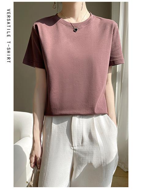Camiseta de manga corta de algodón mercerizado para mujer, novedad de verano 2024, cuello redondo, camisa básica, suelta, ajustada, para uso exterior, top de media manga.