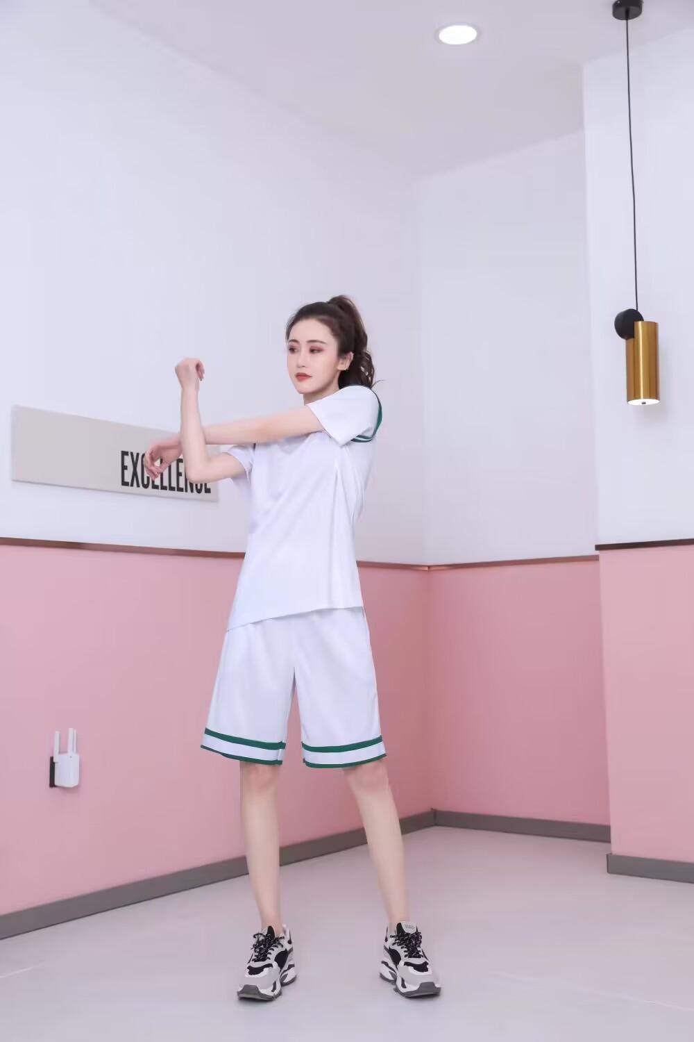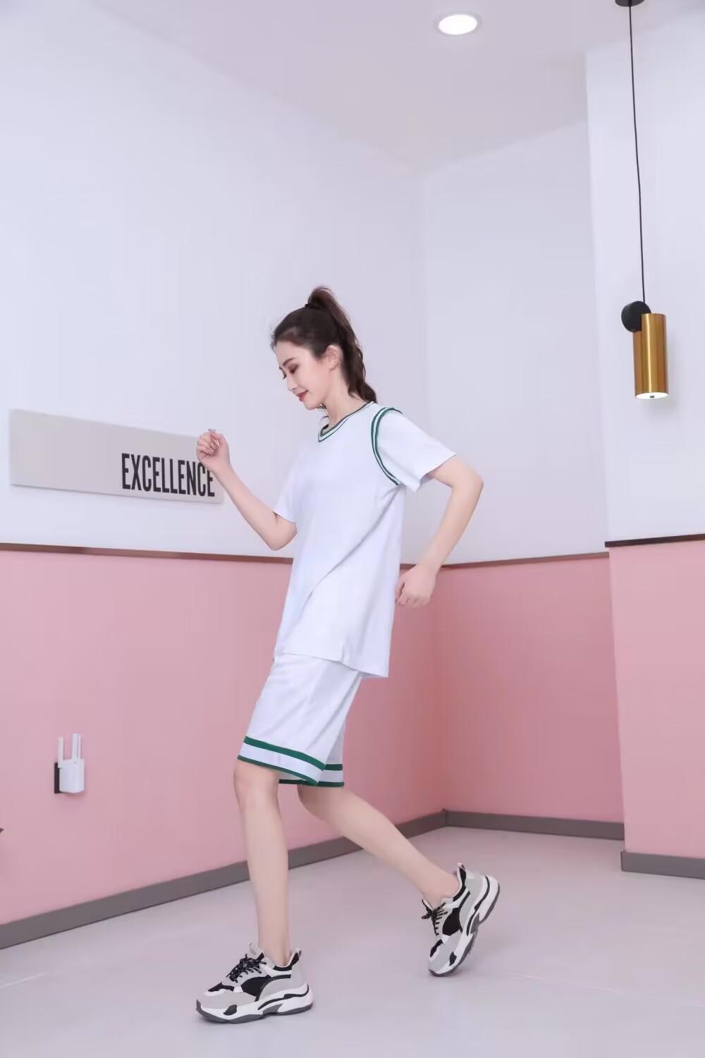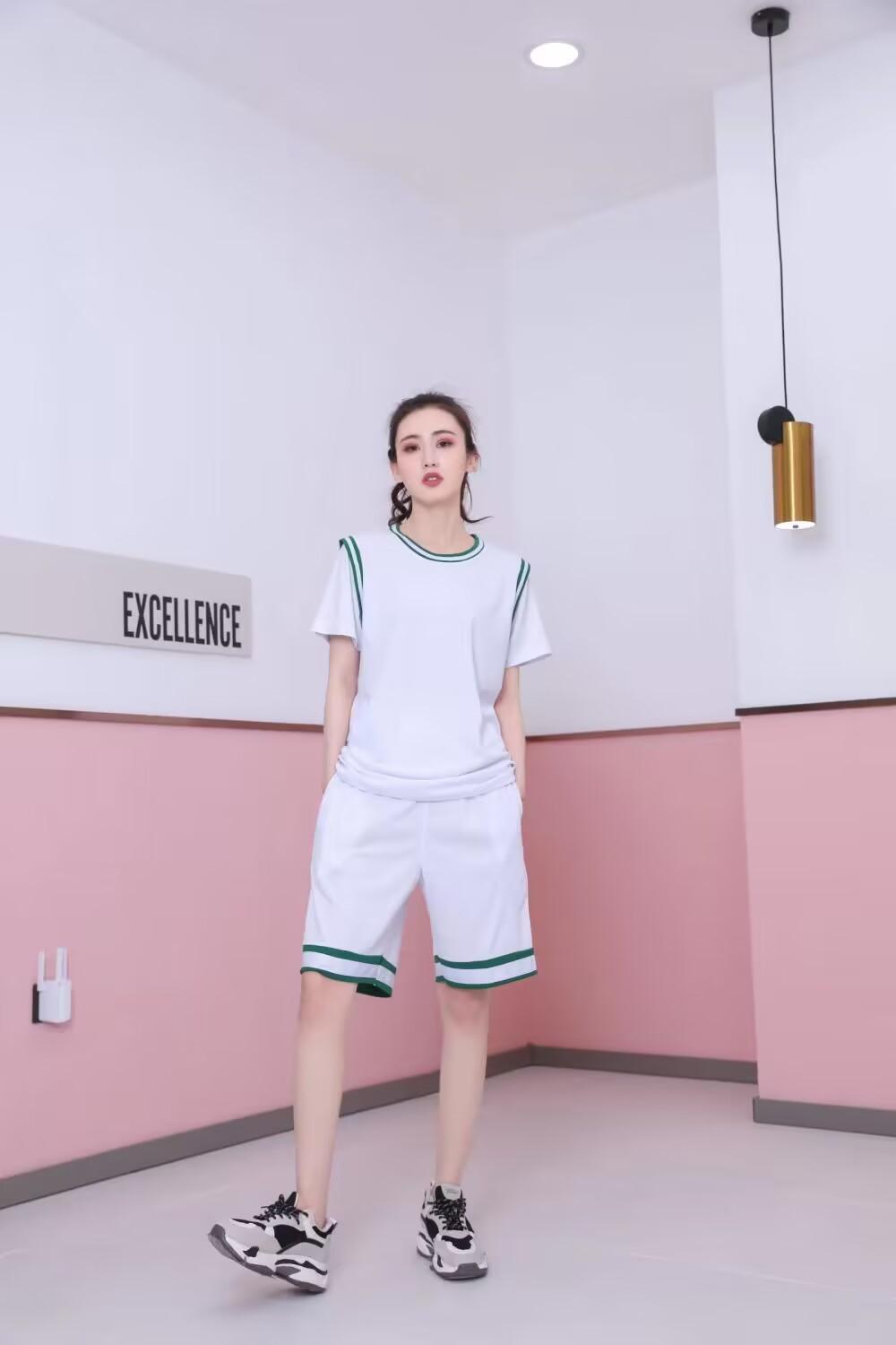 Lote directo de fábrica 2023 nuevo traje de baloncesto de media manga para mujer falso de dos piezas de verano impresión DIY traje de bola con forro