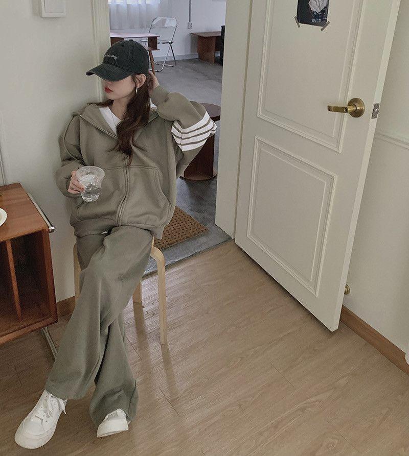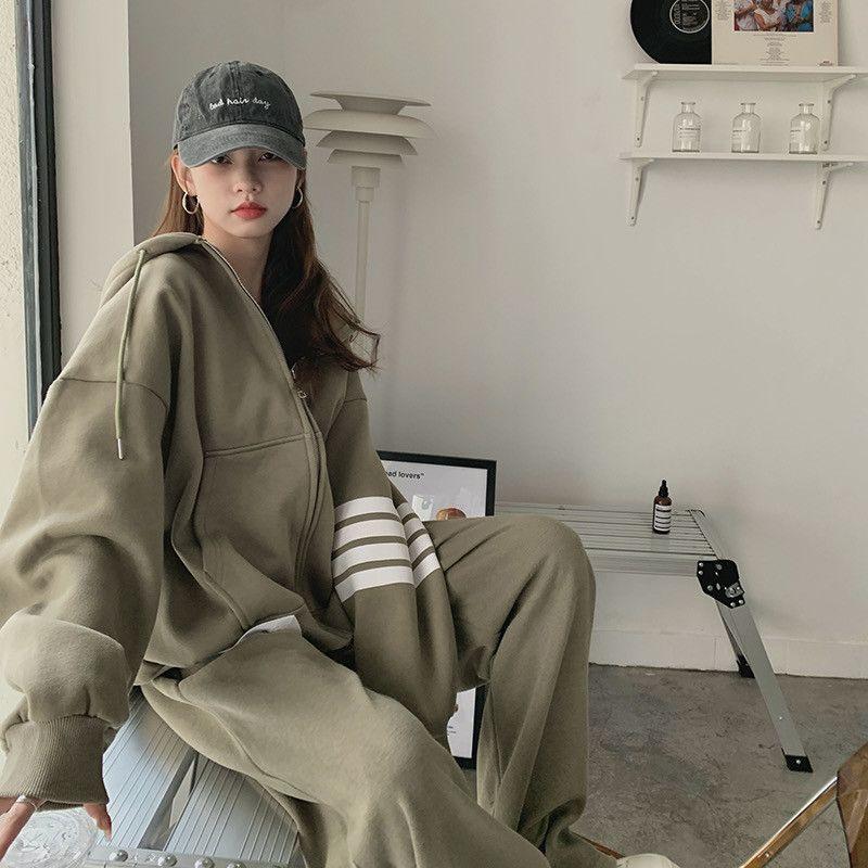 Traje Deportivo con Capucha Grueso para Mujer, Primavera, Otoño e Invierno, Estilo Coreano, Holgado, para Correr, Moda Casual, Conjunto de Sudadera de Dos Piezas para Estudiantes