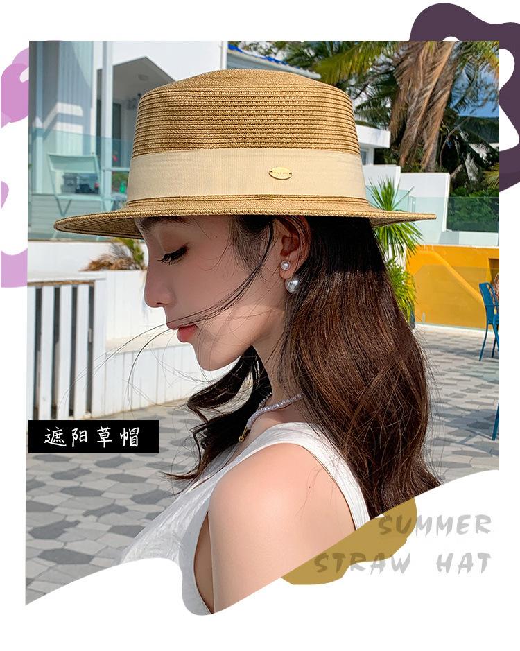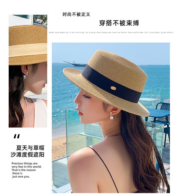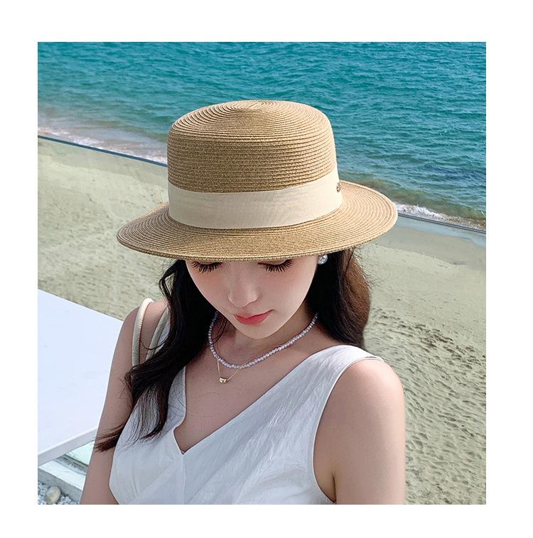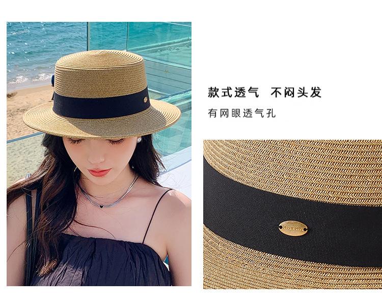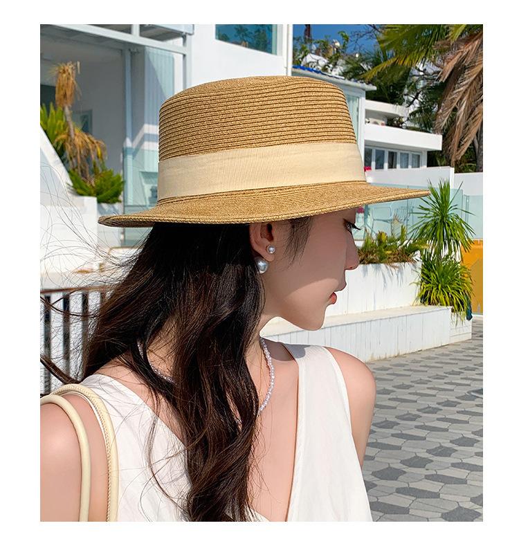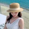 Nuevo sombrero de copa plana, protector solar de verano, sombrero para el sol, sombrero de playa para exteriores, sombrero de paja de papel tejido de moda estilo Hepburn