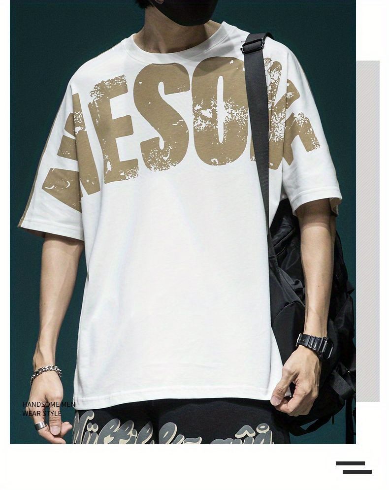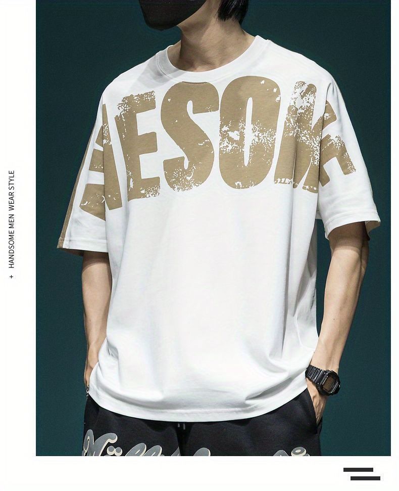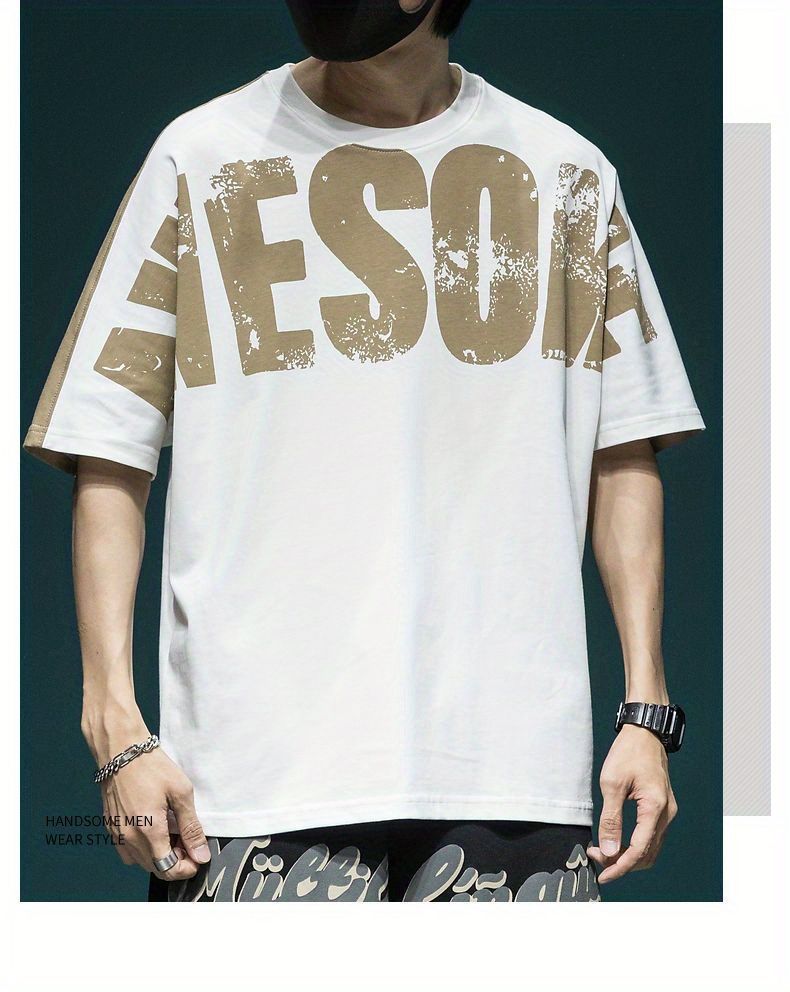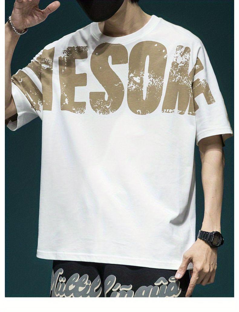 Camiseta de algodón de manga corta para hombre, novedad de verano 2024, juvenil, con cuello redondo y estampado de letras, moderna camiseta de media manga.