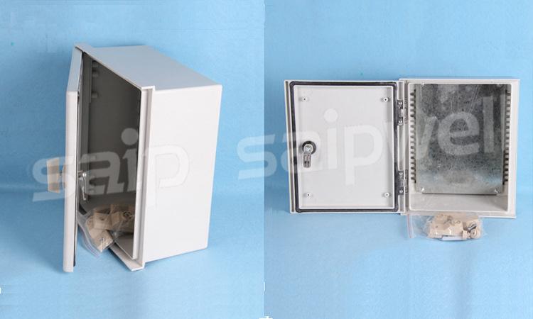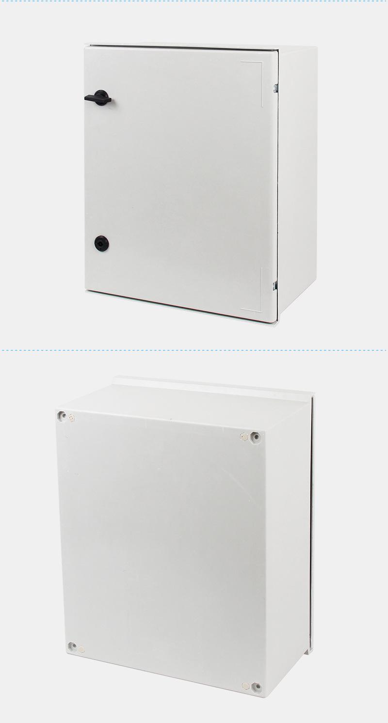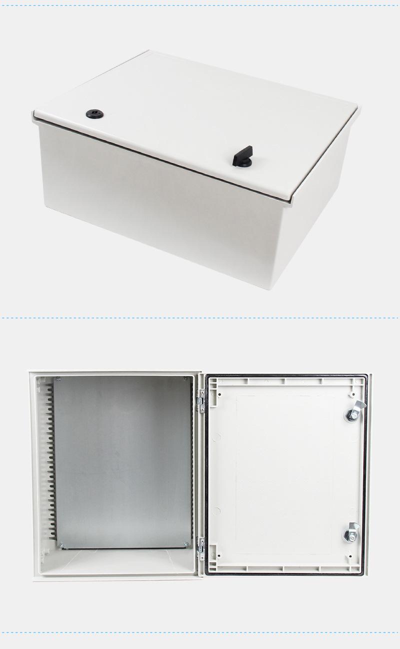 Caja de fibra de vidrio SMC con puerta central (tapa gris) (con placa inferior metálica) | Caja de fibra de vidrio SMC con puerta central (cubierta transparente) (con placa inferior metálica) | ||