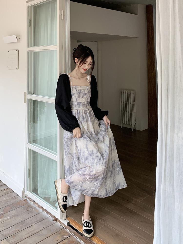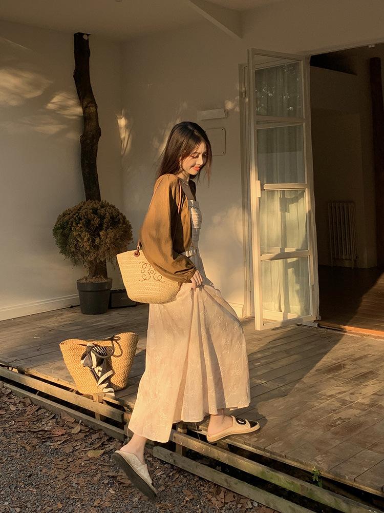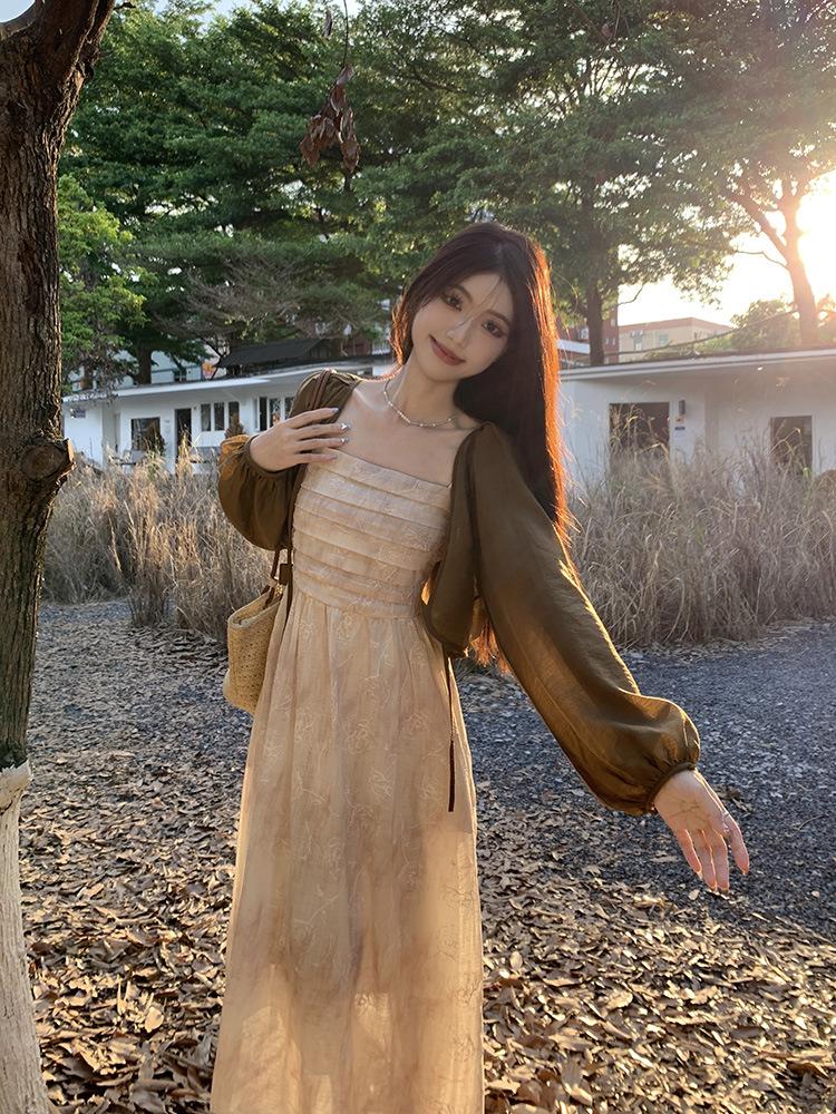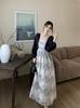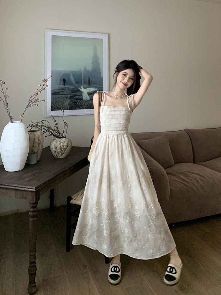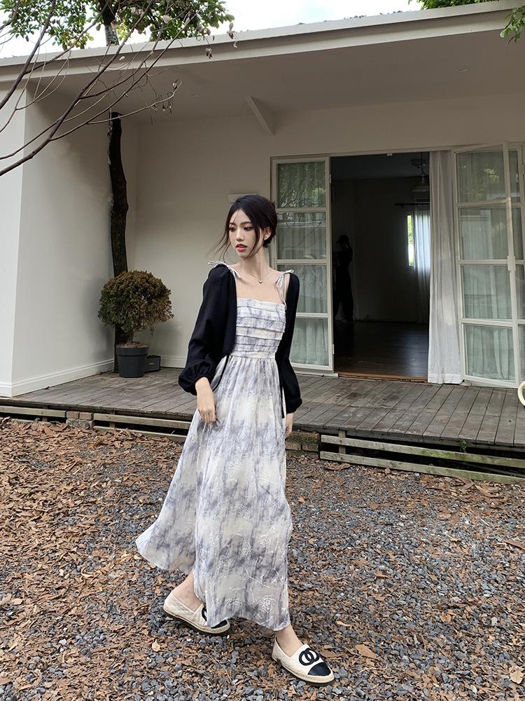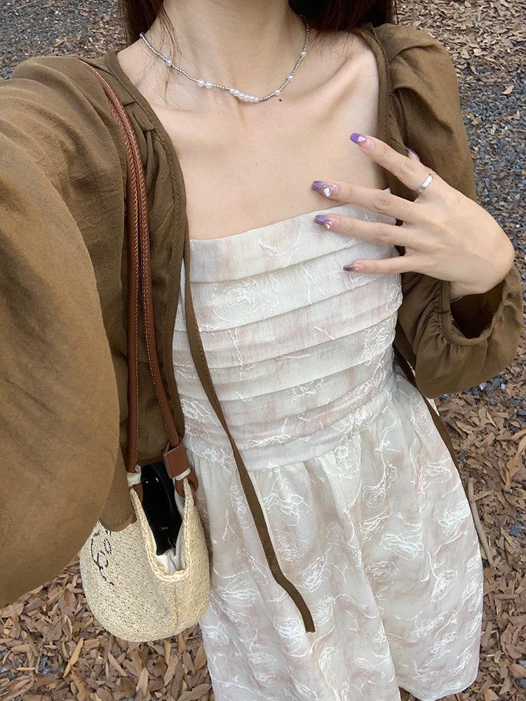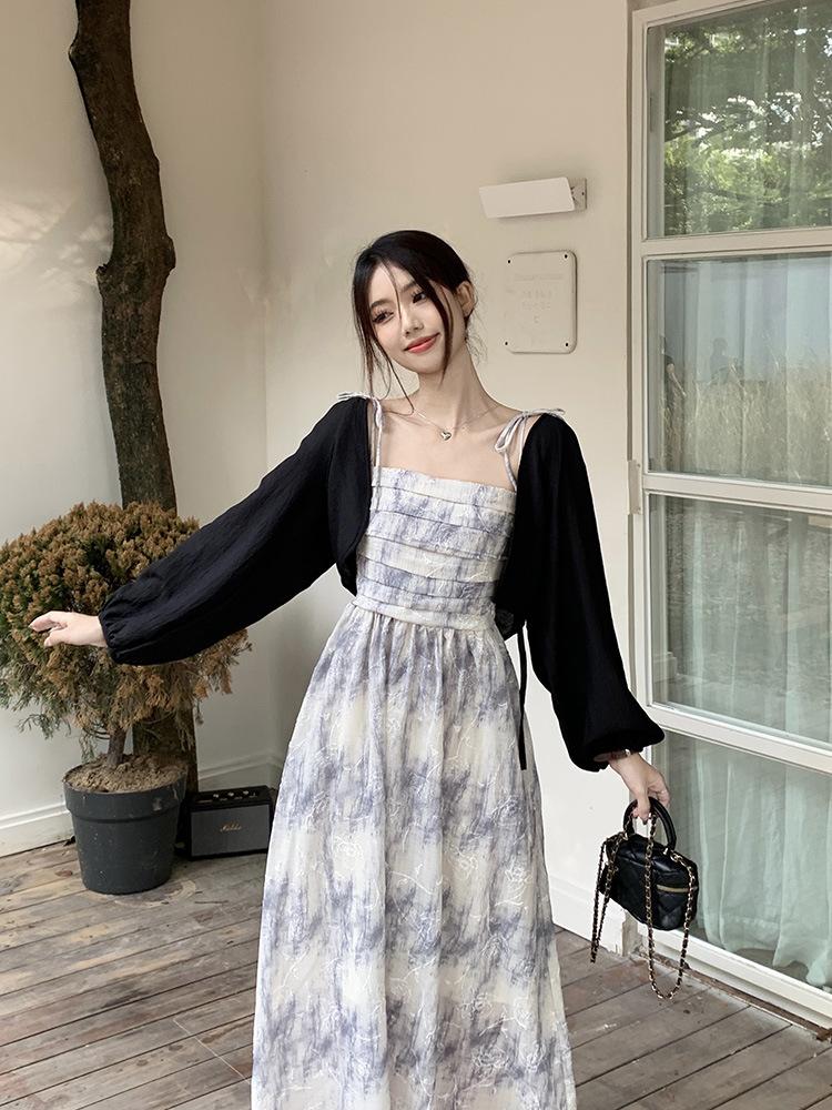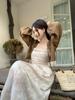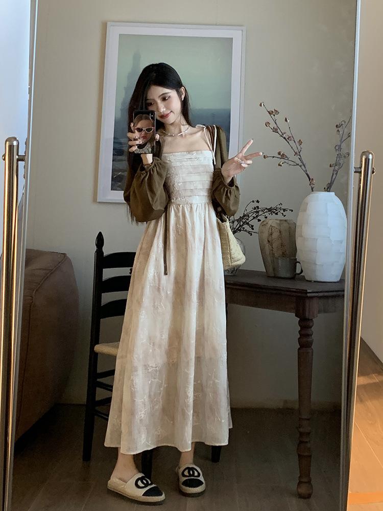 Vestido de Tirantes de Encaje con Flor Crochet para Mujer Talla Grande Estilo Francés Estilo Suave Set de Cárdigan Protector Solar para Mujer