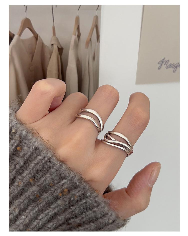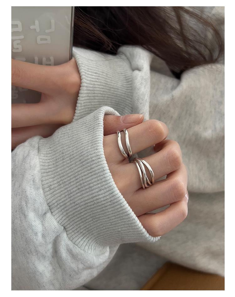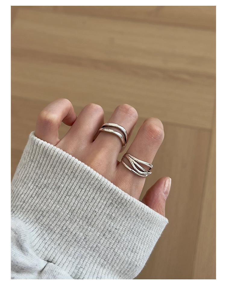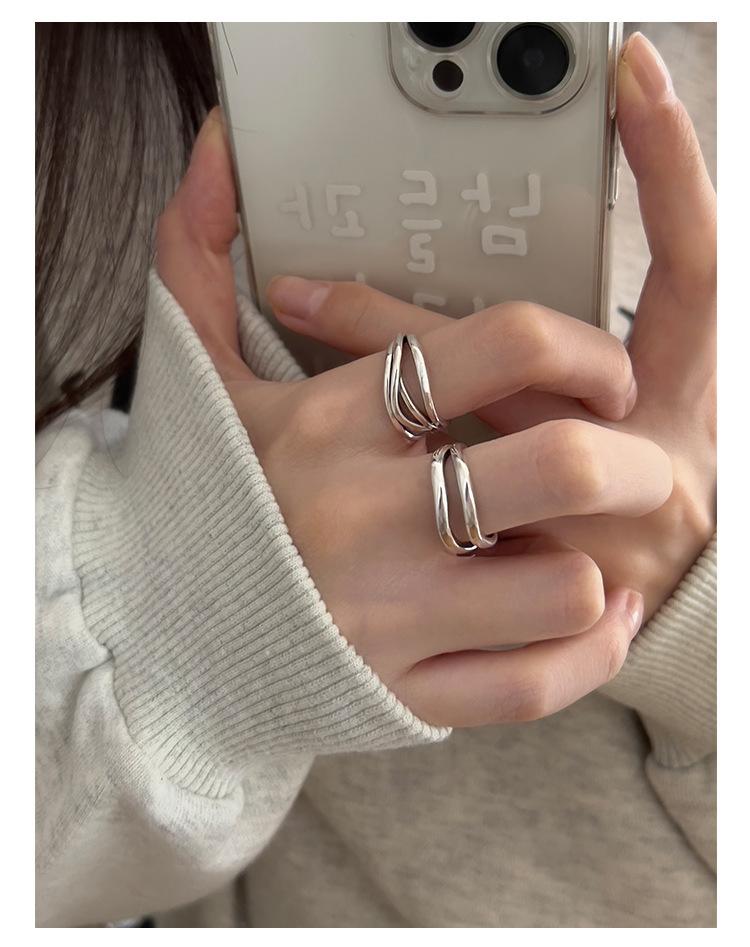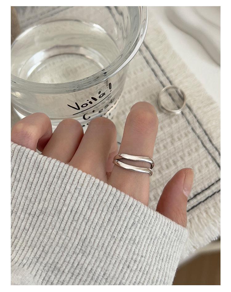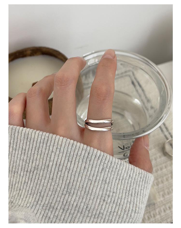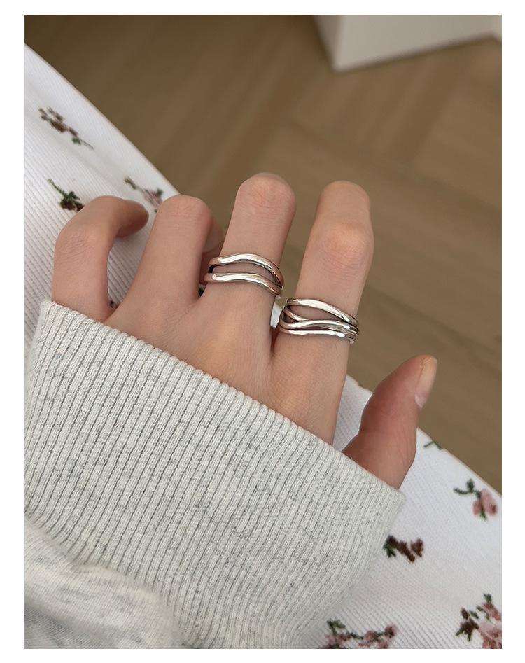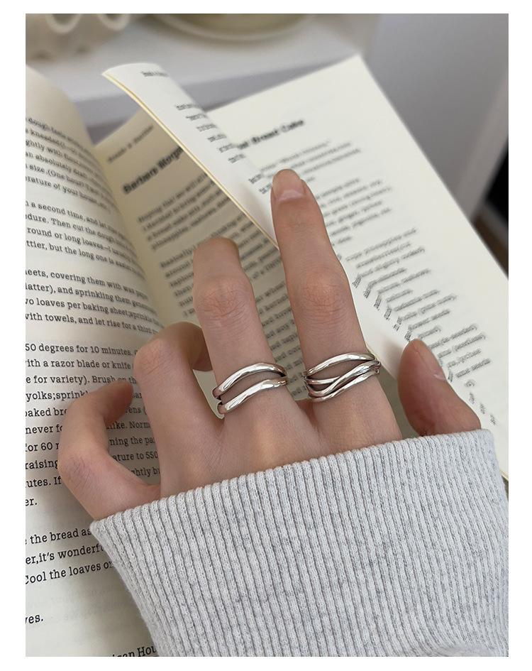 Anillo de línea simple de doble capa con personalidad de moda femenina, onda irregular, anillo abierto de plata S925, anillo de dedo índice apilado