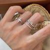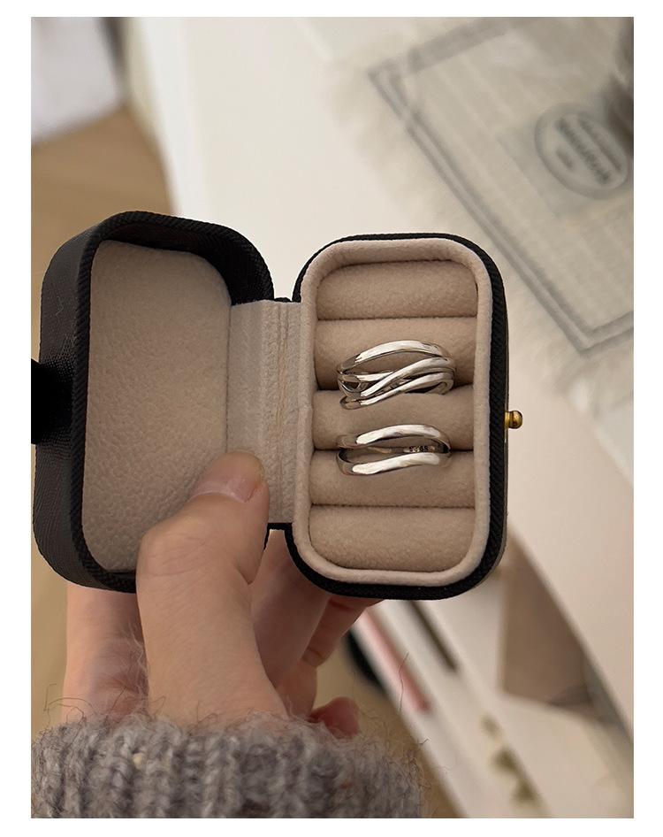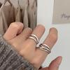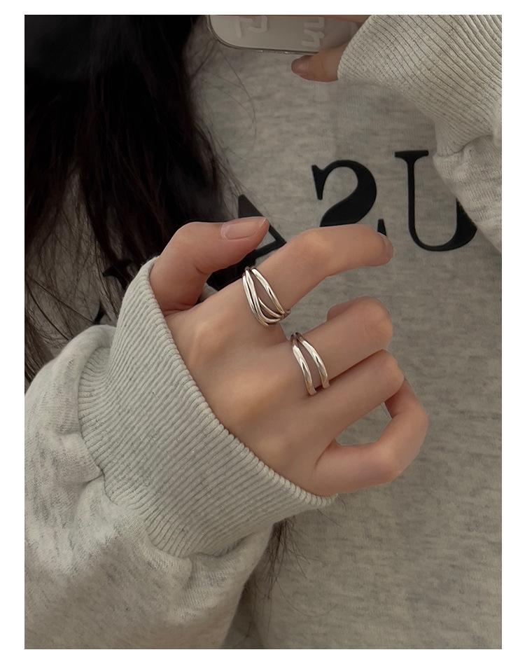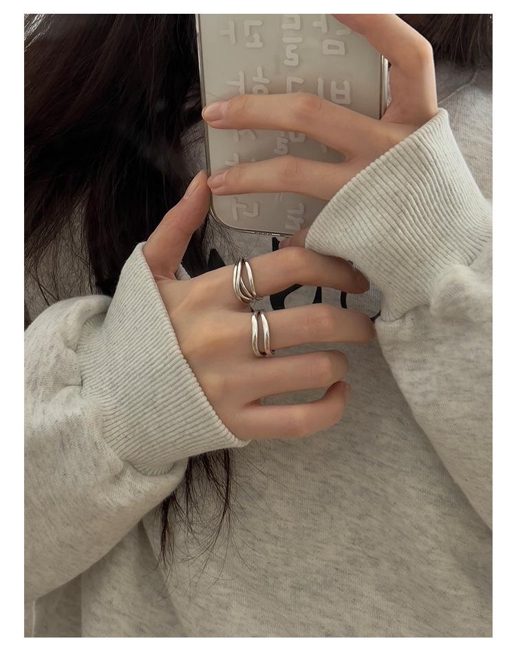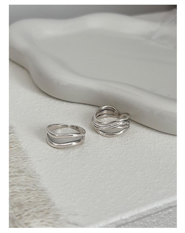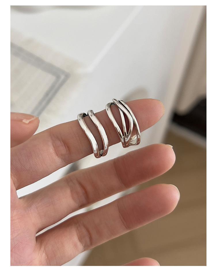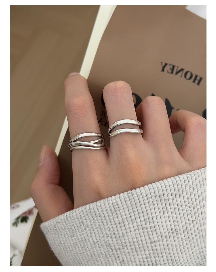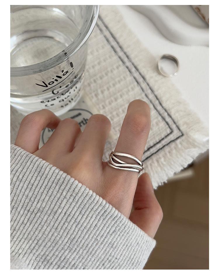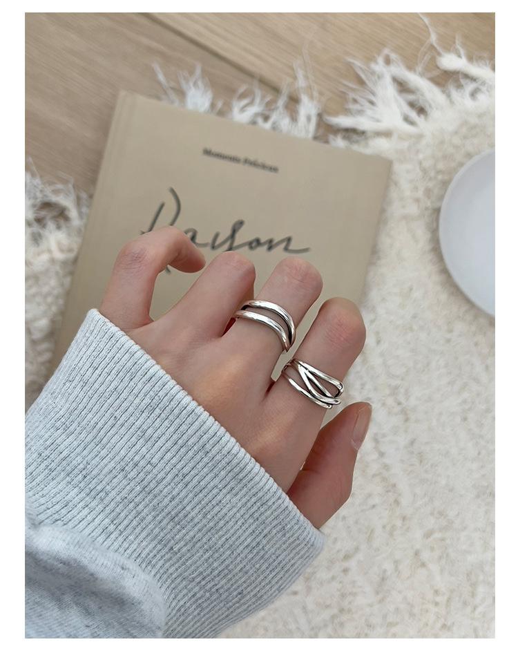 Anillo de línea simple de doble capa con personalidad de moda femenina, onda irregular, anillo abierto de plata S925, anillo de dedo índice apilado