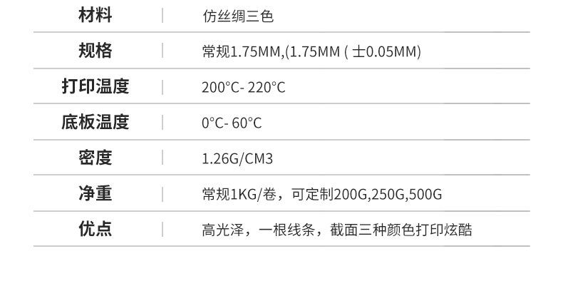 Filamento para Impresión 3D Pinrui Seda PLA 1.75mm Filamento Bicolor Tricolor Filamento para Impresión 3D