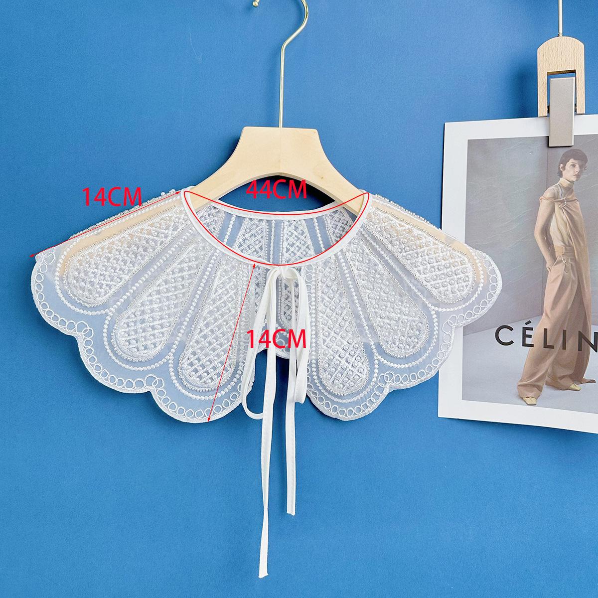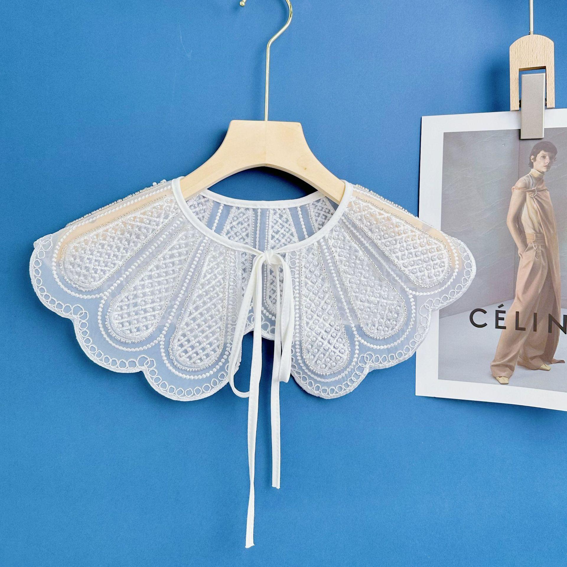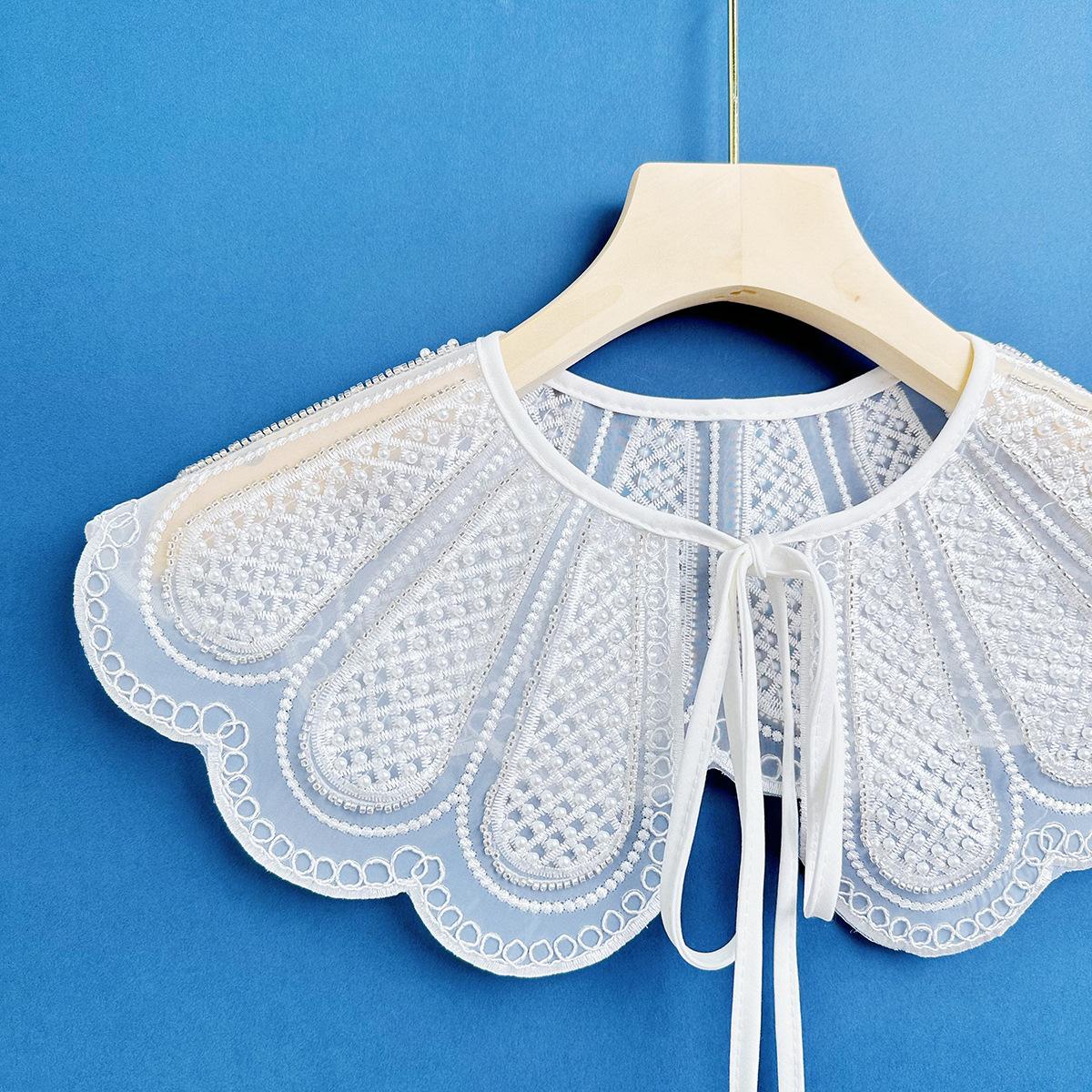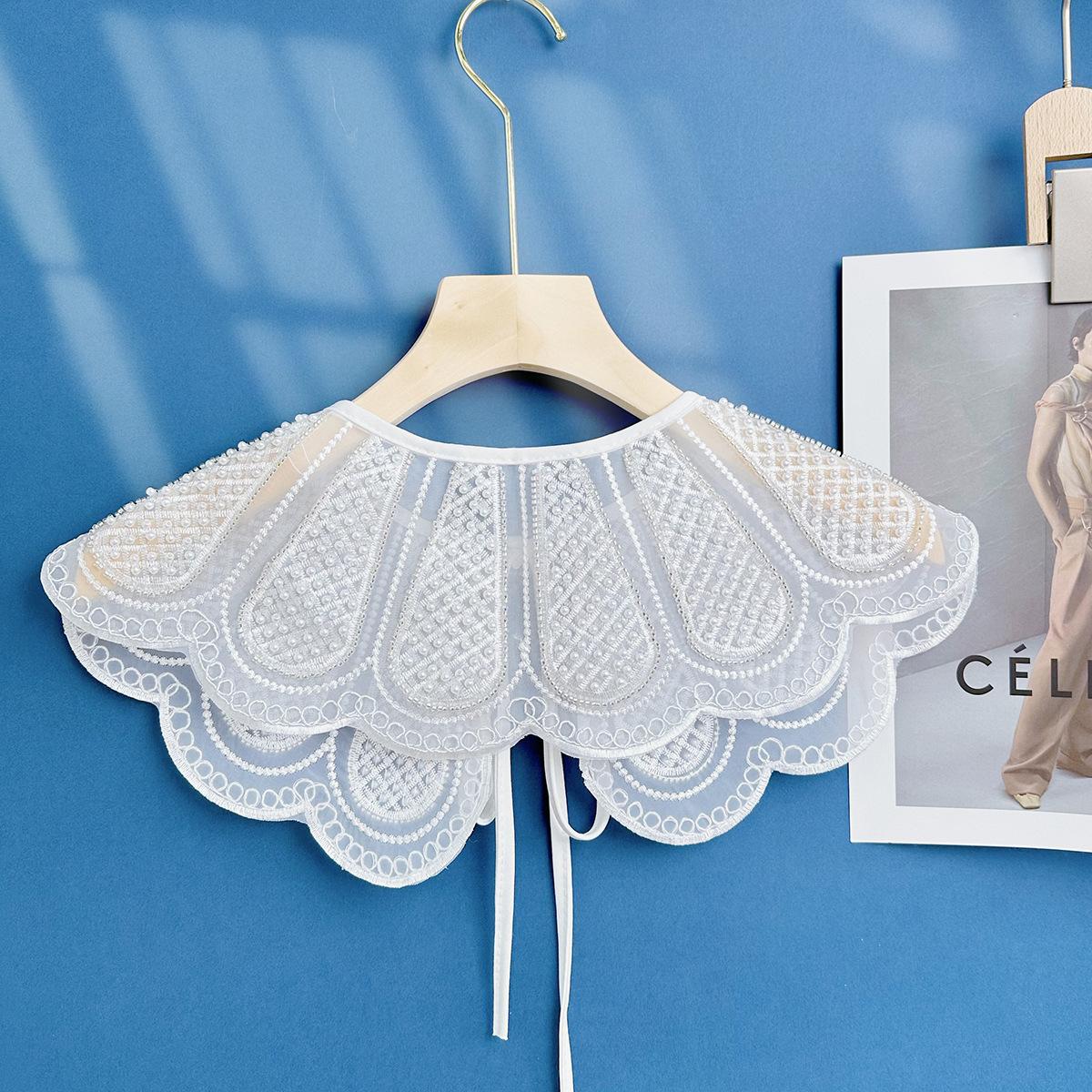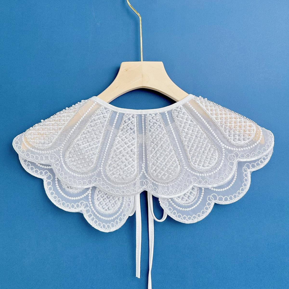 2023 Organza Blanco Bordado Cuentas de Arroz Estéreo Bordado Cuello Falso Chal Versátil para Mujer Directo de Fábrica Lazo