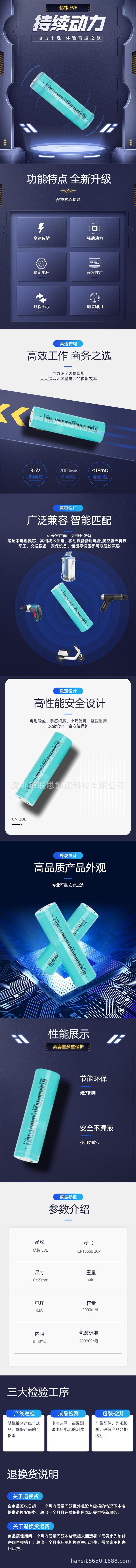 Batería de Litio Eve Yiwei 18650 20P 3.6V Celdas de Potencia de Cabeza Plana 2000mAh Gran Capacidad Carga