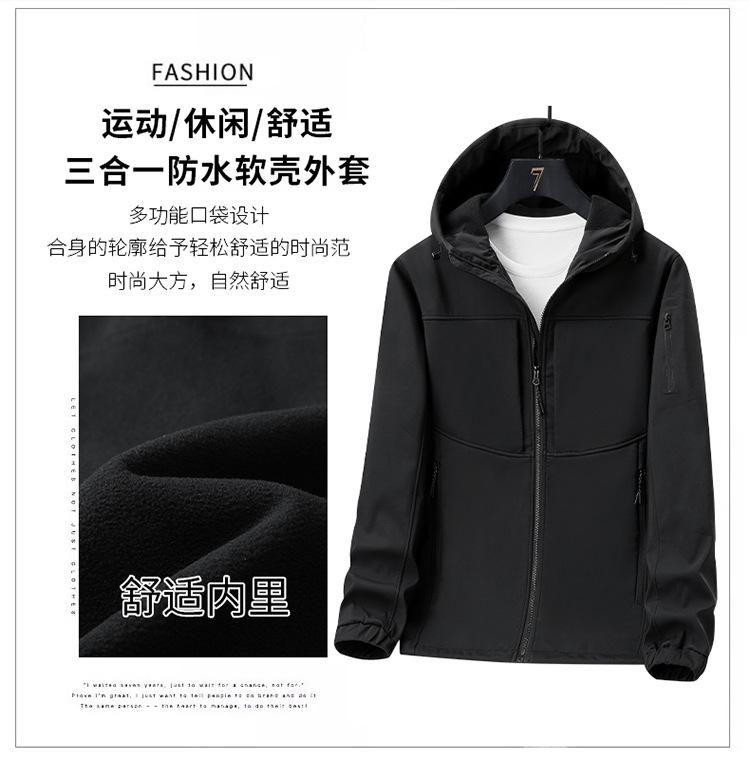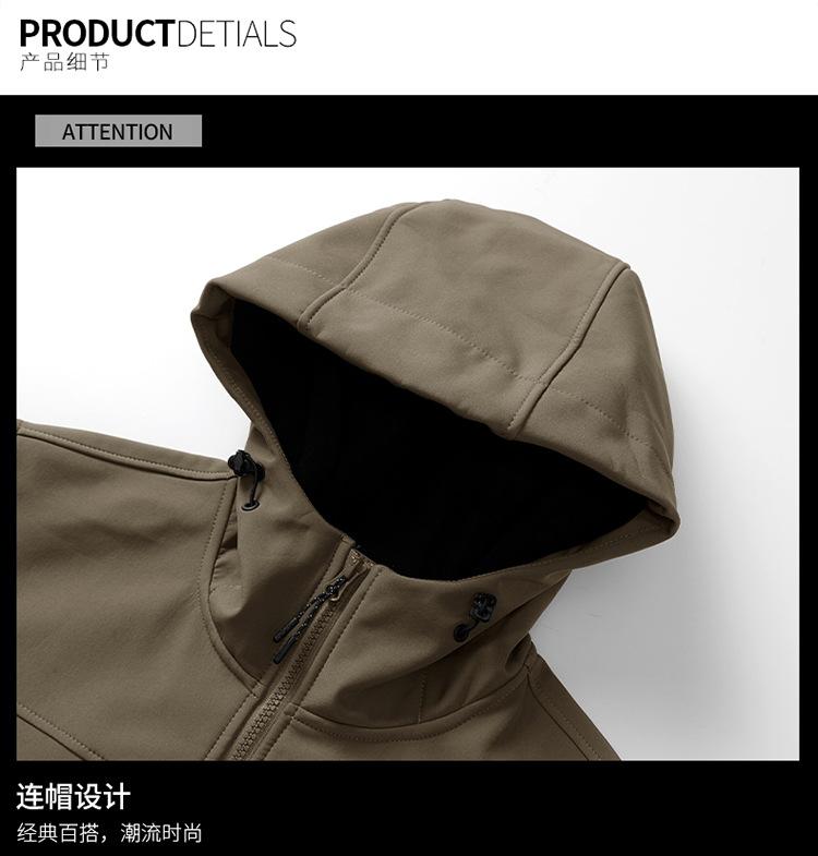 Chaqueta de forro polar suave y cálida para hombre, con capucha, impermeable, cortavientos, para exteriores, de una sola capa, para montañismo, otoño e invierno