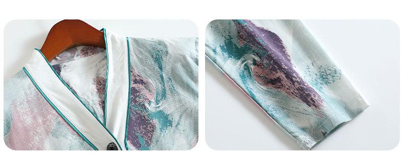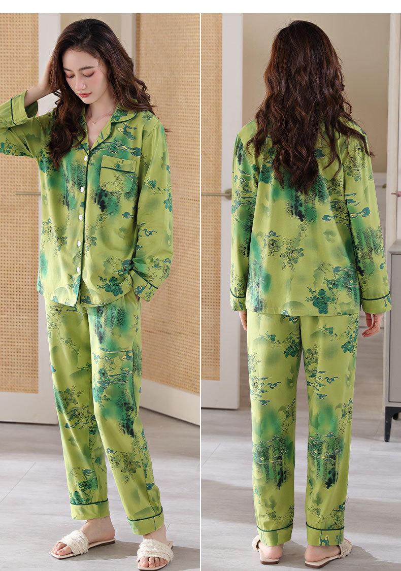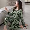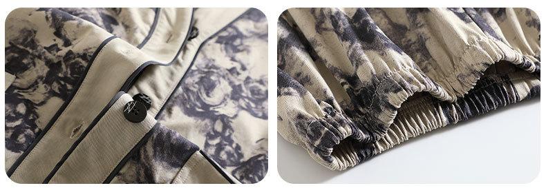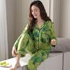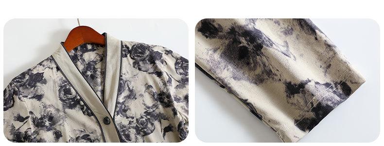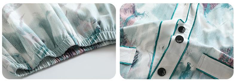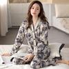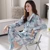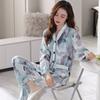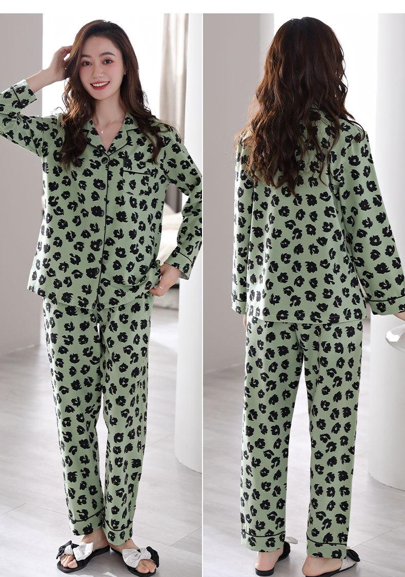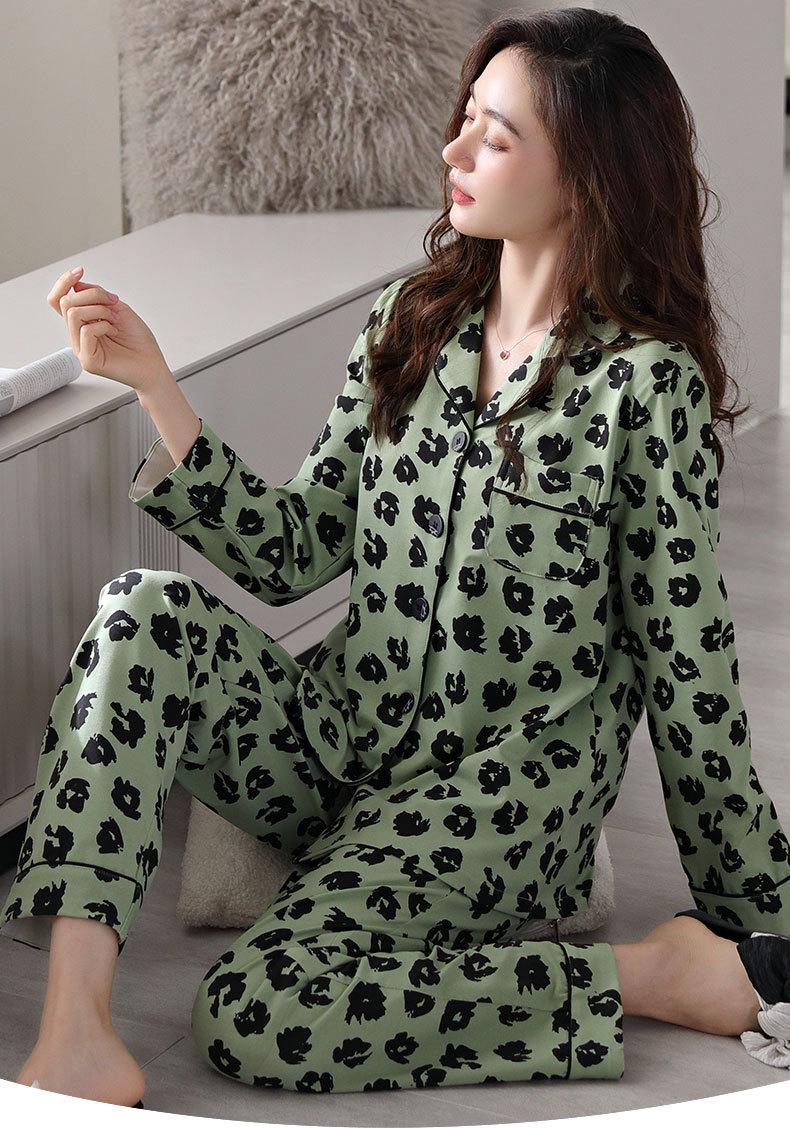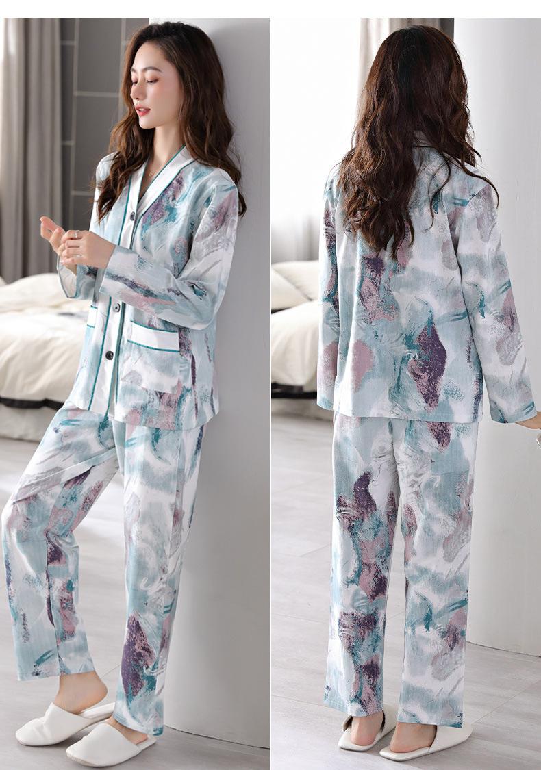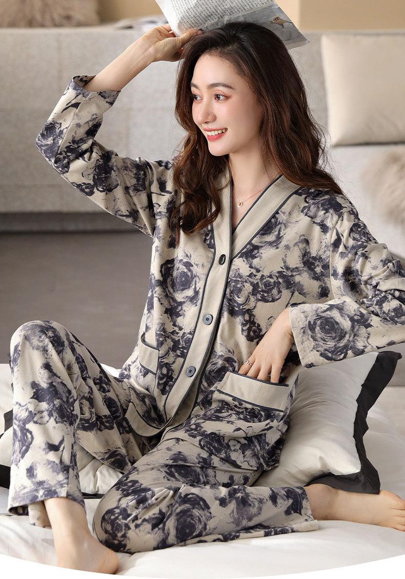 Pijamas para Mujer Estampados Primavera y Otoño Algodón Manga Larga Pantalones Invierno Algodón Cárdigan Ropa Casual para el Hogar para Madres de Mediana Edad