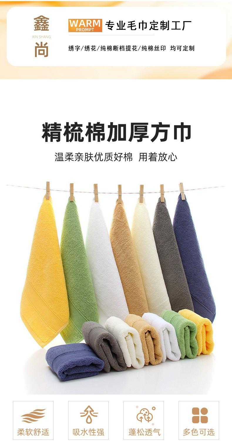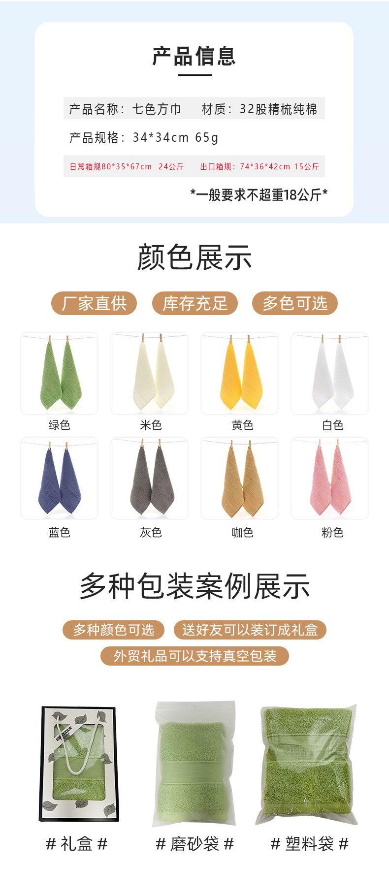Toalla cuadrada pequeña de algodón puro al por mayor 35*35 algodón peinado toalla pequeña para bebé toalla cuadrada lisa absorbente logo bordado